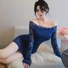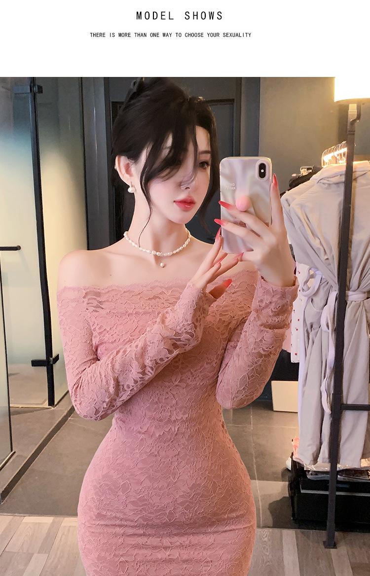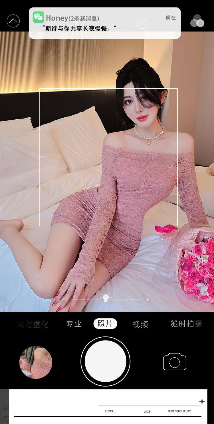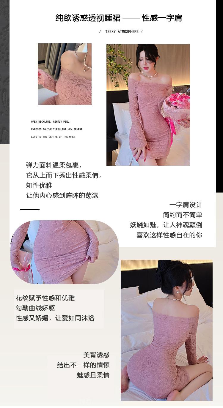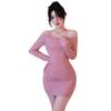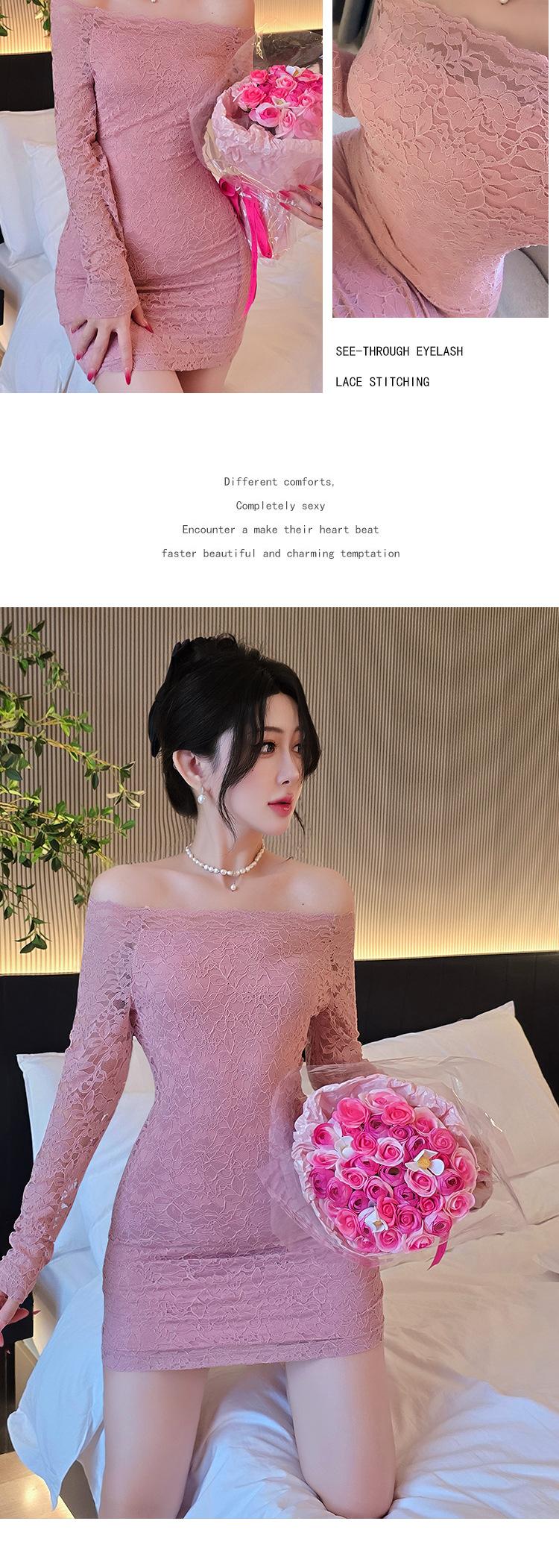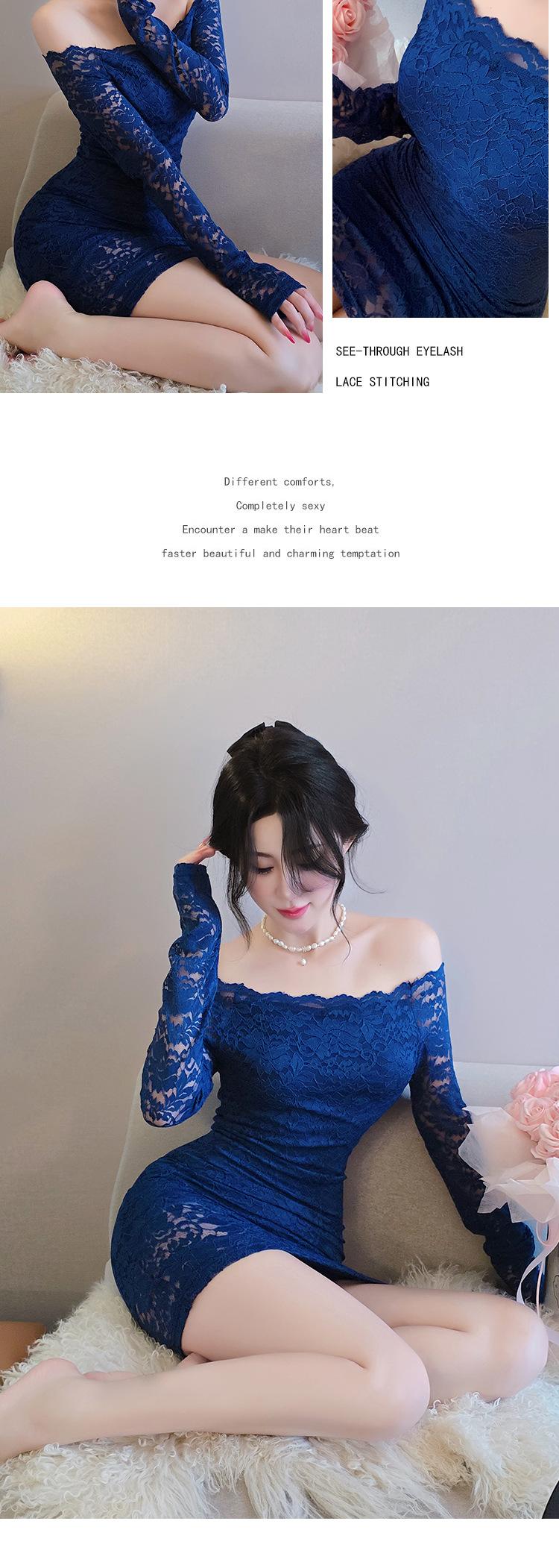 Lencería de Noche Larga Estilo Deseo Puro Encaje Temperamento Vestido de Un Hombro Sexy Bodycon Vestido Ajustado a la Cadera 1562