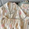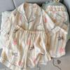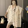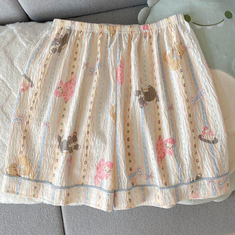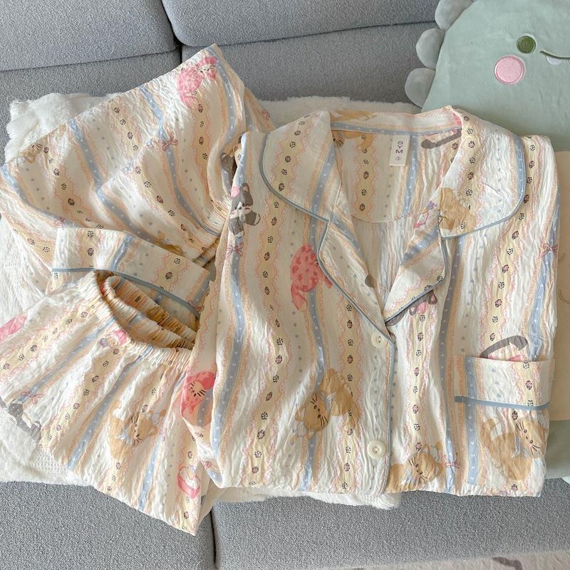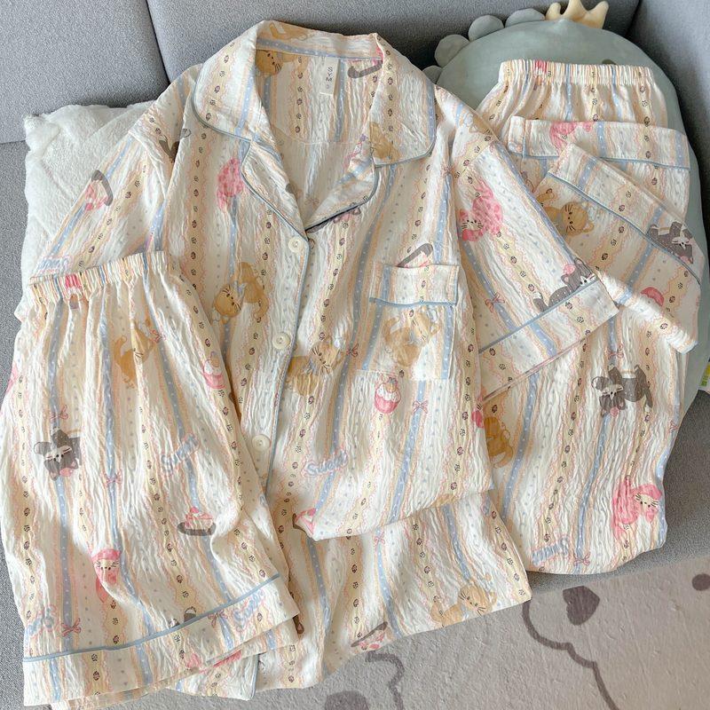 Pijama de Talla Grande Listo para Usar del Fabricante para Mujer Primavera y Verano Manga Corta Rayado Japonés Lindo Gatito Estudiante Lindo Traje de Tres Piezas