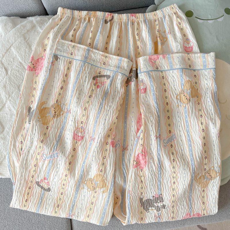 (no breast pads) [yunduomian] three-piece set: striped kitten (short sleeves + shorts + trousers), (no breast ...