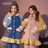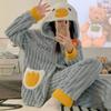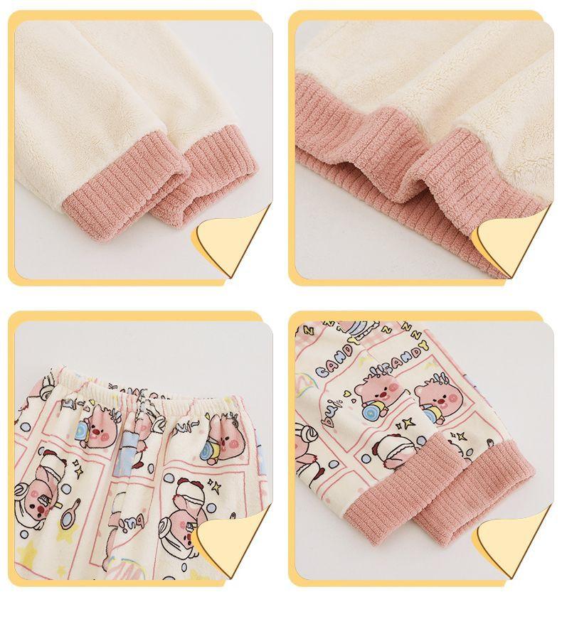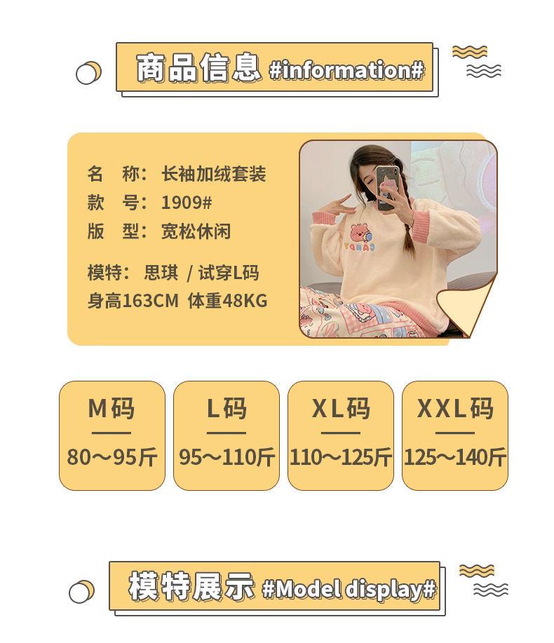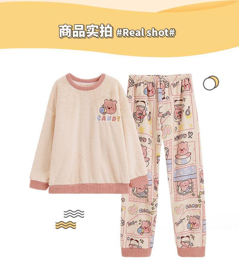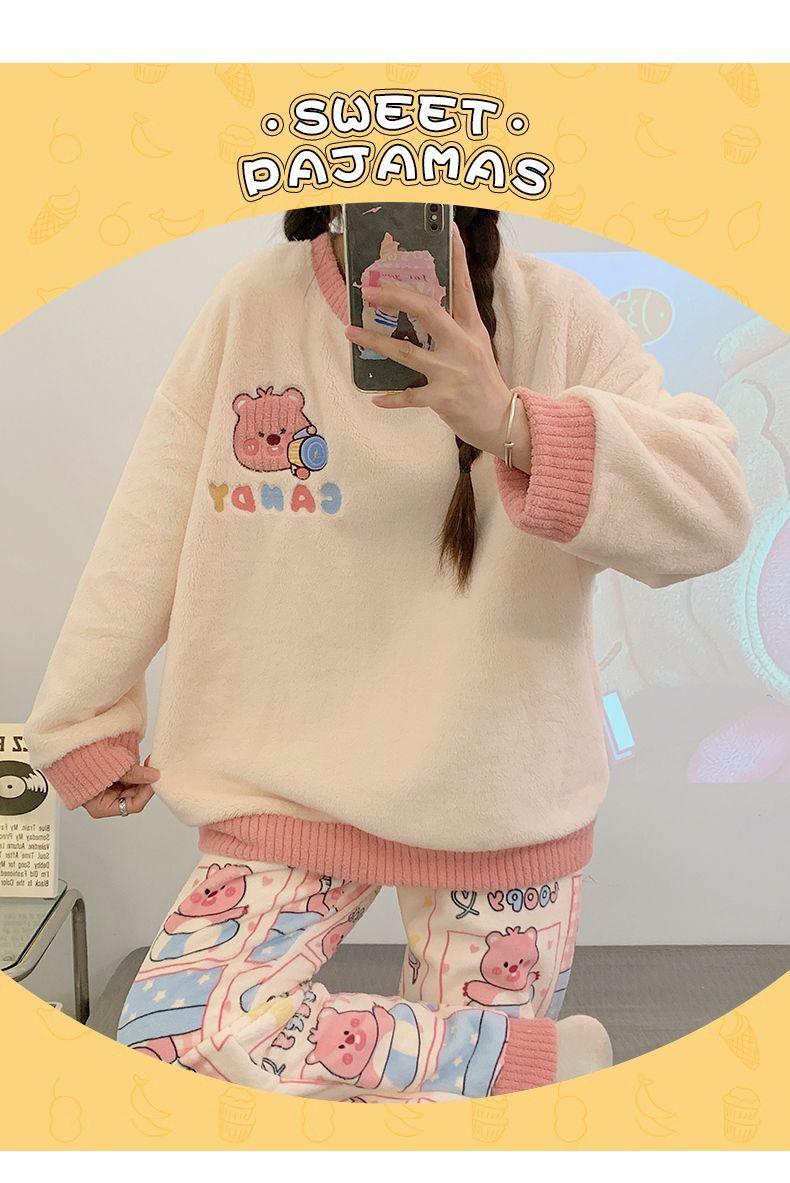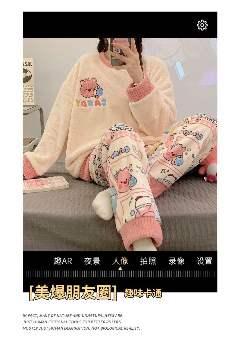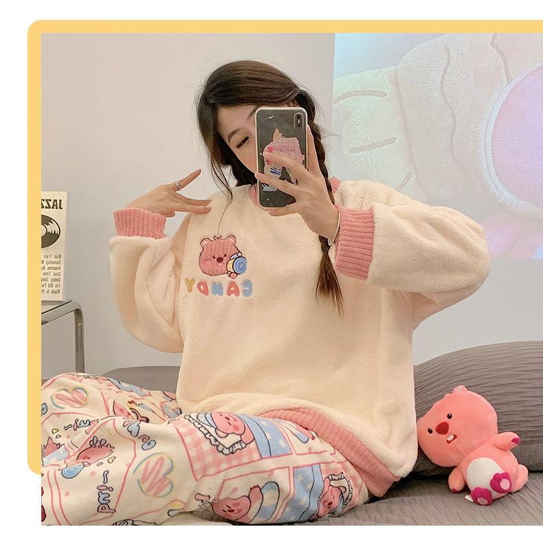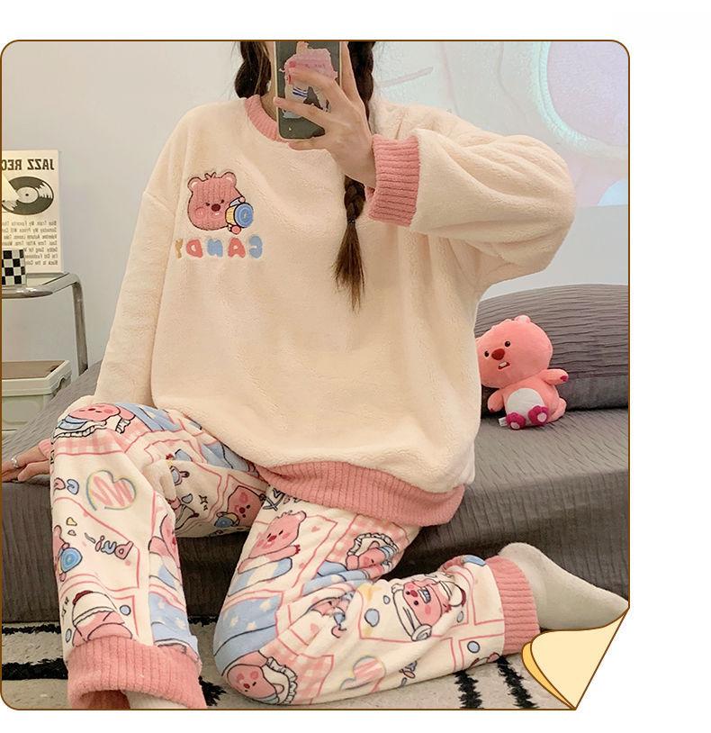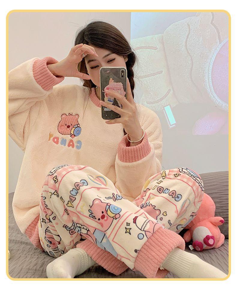 Pijamas de Mujer Otoño Invierno Franela Gruesa Plus Terciopelo Cálido Dulce Lindo Se Puede Usar Fuera Ropa de Casa Set de Forro Polar Coral