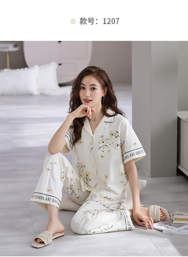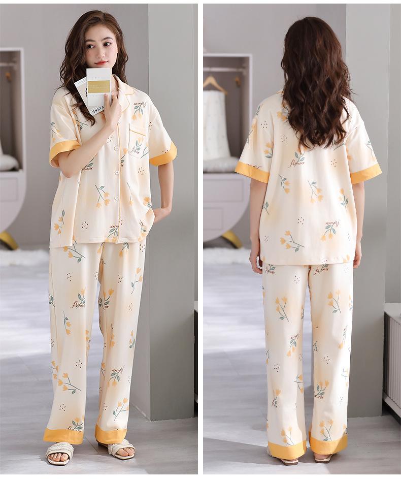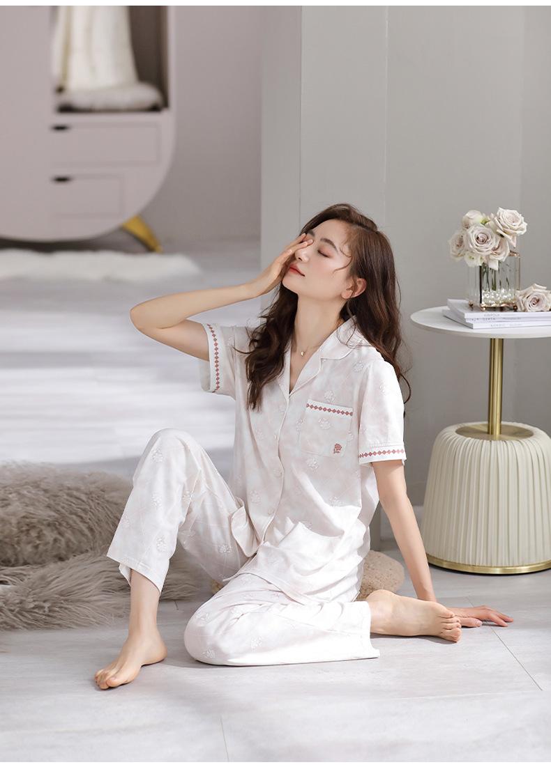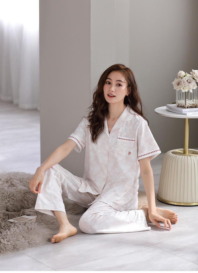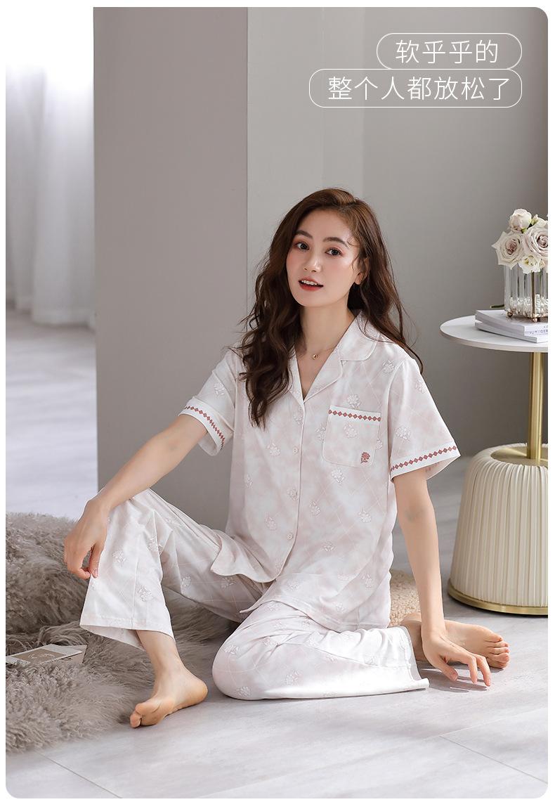 Pijama de Verano para Mujer de Modal de Manga Corta y Pantalón Fino para Verano Ropa de Casa Casual de Dos Piezas para Mujer