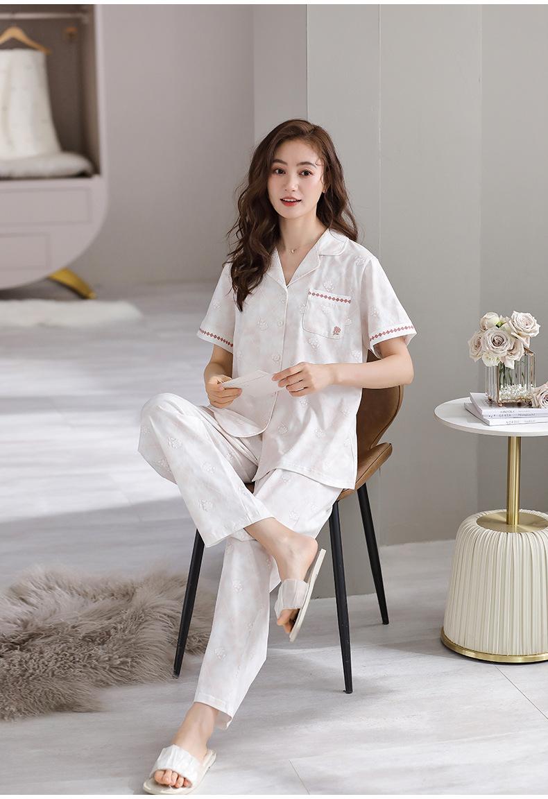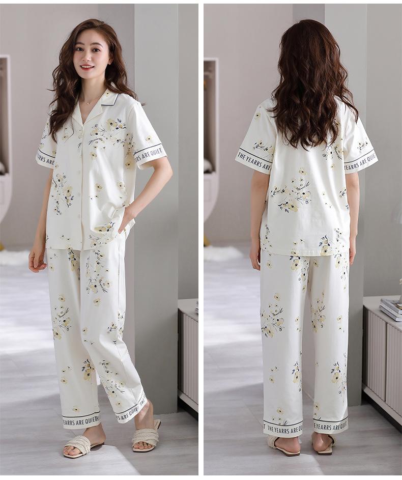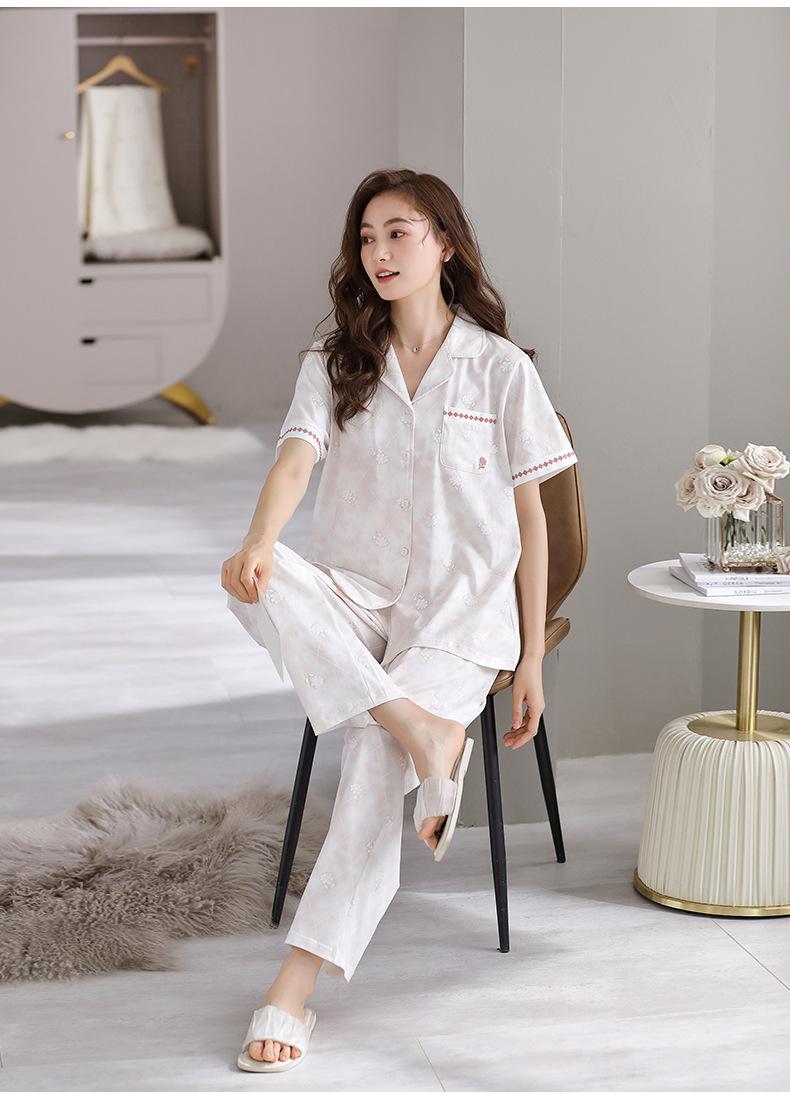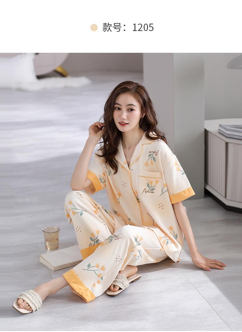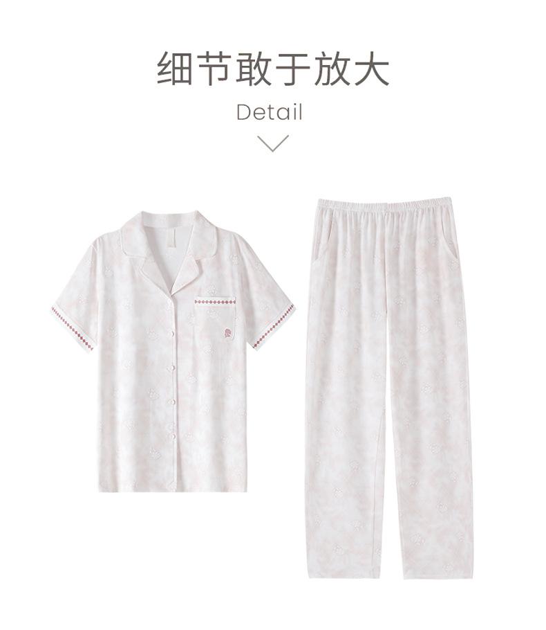 Pijama de Verano para Mujer de Modal de Manga Corta y Pantalón Fino para Verano Ropa de Casa Casual de Dos Piezas para Mujer