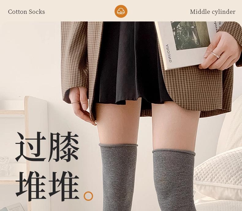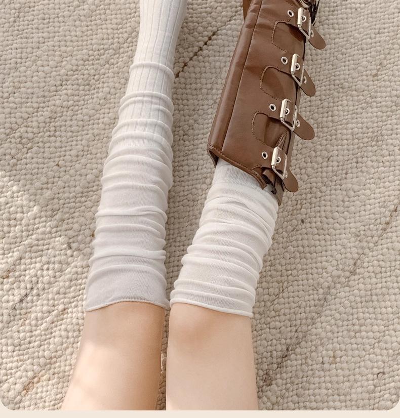 Calcetines grises para mujer estilo primavera y otoño ins modernos de puro algodón hasta la rodilla arrugados estilo japonés moldeadores de piernas hermosas calcetines de pantorrilla mujeres otoño