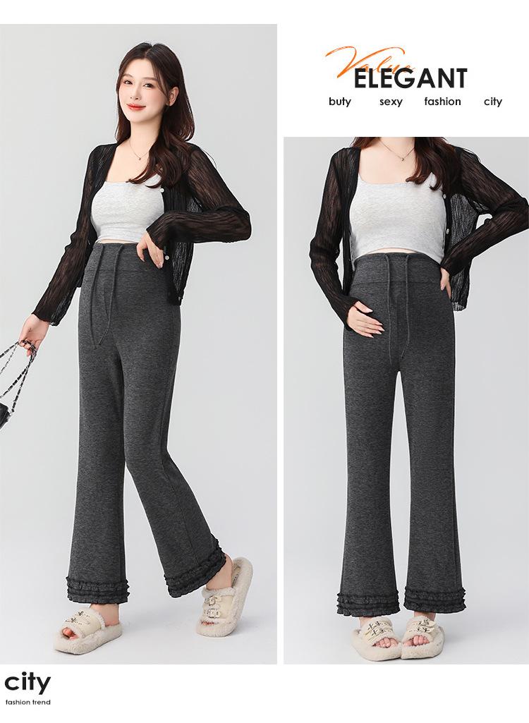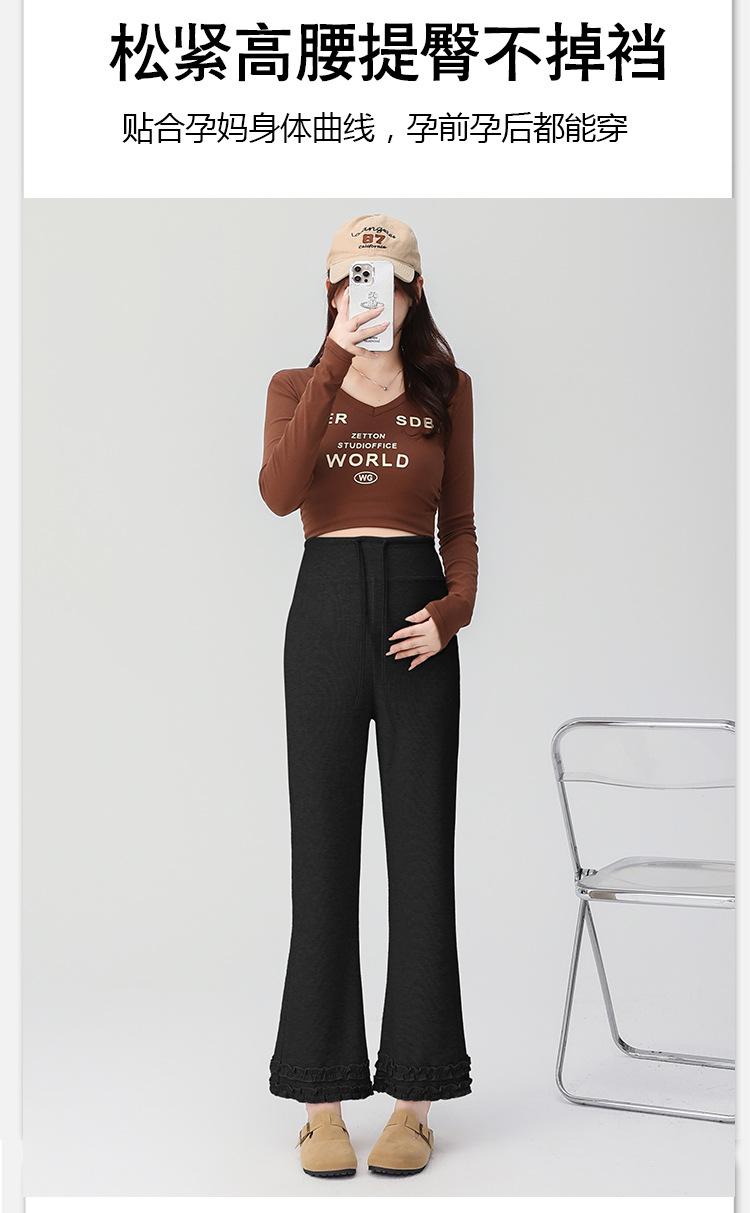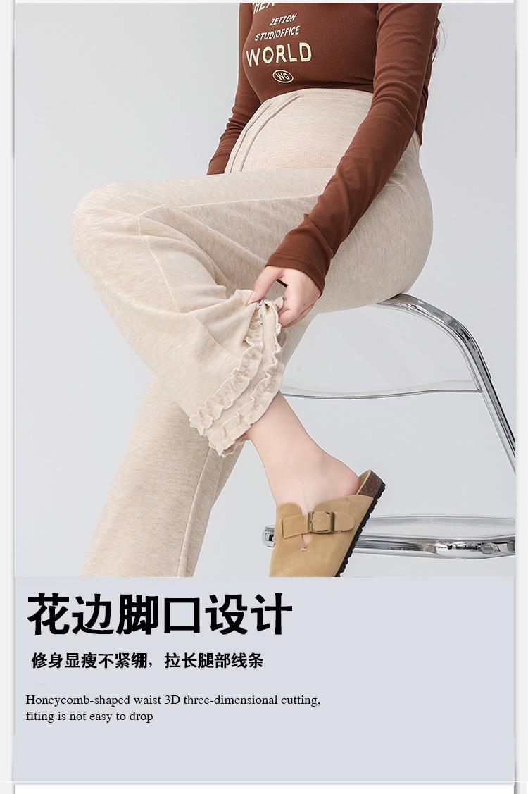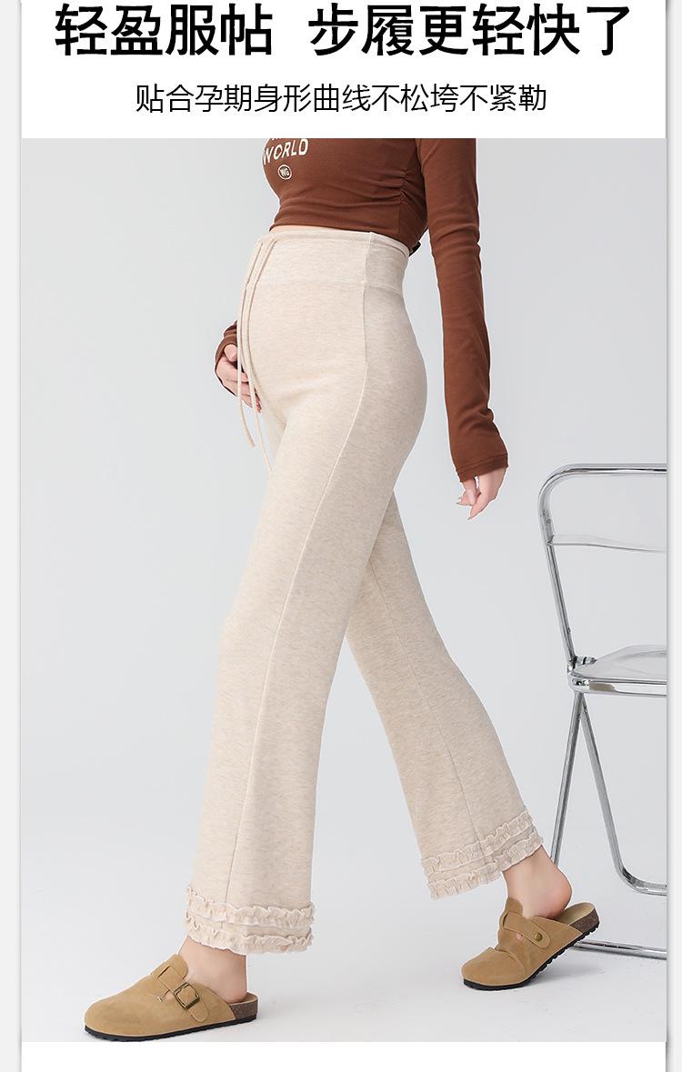 Pantalones de Maternidad de Nueve Puntos Forrados de Felpa para Otoño e Invierno, Pantalones Microacampanados, Delicados con la Piel, con Caída, Suaves, Casuales, Adelgazantes, Pantalones de Nueve Puntos de Maternidad