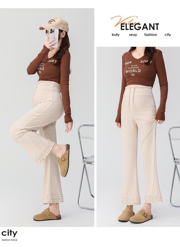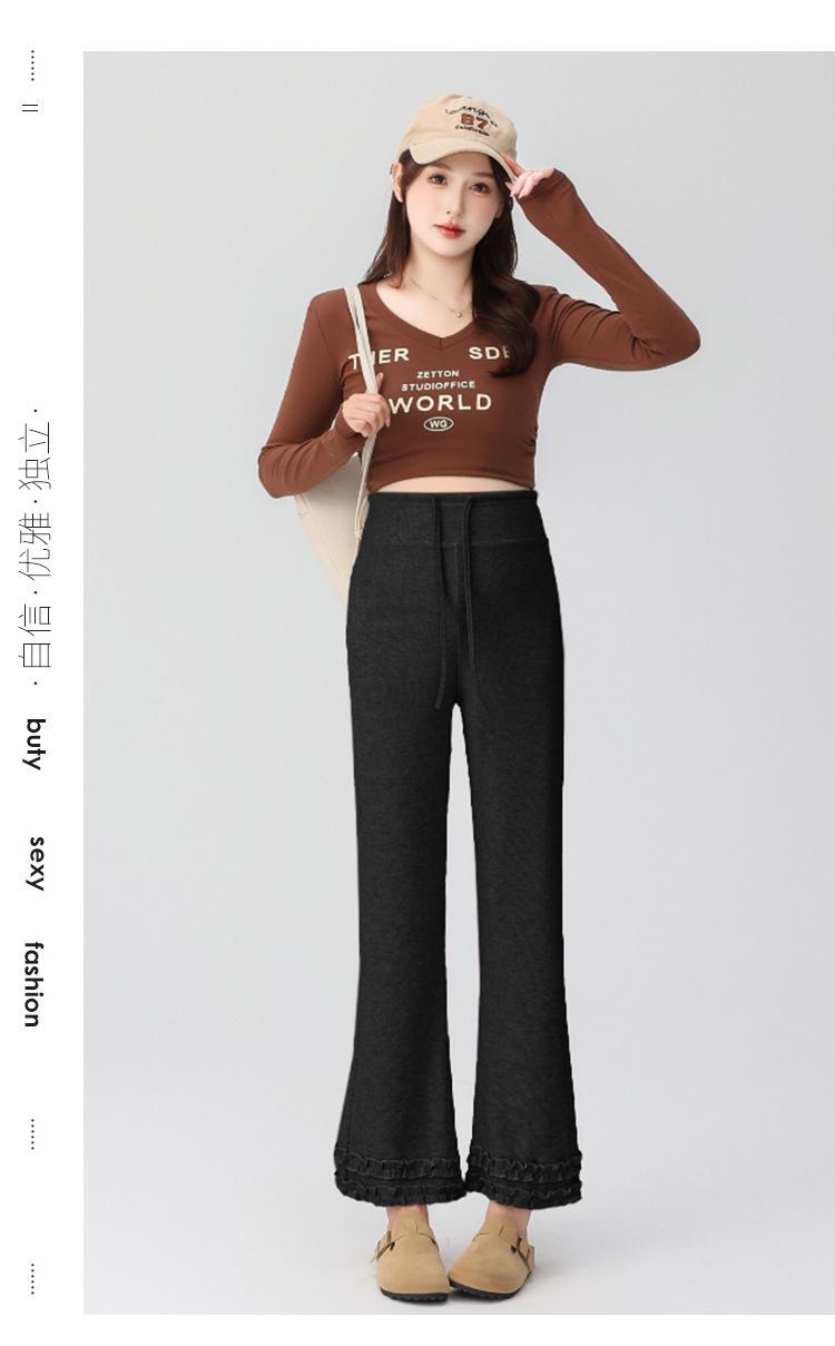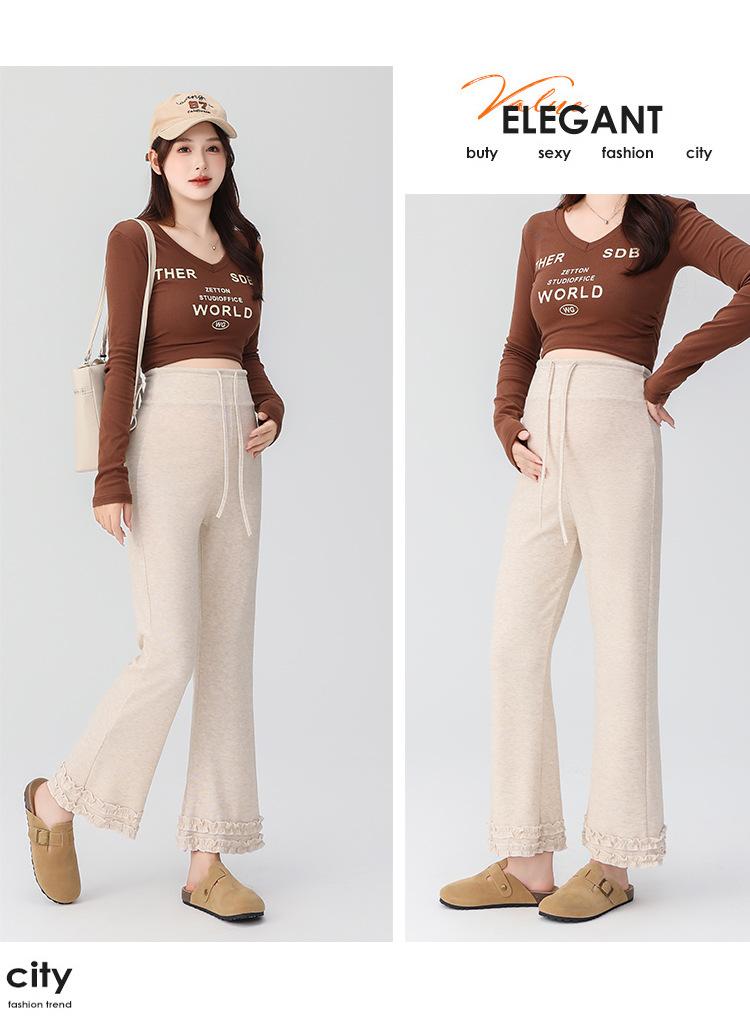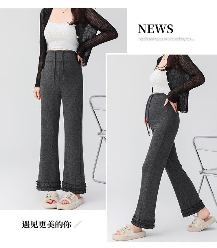 Pantalones de Maternidad de Nueve Puntos Forrados de Felpa para Otoño e Invierno, Pantalones Microacampanados, Delicados con la Piel, con Caída, Suaves, Casuales, Adelgazantes, Pantalones de Nueve Puntos de Maternidad