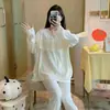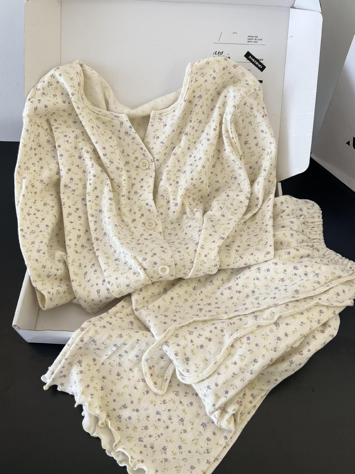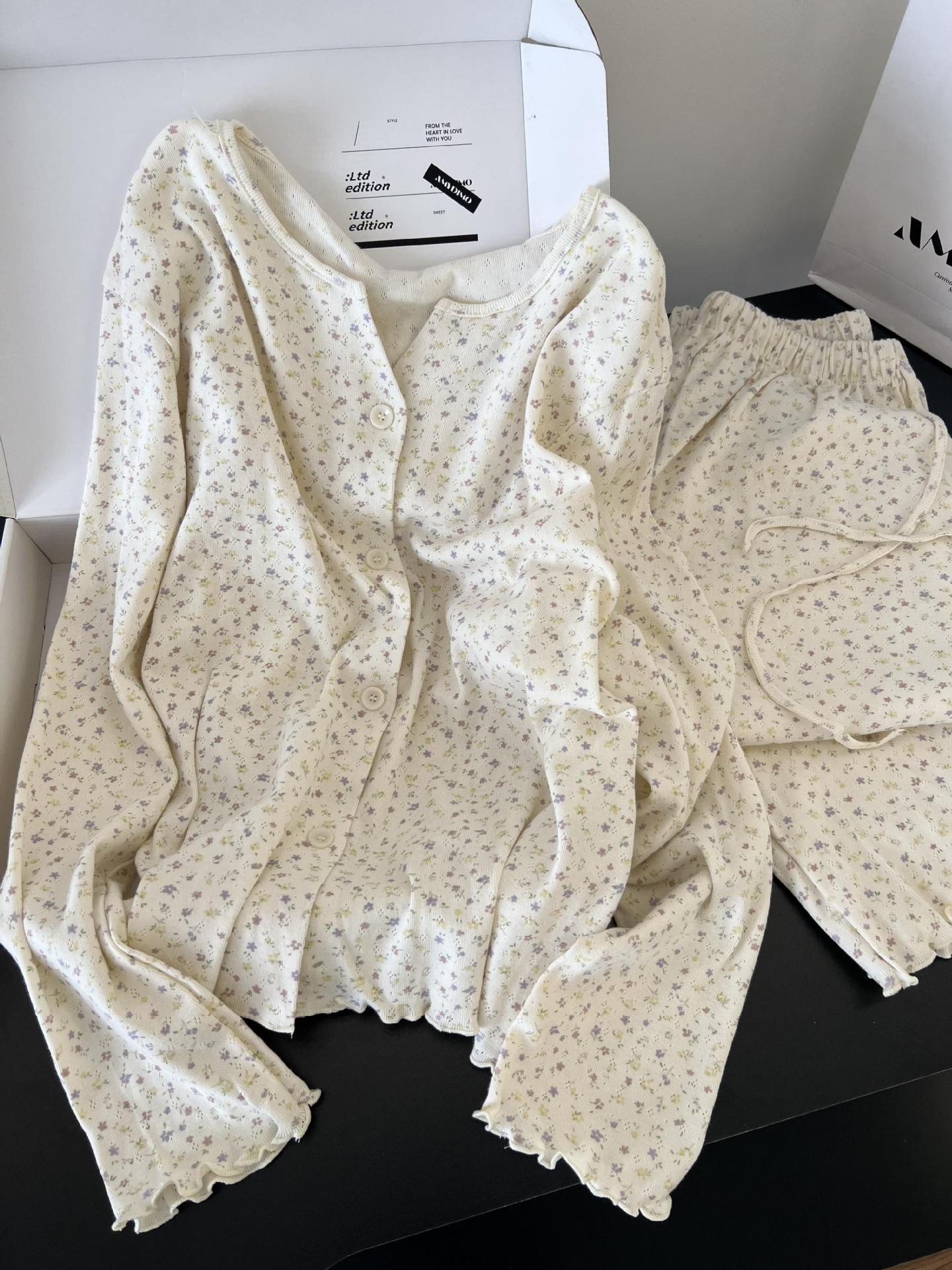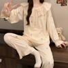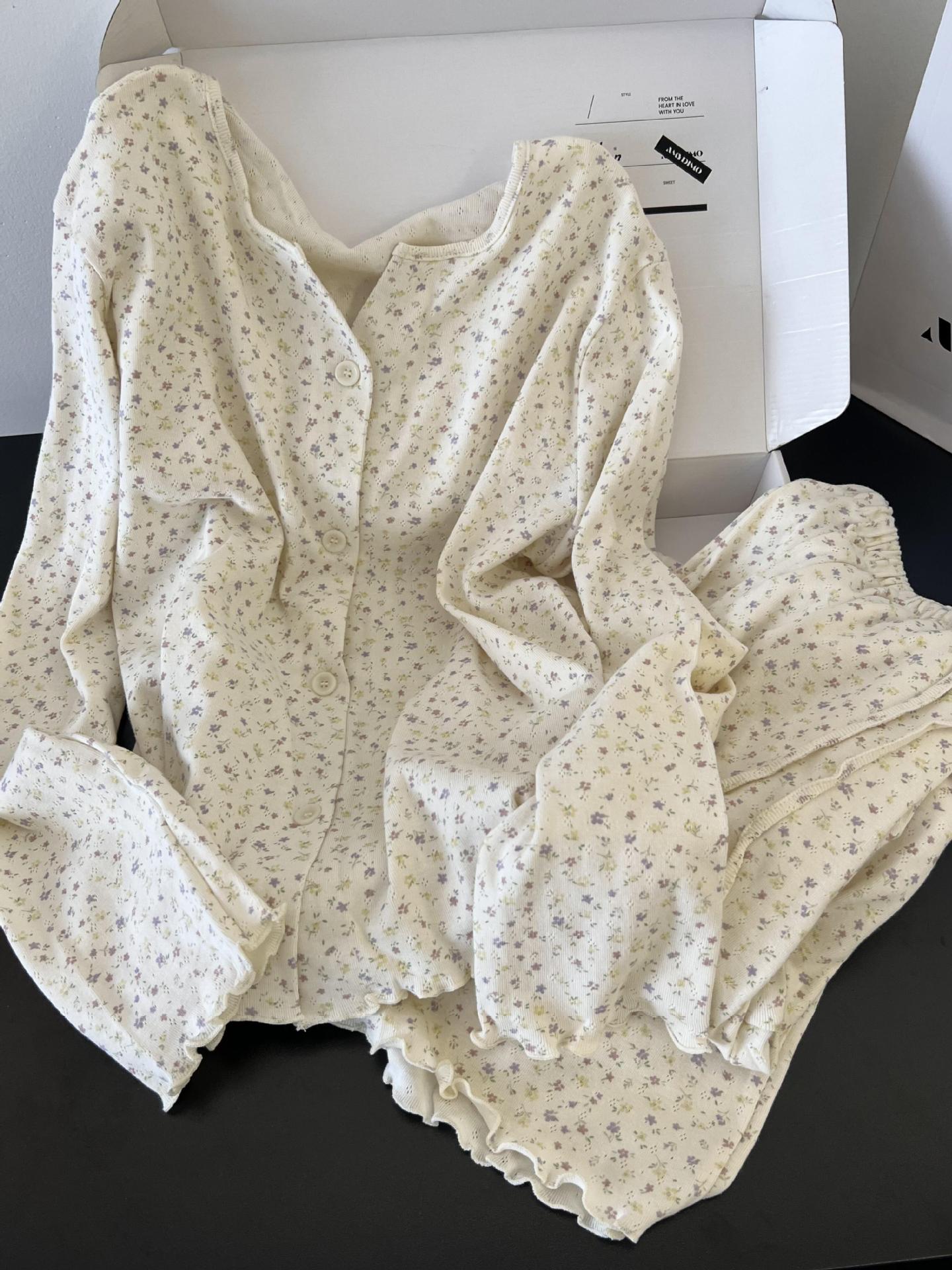 Pijama coreano dulce para niña con estampado floral de manga larga para mujer Otoño 2025 Nuevo Conjunto de ropa para el hogar de talla grande cómodo y respetuoso con la piel