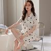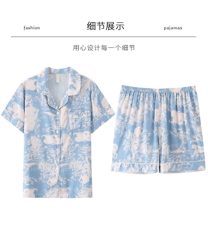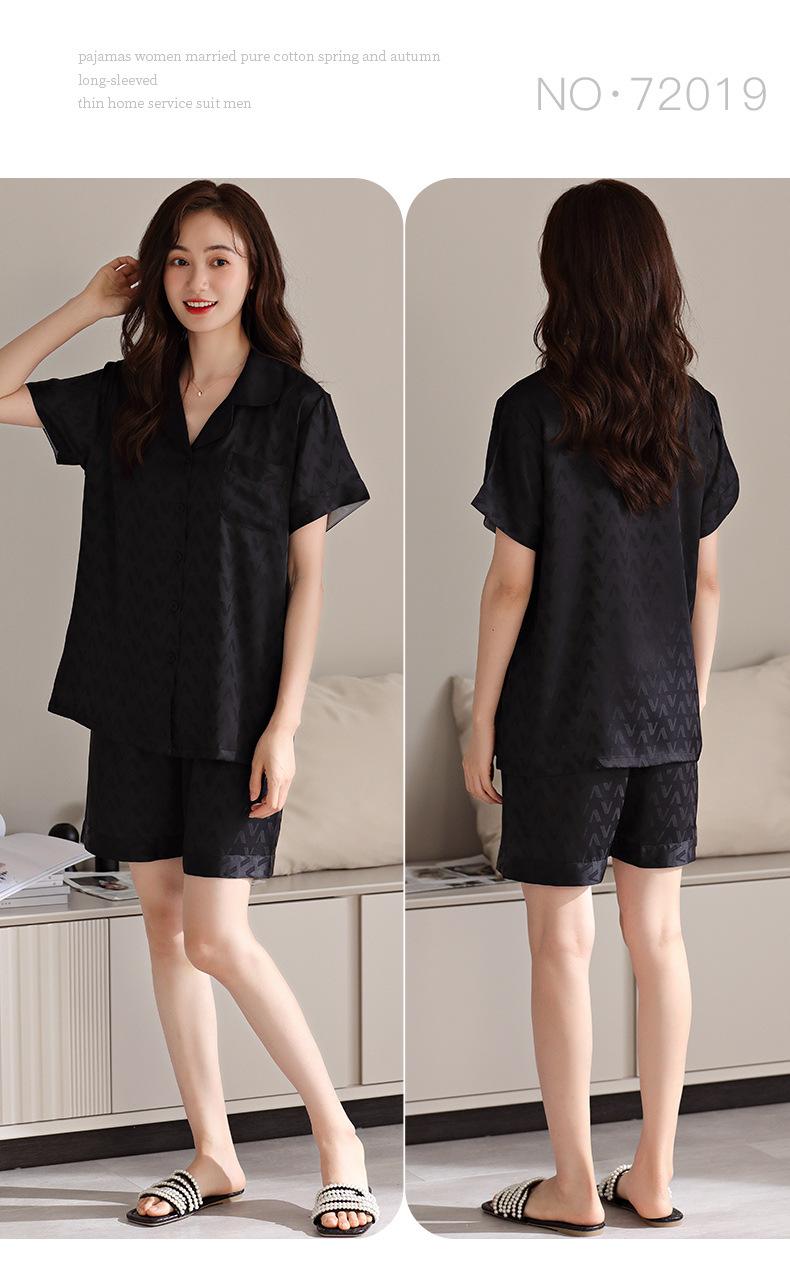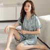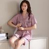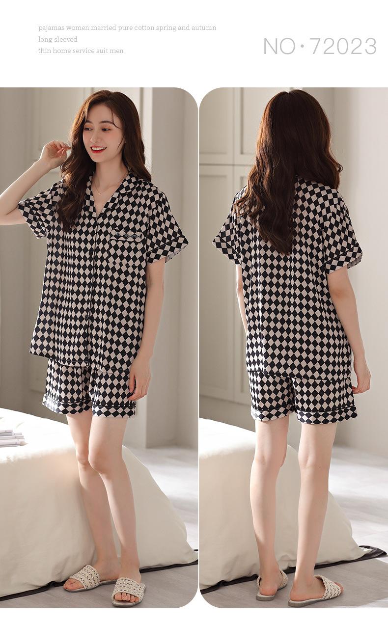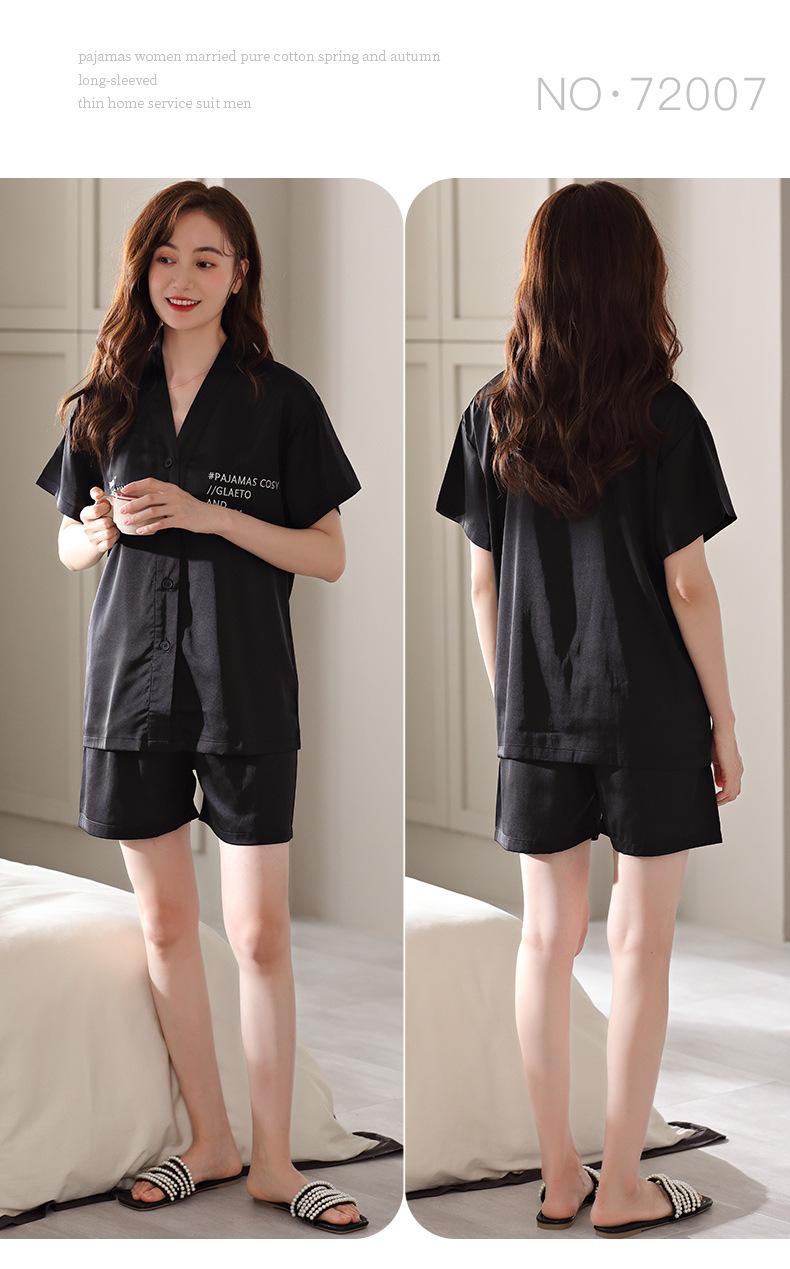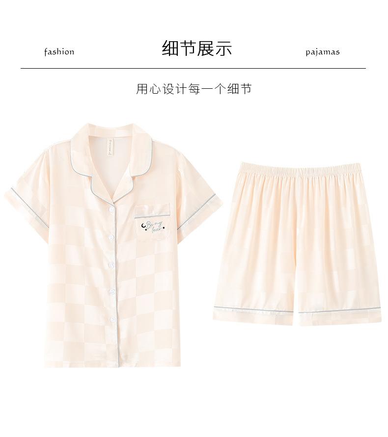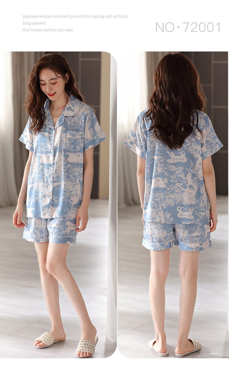 Pijamas de Seda de Hielo para Mujer 2023 Nuevo Verano Delgado Cárdigan Manga Corta Shorts Traje de Dos Piezas Lunares Lindo Ropa para el Hogar