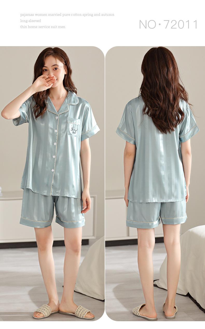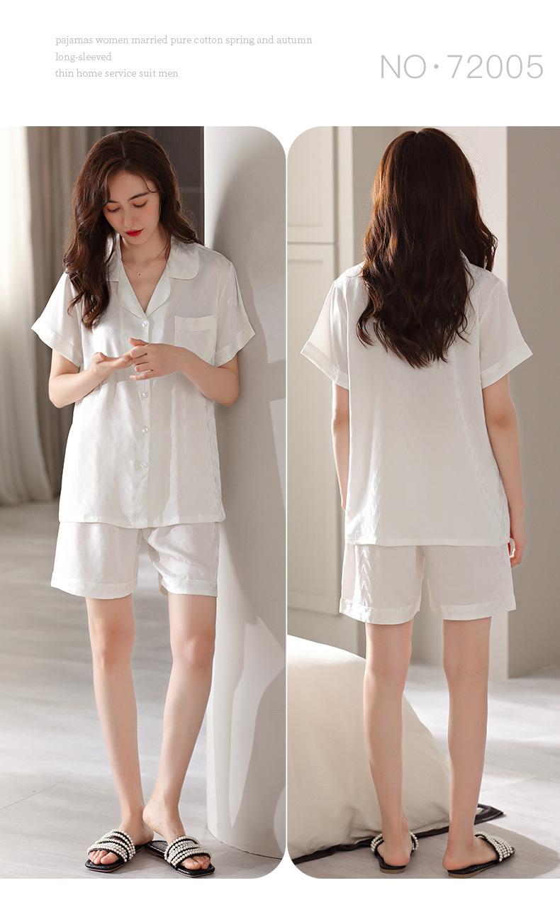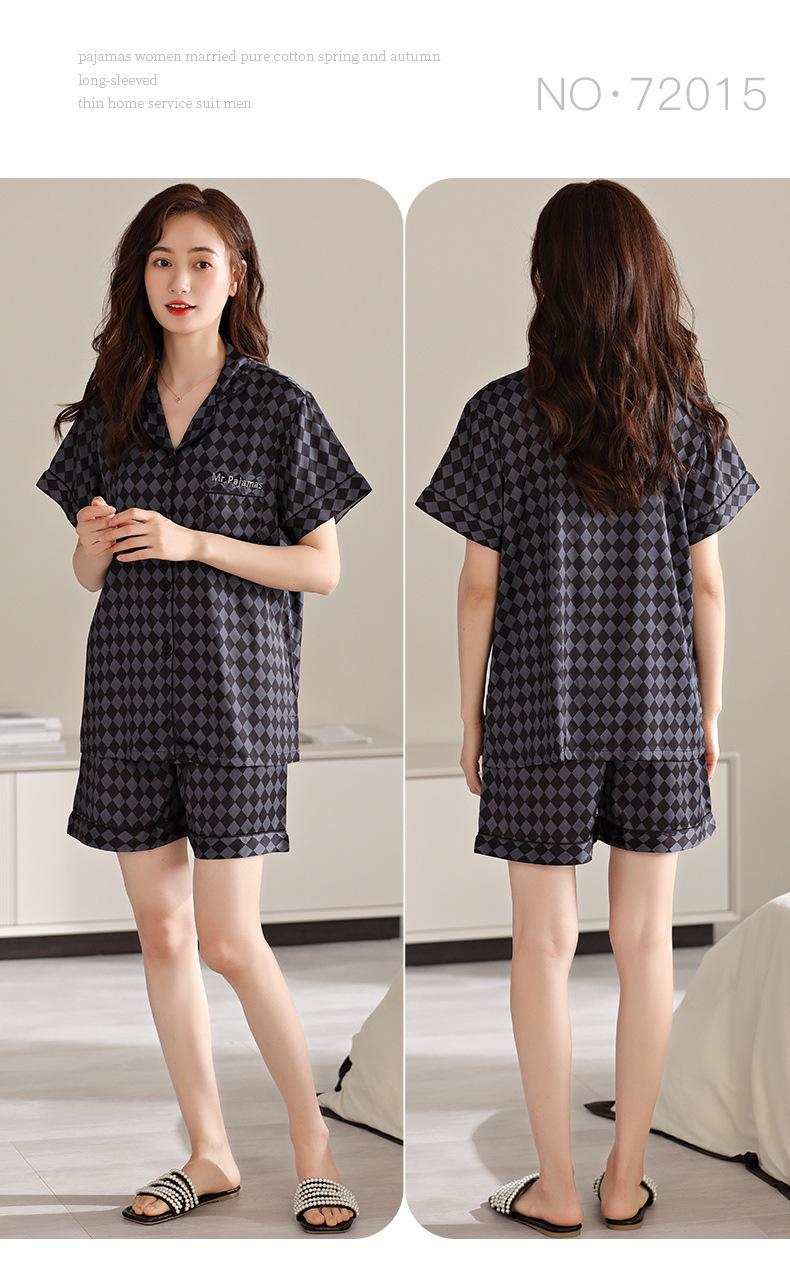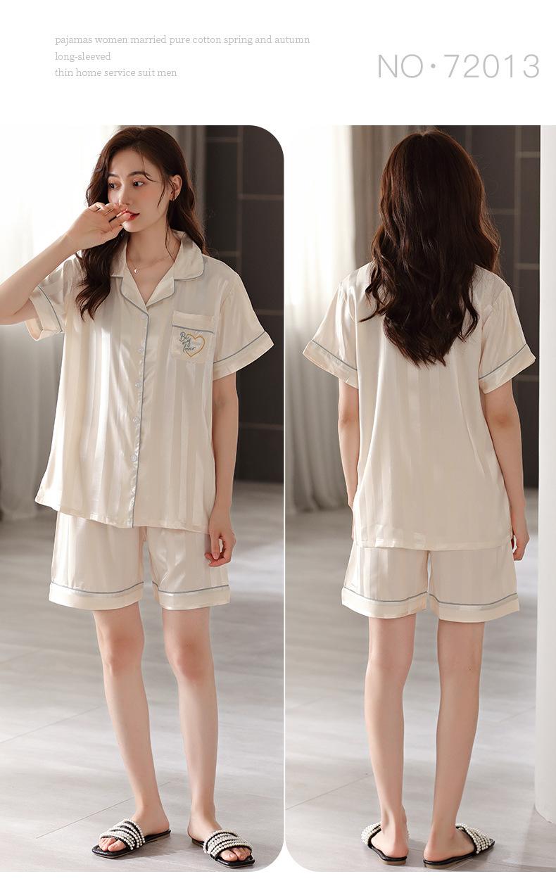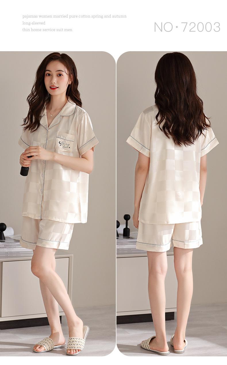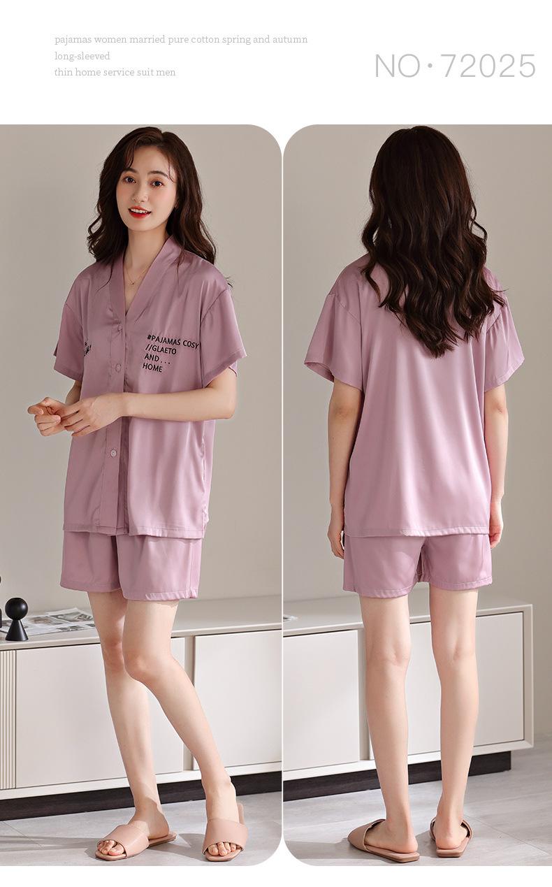 Pijamas de Seda de Hielo para Mujer 2023 Nuevo Verano Delgado Cárdigan Manga Corta Shorts Traje de Dos Piezas Lunares Lindo Ropa para el Hogar