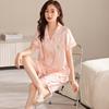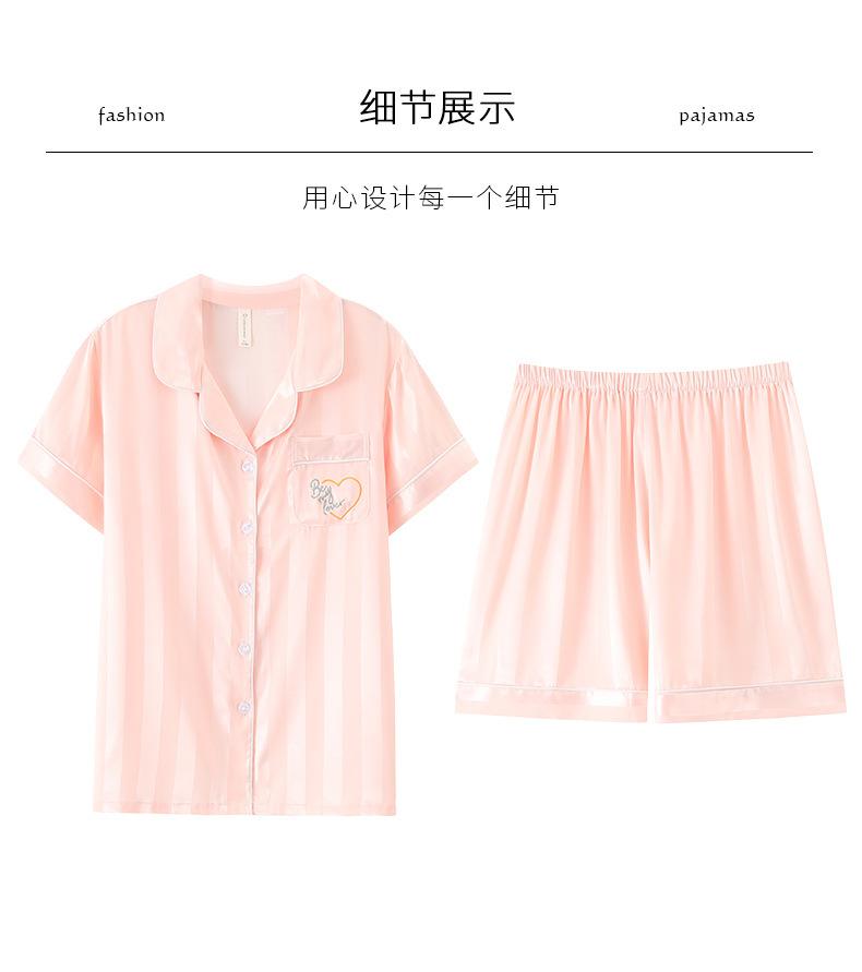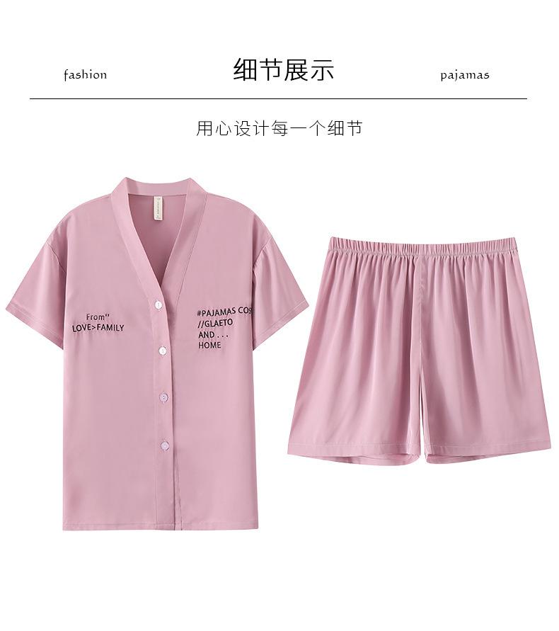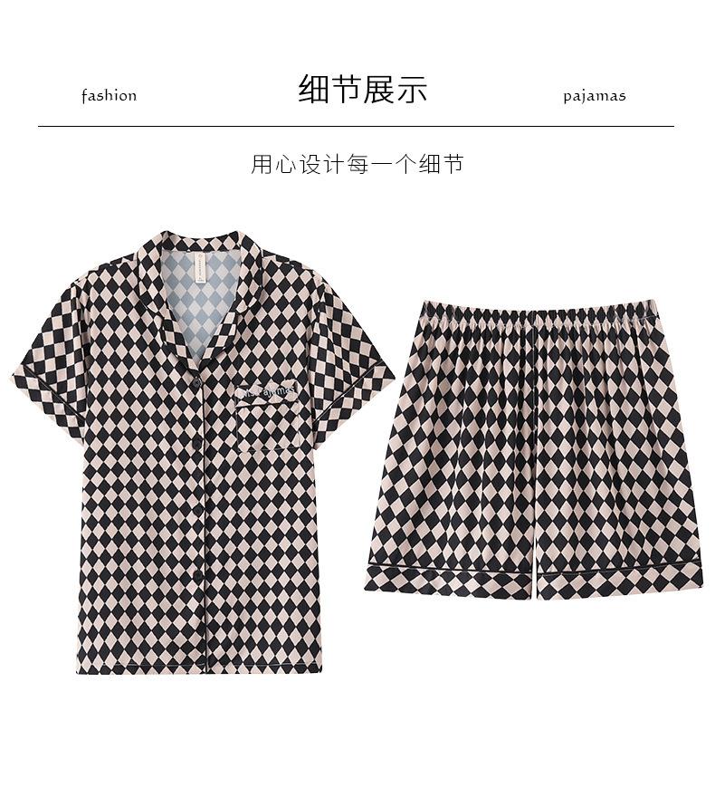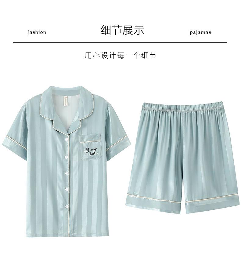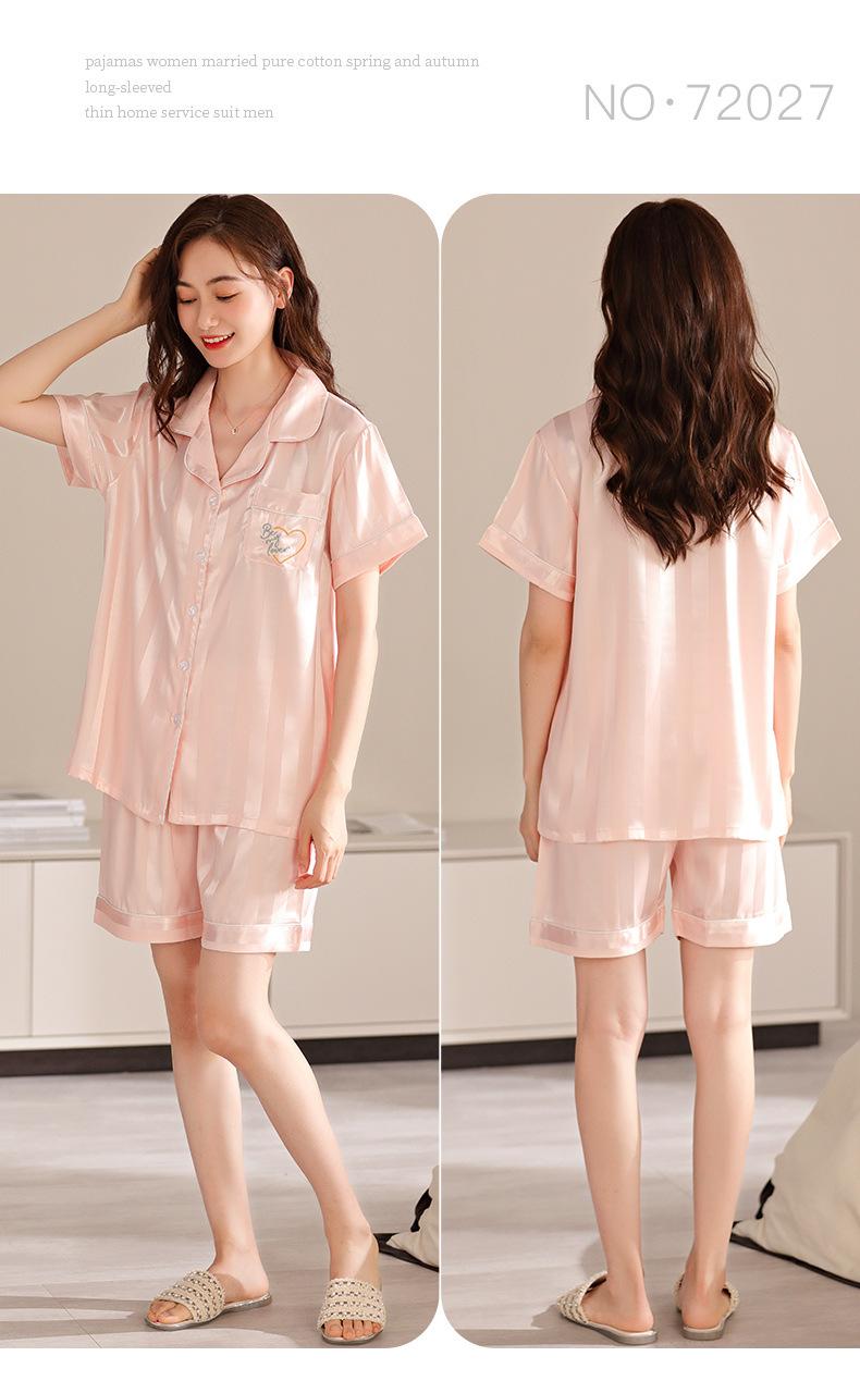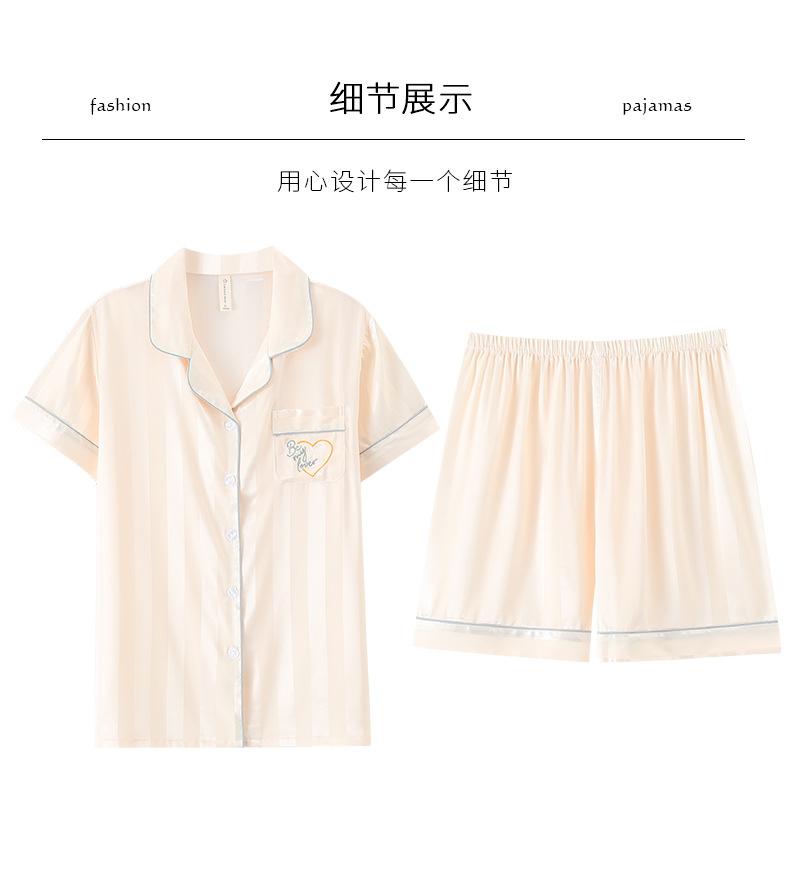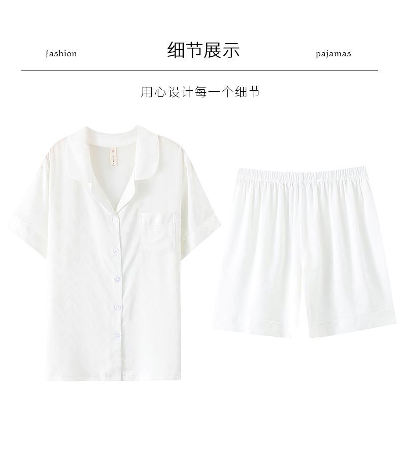 Pijamas de Seda de Hielo para Mujer 2023 Nuevo Verano Delgado Cárdigan Manga Corta Shorts Traje de Dos Piezas Lunares Lindo Ropa para el Hogar