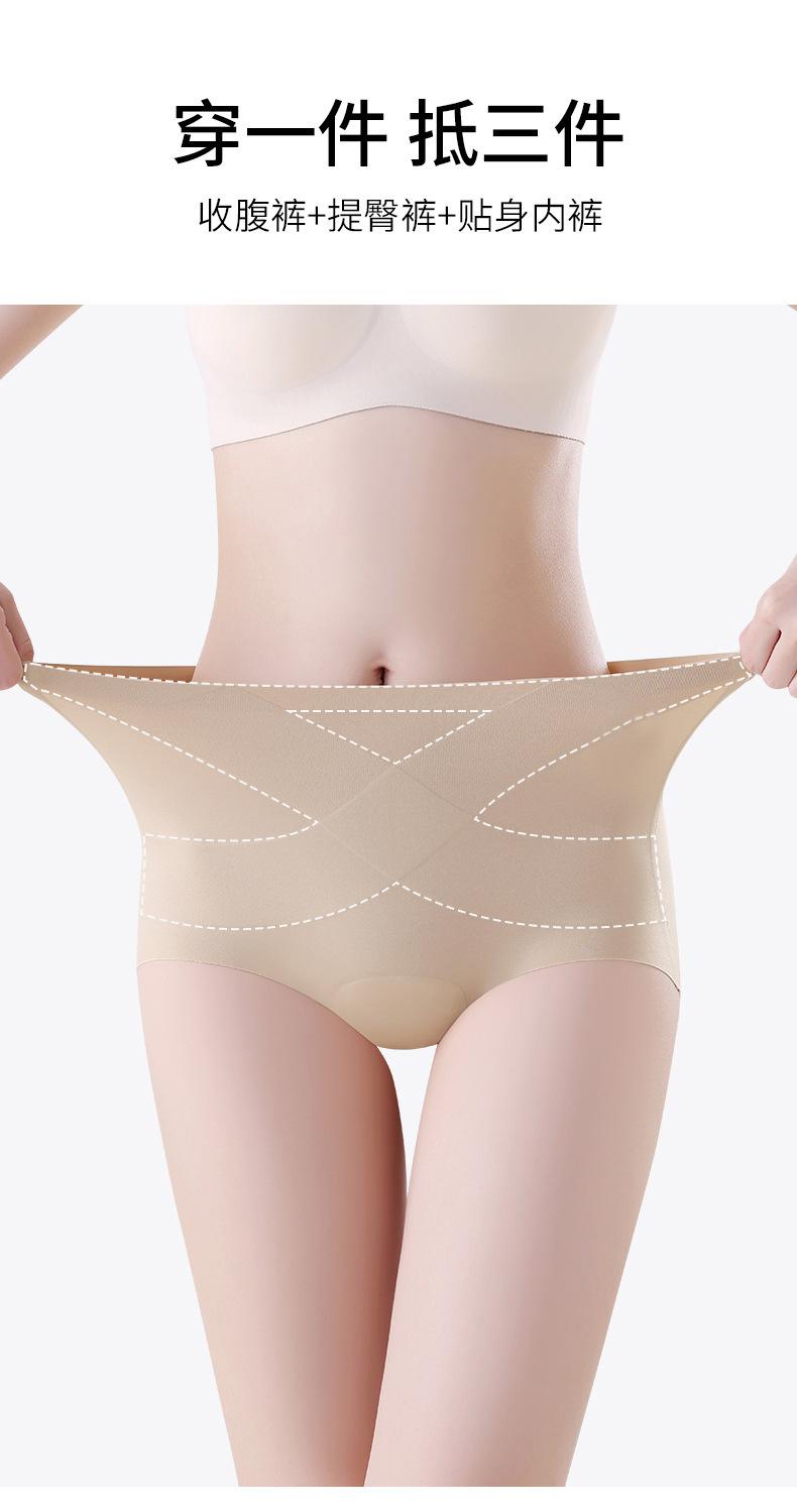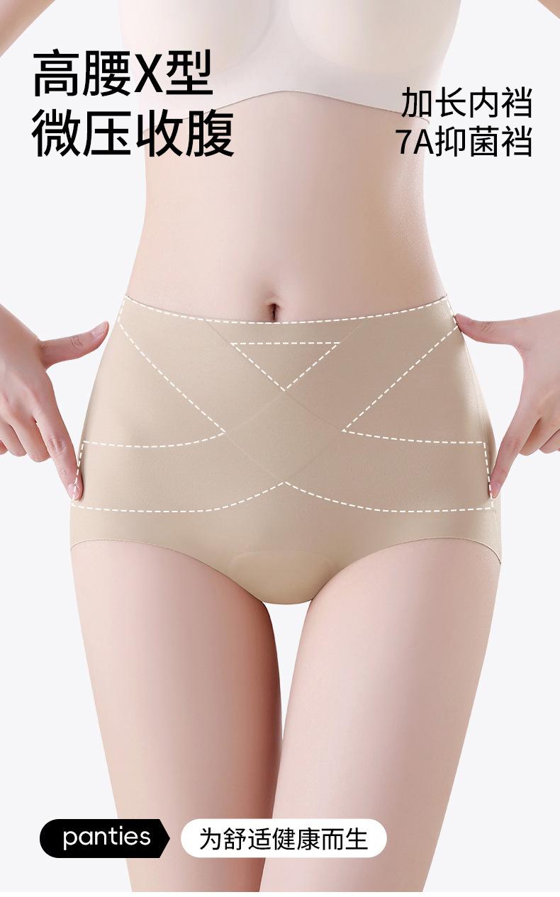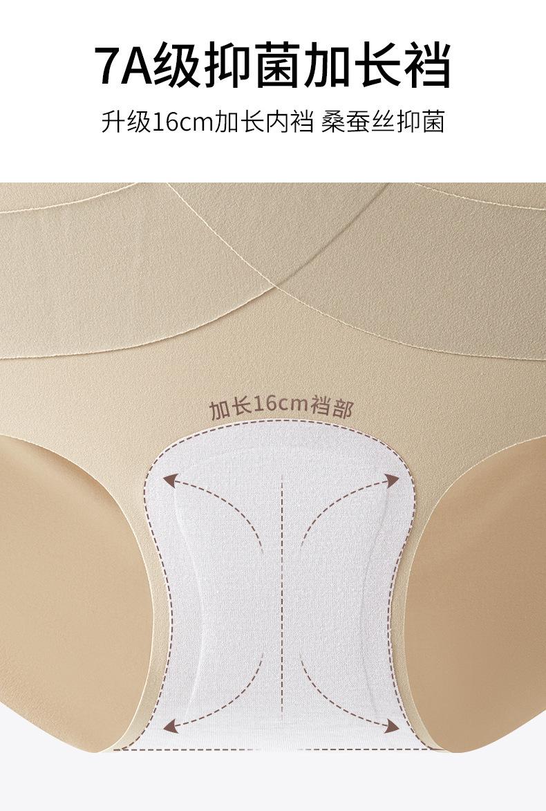 Ropa interior de mujer de seda de morera 7A de tiro alto, sin costuras de una pieza, tipo piel de leche, seda de hielo, adelgazante de abdomen cruzado, entrepierna extendida, cadera de melocotón