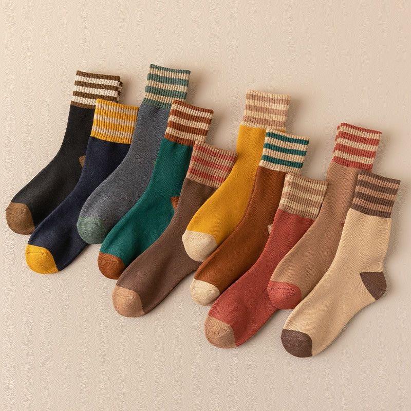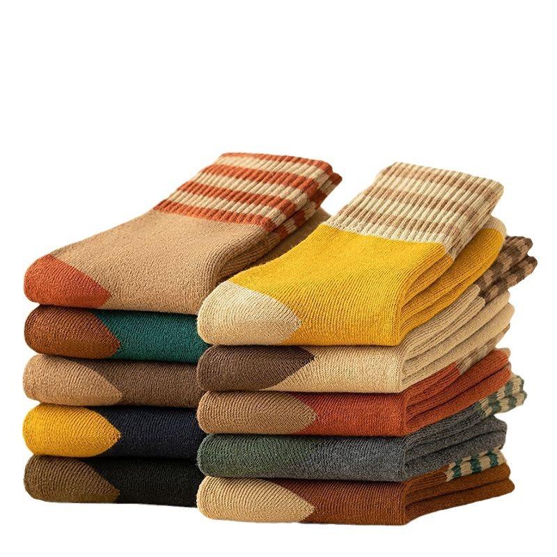 Calcetines Terry Cálidos de Invierno Calcetines Terry Gruesos con Bloque de Color con Forro Polar de Invierno Calcetines Cálidos de Rayas Retro