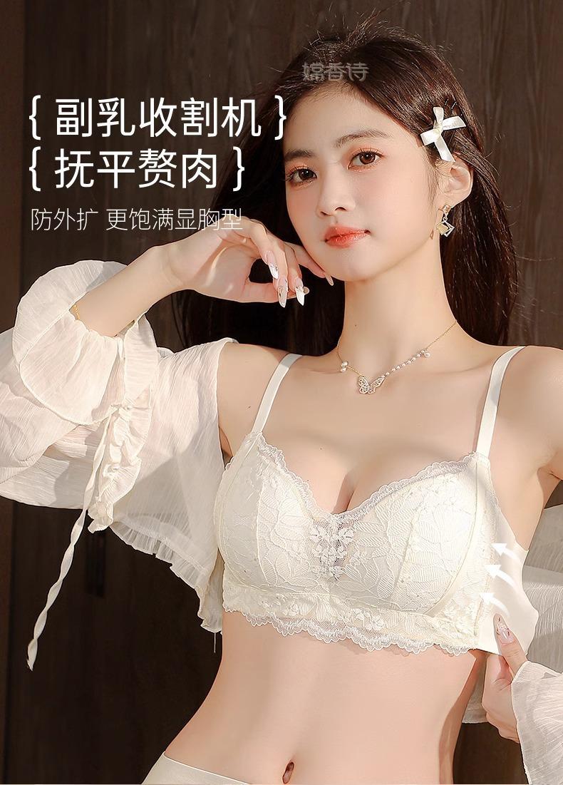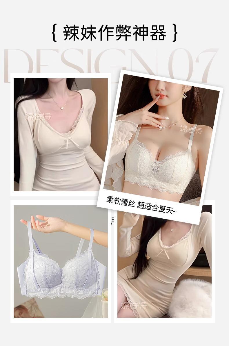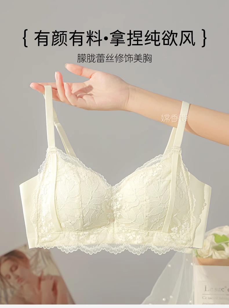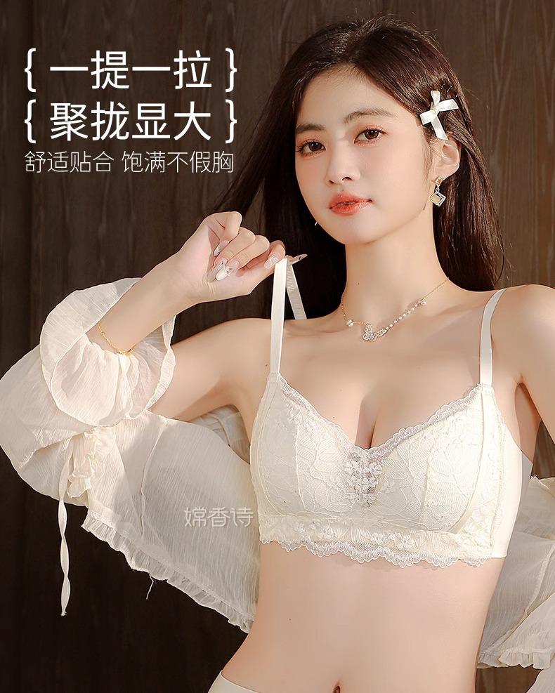 Encaje Sujetador Push-up para Pecho Pequeño Sin Aro de Acero Ropa Interior para Mujer Verano Fino 2024 Nuevo Anticaída Para Sujetador de Senos