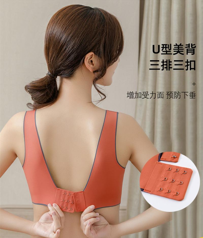 Nueva Ropa Interior de Látex Sin Costuras para Mujer con Botones, Sujetador Delgado de Tirantes Anchos, Push-Up, Reductor de Busto, Sin Aros, Sujetador Deportivo