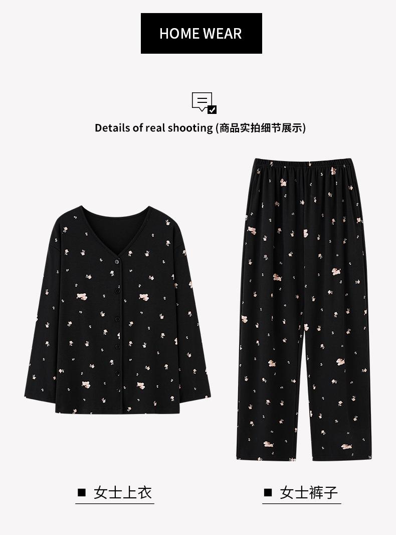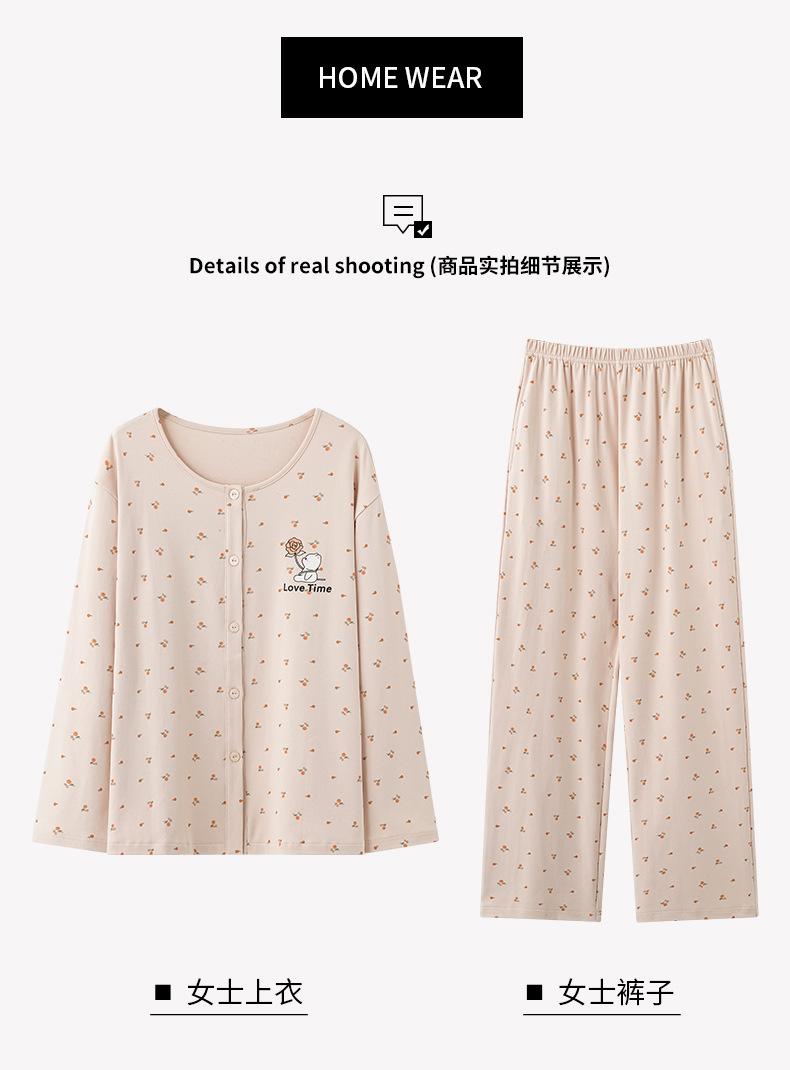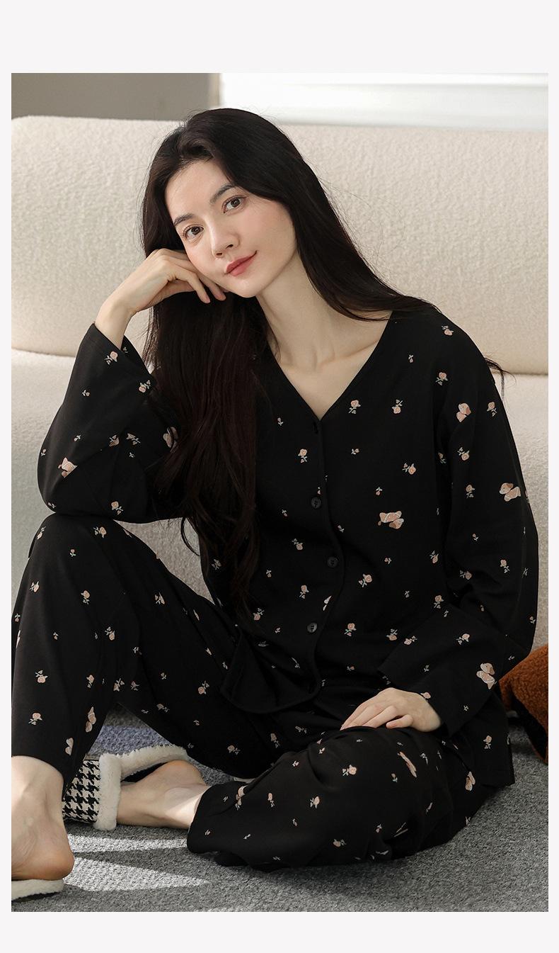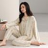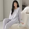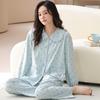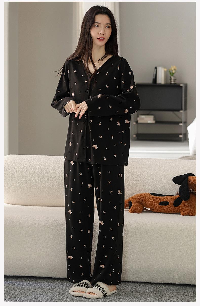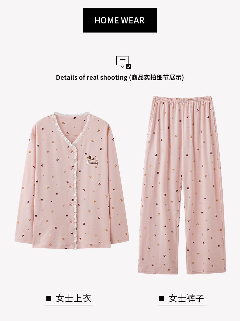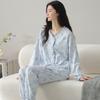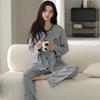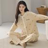 Pijama de Mujer de Algodón Puro Transpirable y Agradable al Tacto de Manga Larga para Primavera Otoño Cárdigan Estampado Dulce Ropa de Casa Conjunto Cómodo