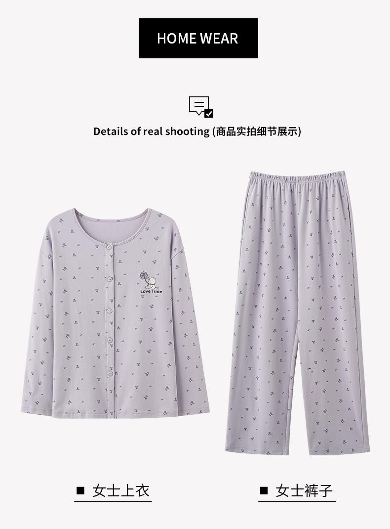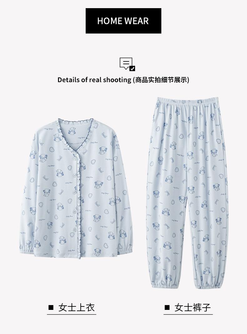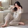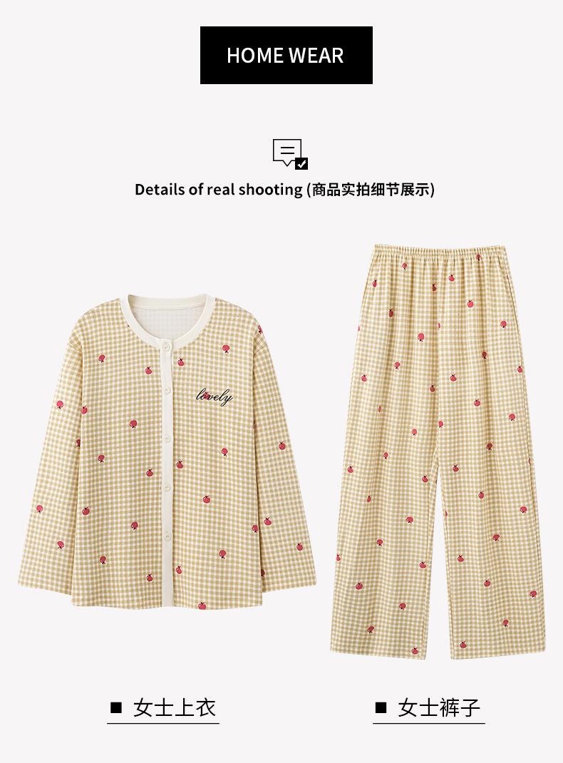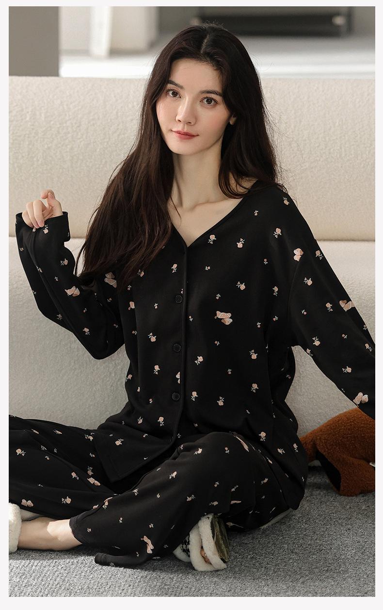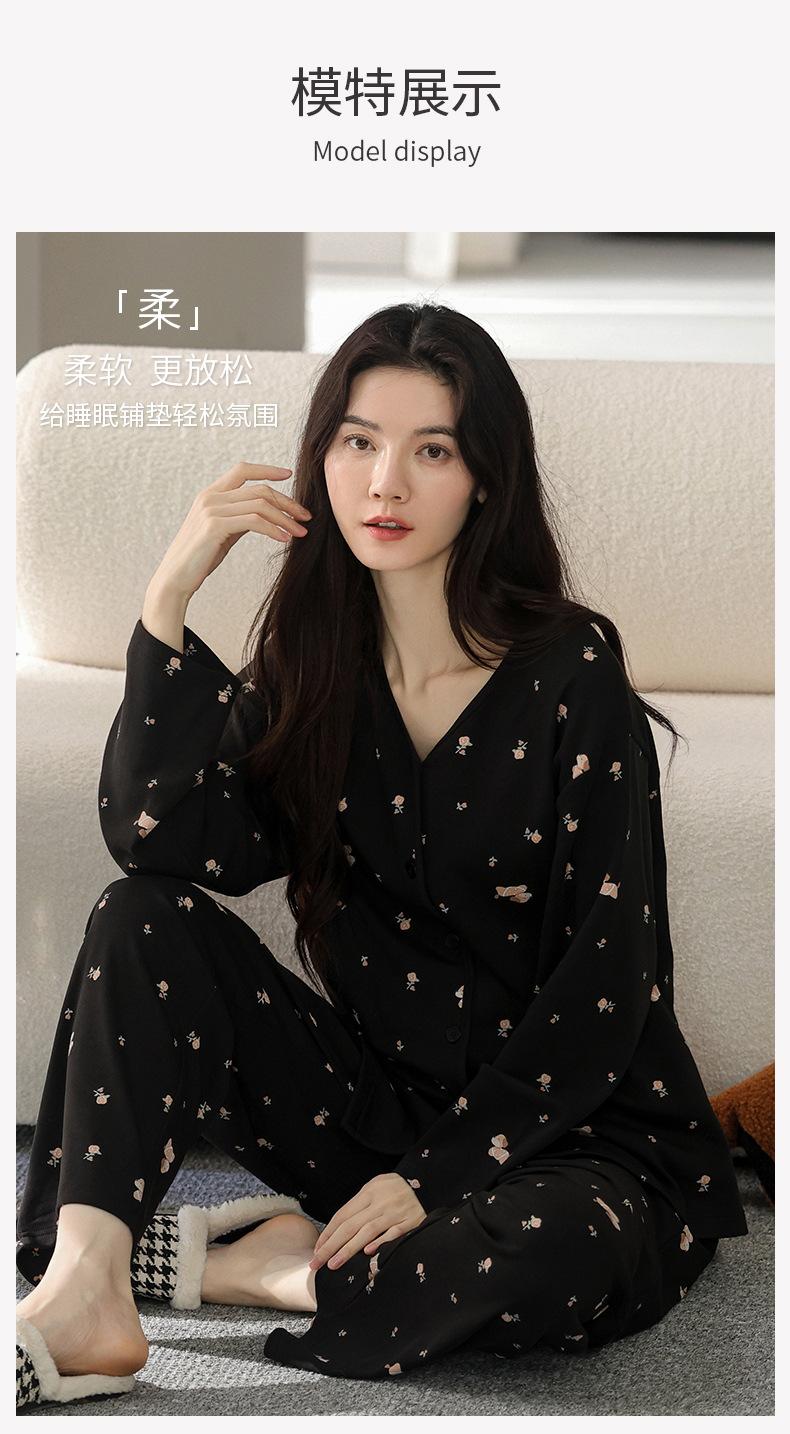 Pijama de Mujer de Algodón Puro Transpirable y Agradable al Tacto de Manga Larga para Primavera Otoño Cárdigan Estampado Dulce Ropa de Casa Conjunto Cómodo