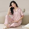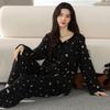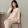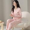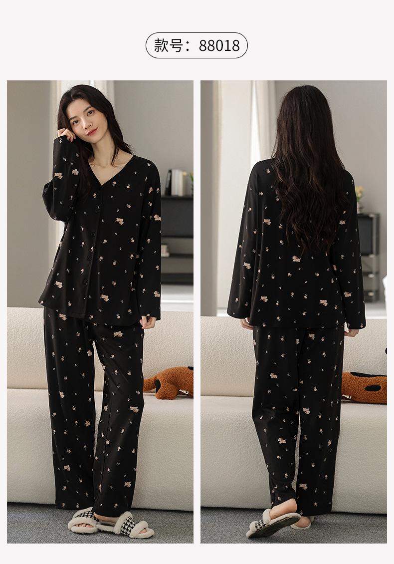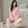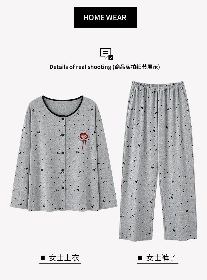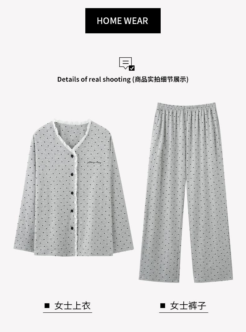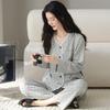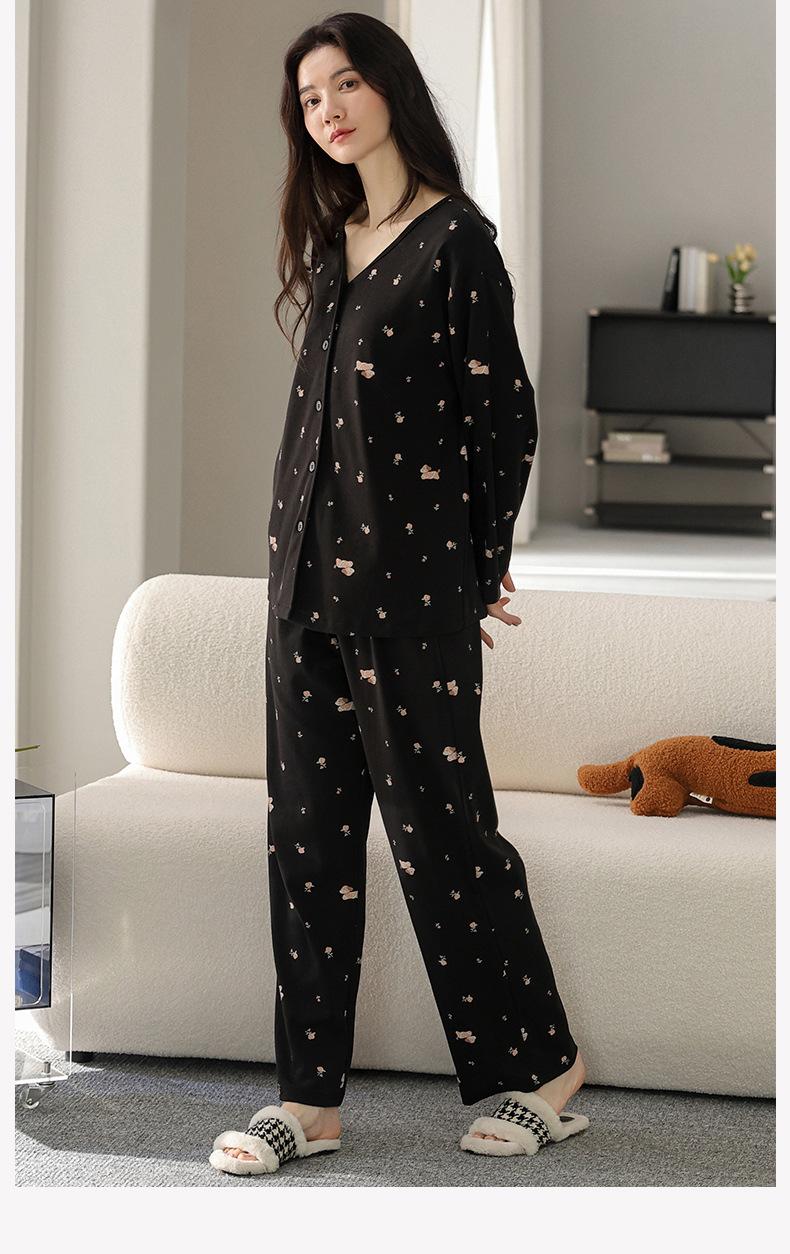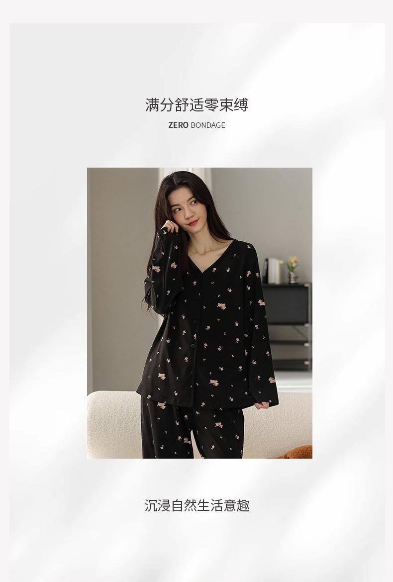 Pijama de Mujer de Algodón Puro Transpirable y Agradable al Tacto de Manga Larga para Primavera Otoño Cárdigan Estampado Dulce Ropa de Casa Conjunto Cómodo