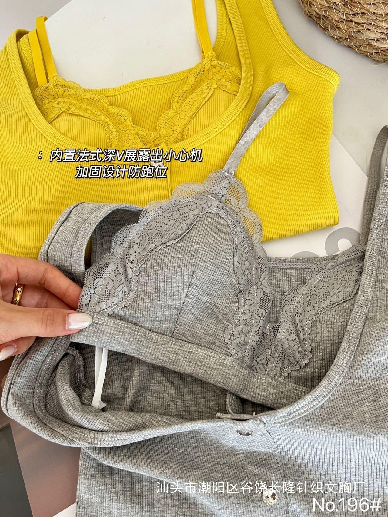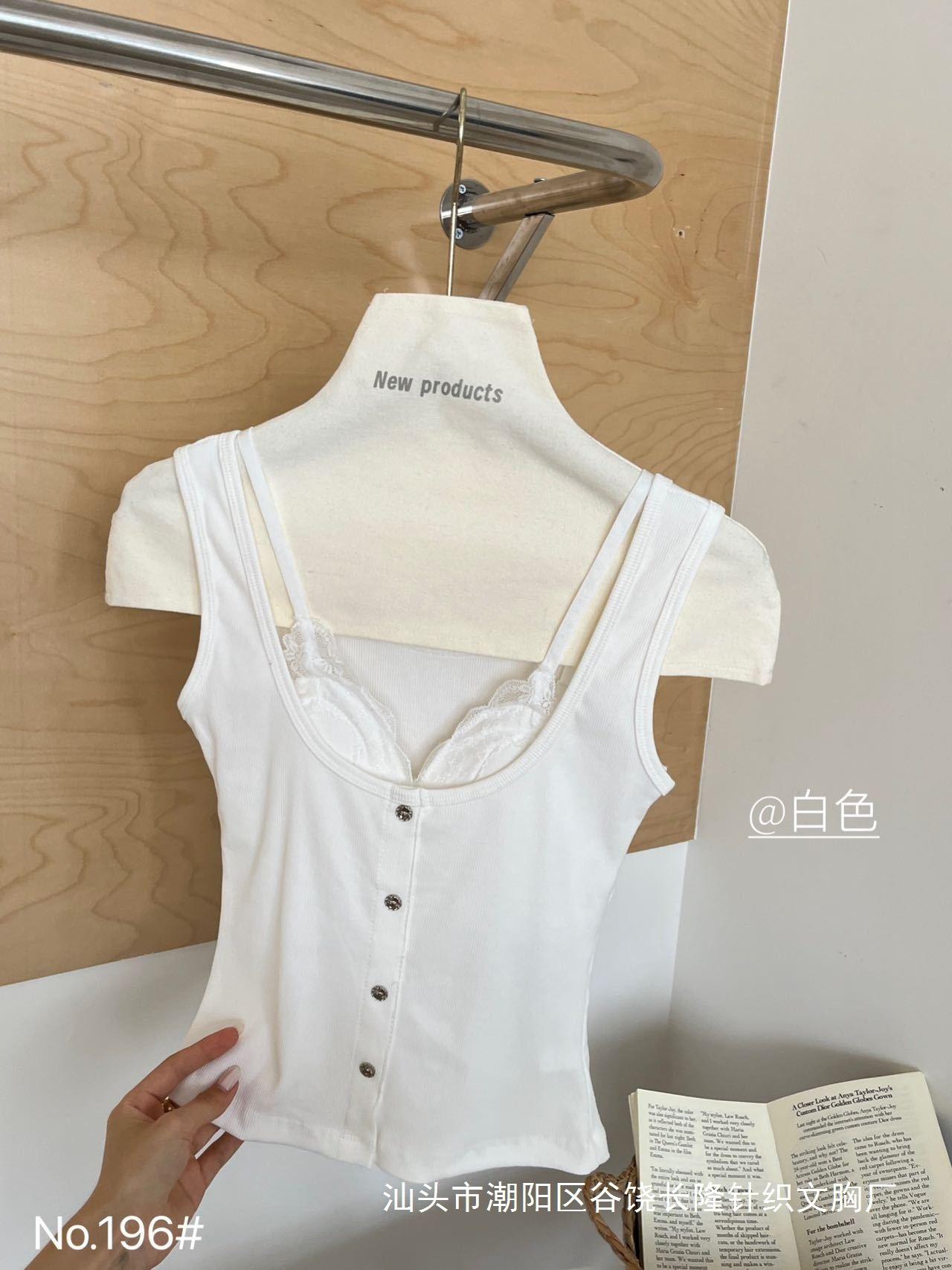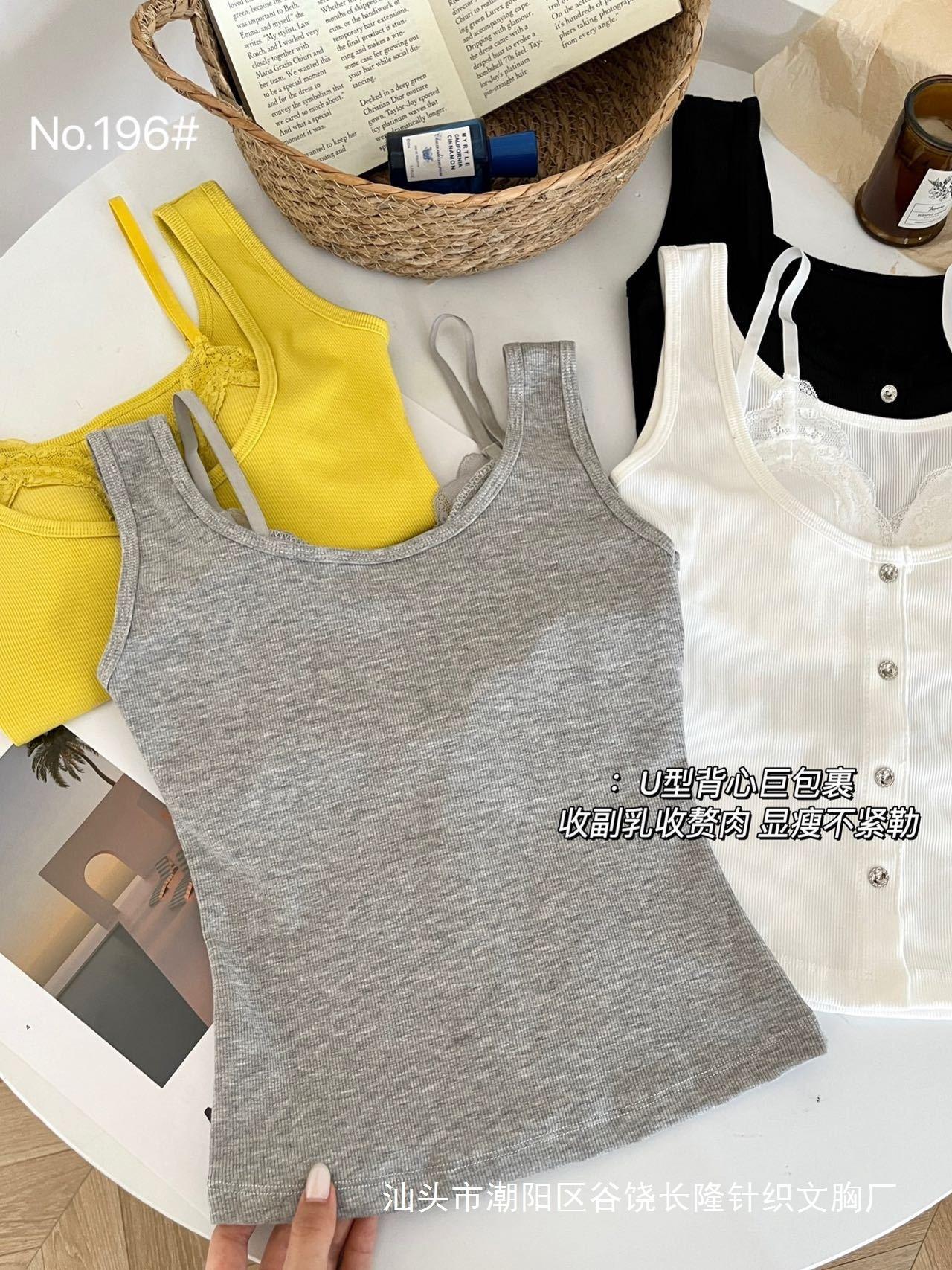 Chica Picante Encaje Patchwork Falso Dos Piezas Hermoso Espalda Ropa Interior Chaleco de Hombro Ancho para Mujer con Diseño de Almohadilla para el Pecho Top Adelgazante Sexy