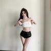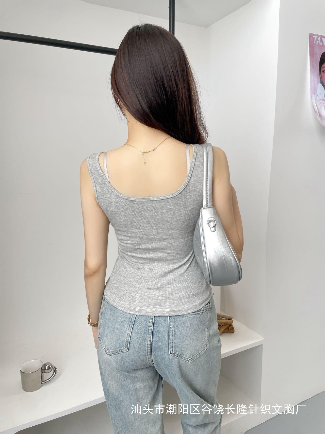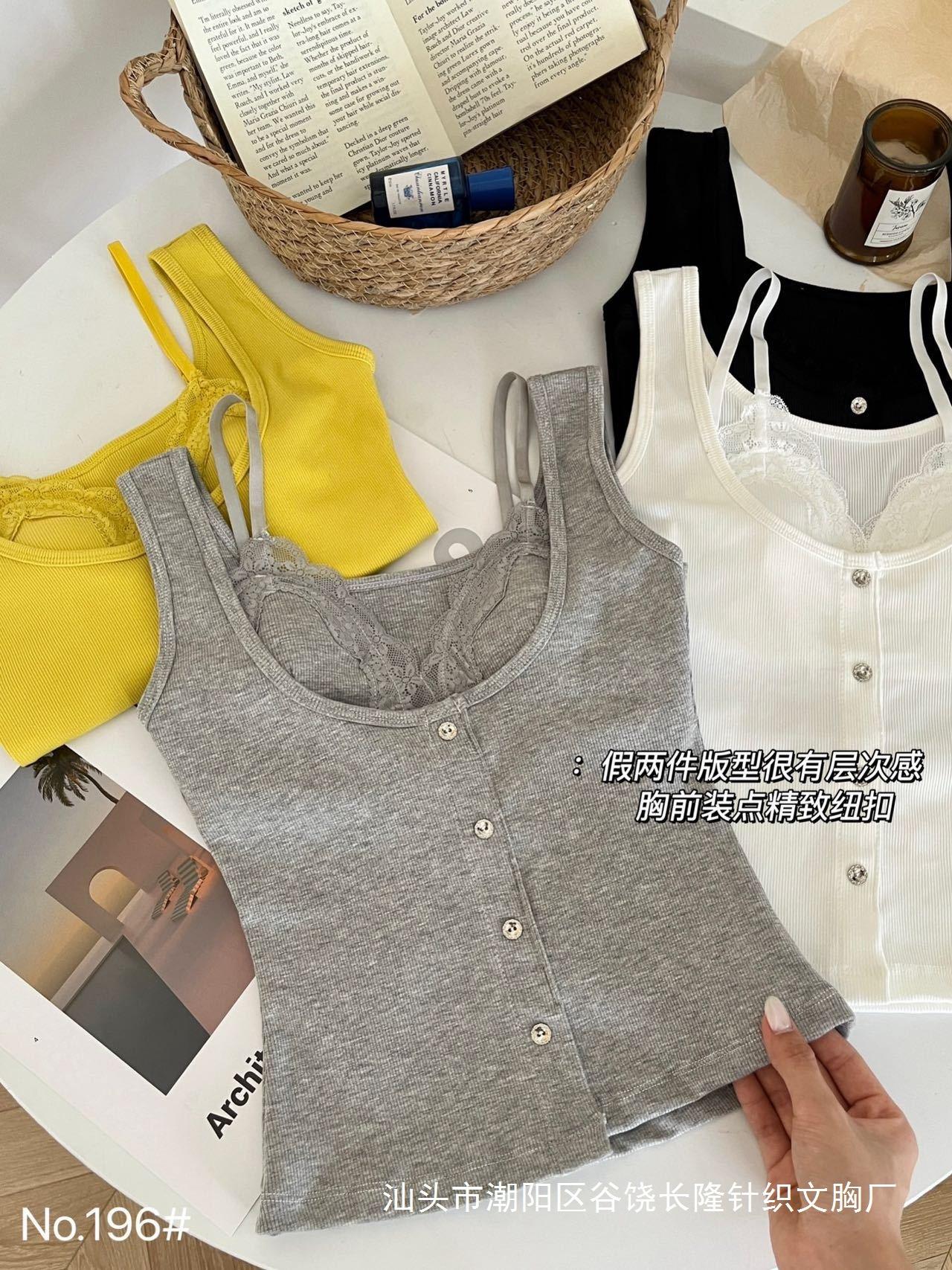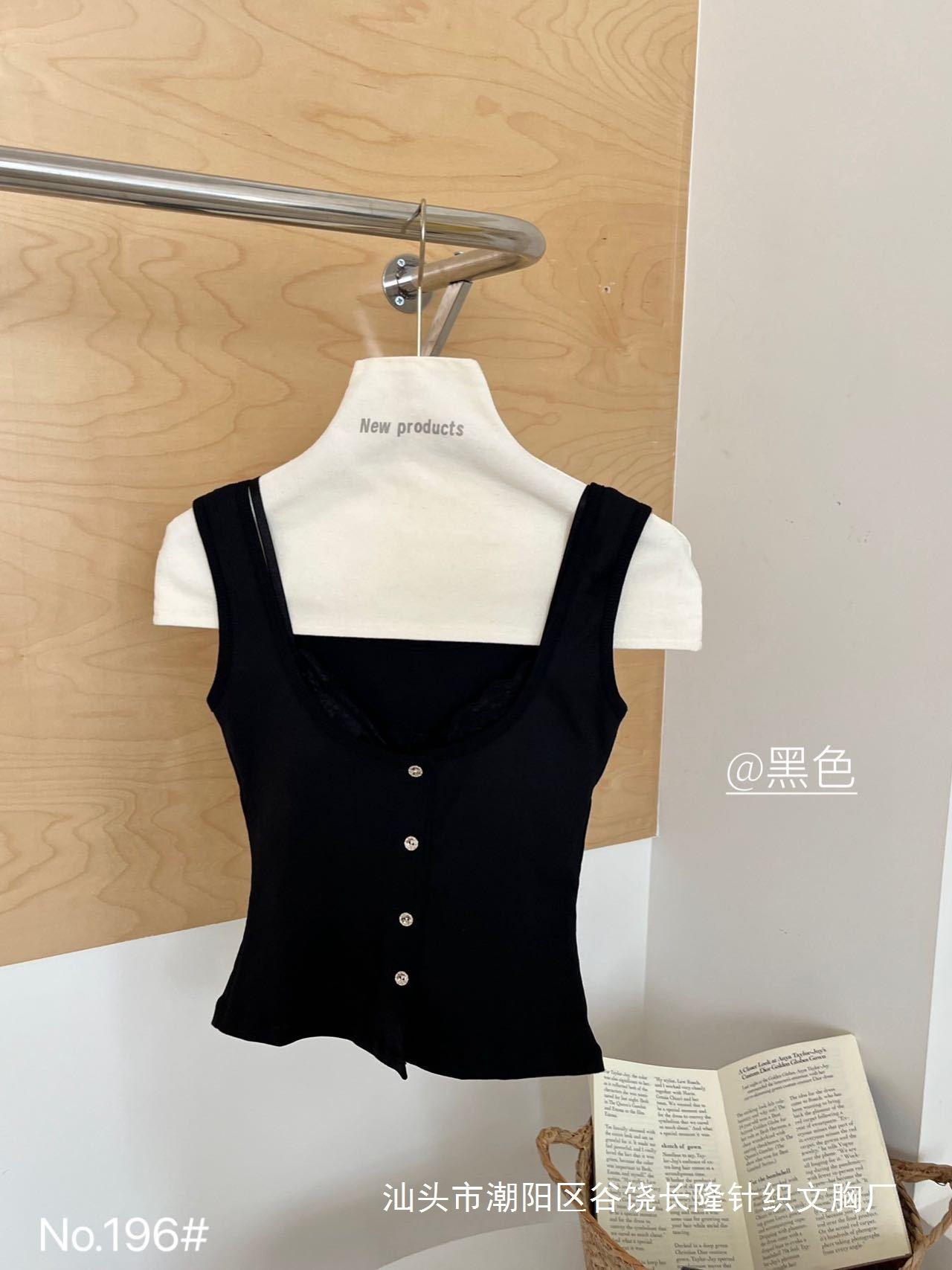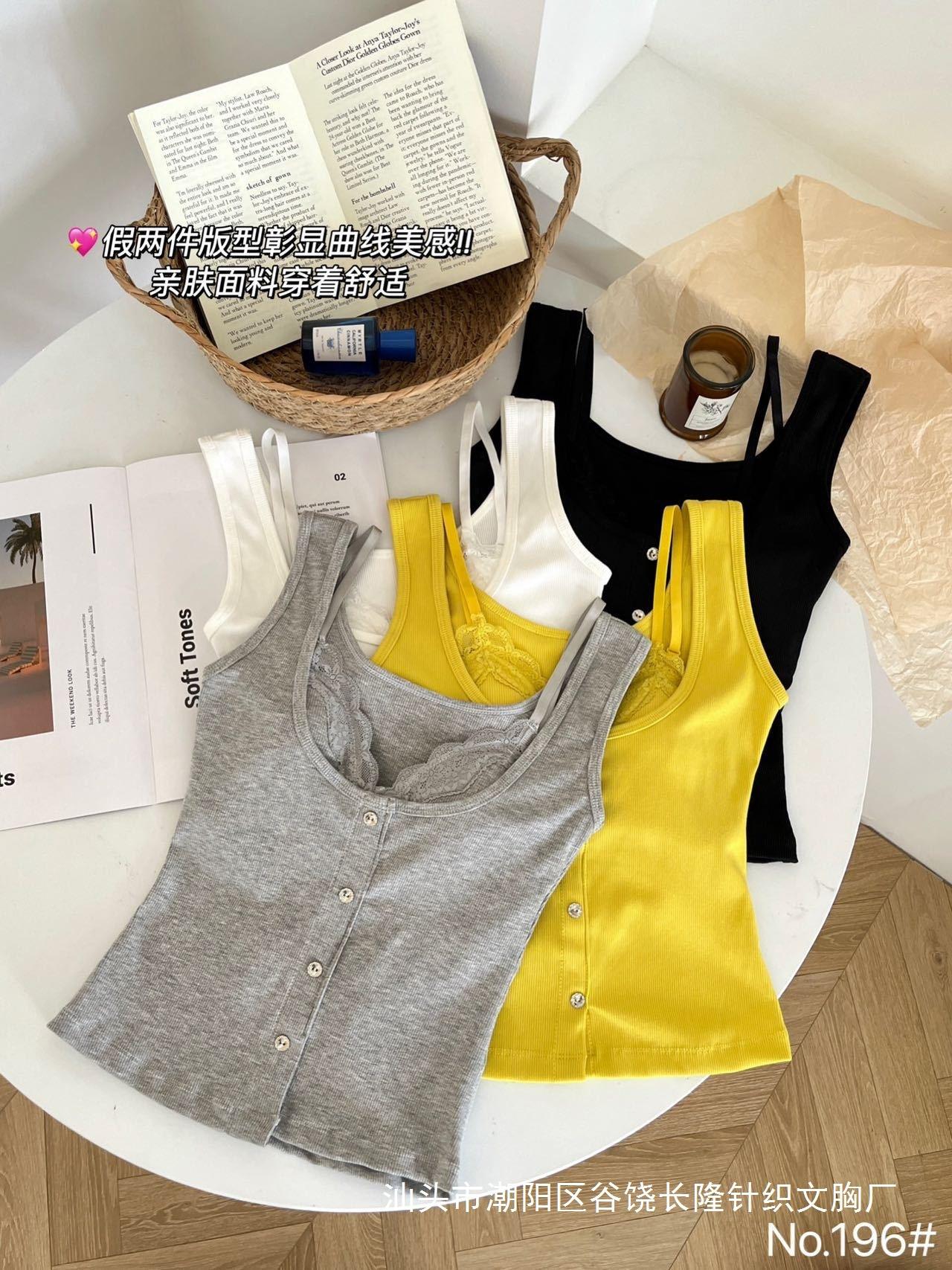 Chica Picante Encaje Patchwork Falso Dos Piezas Hermoso Espalda Ropa Interior Chaleco de Hombro Ancho para Mujer con Diseño de Almohadilla para el Pecho Top Adelgazante Sexy