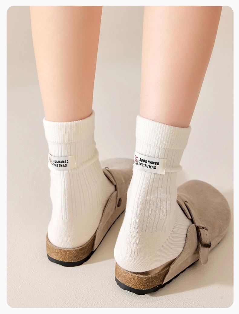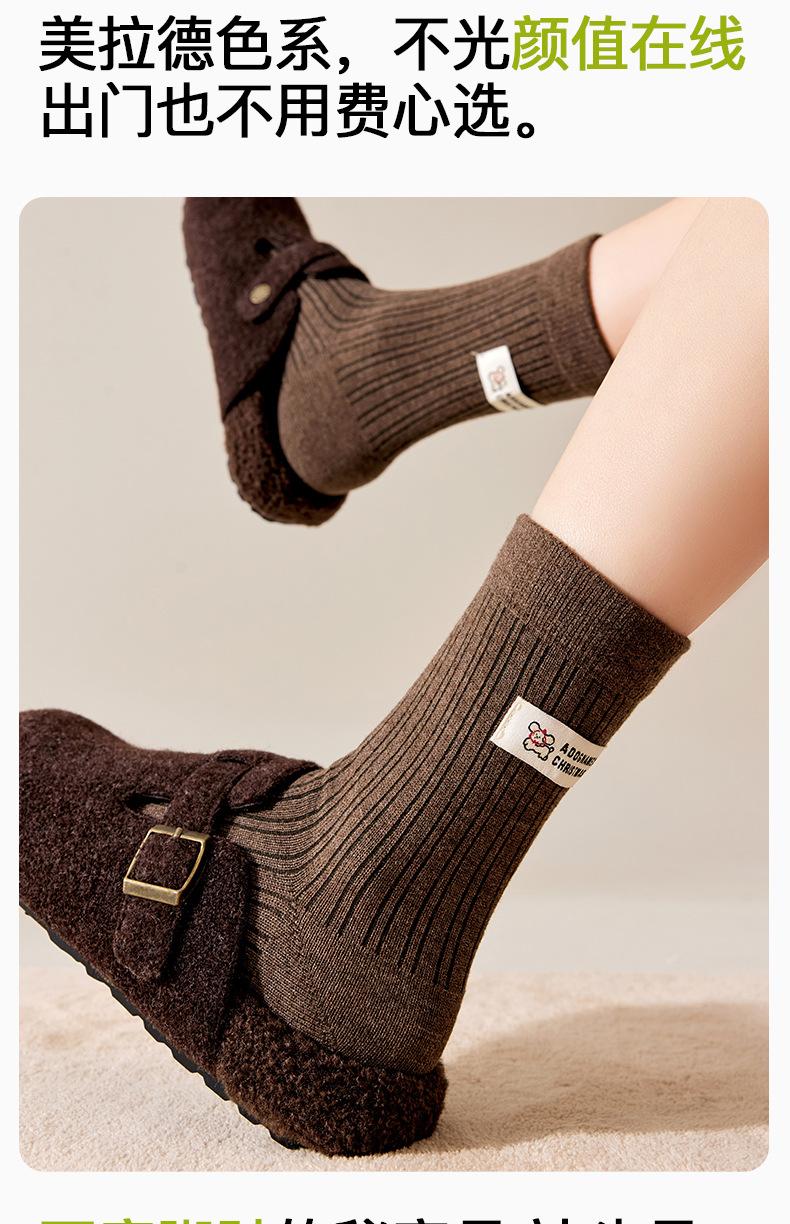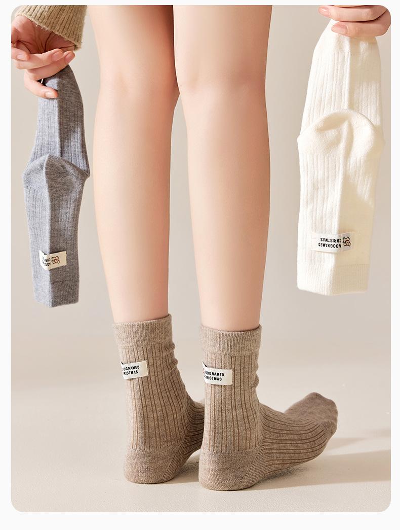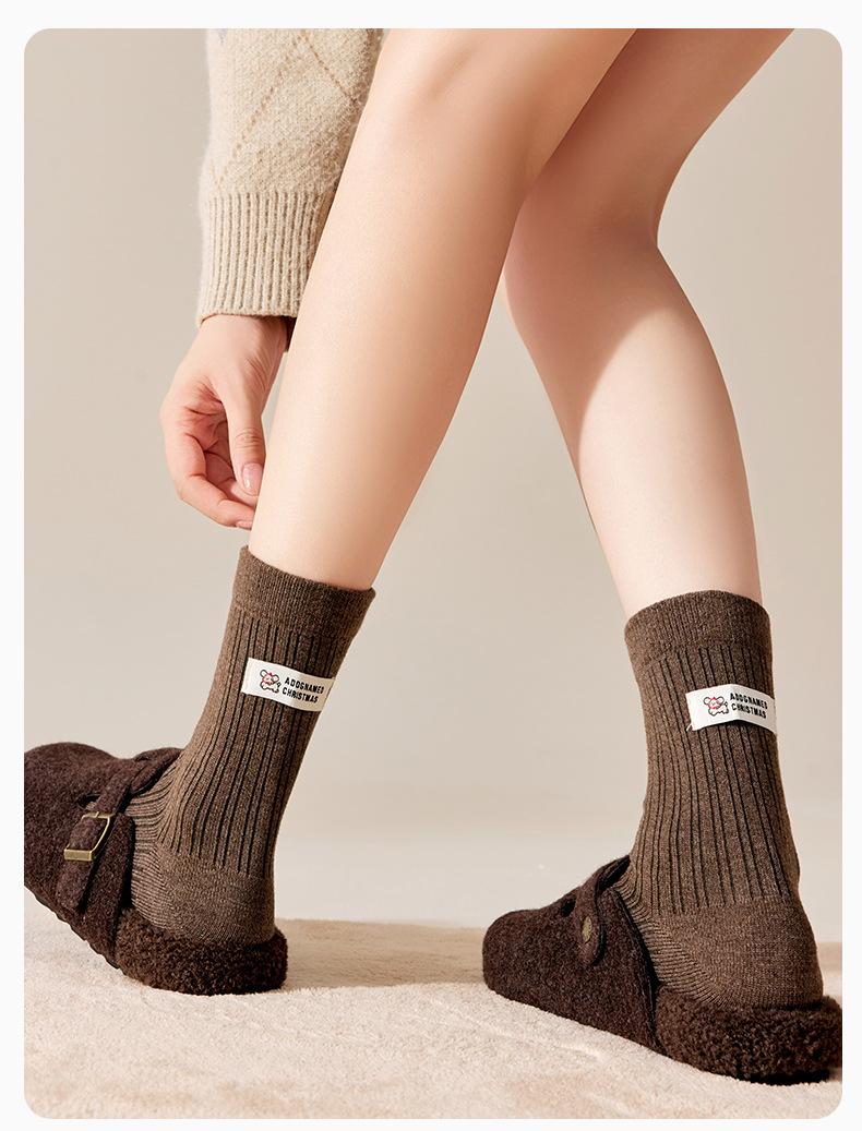 Calcetines de Mujer Estilo Otoño e Invierno Etiqueta de Tela Versátil Bloque de Color Cálidos Calcetines Medios Retro Cómodos Calcetines Gruesos de Felpa Venta al por Mayor