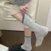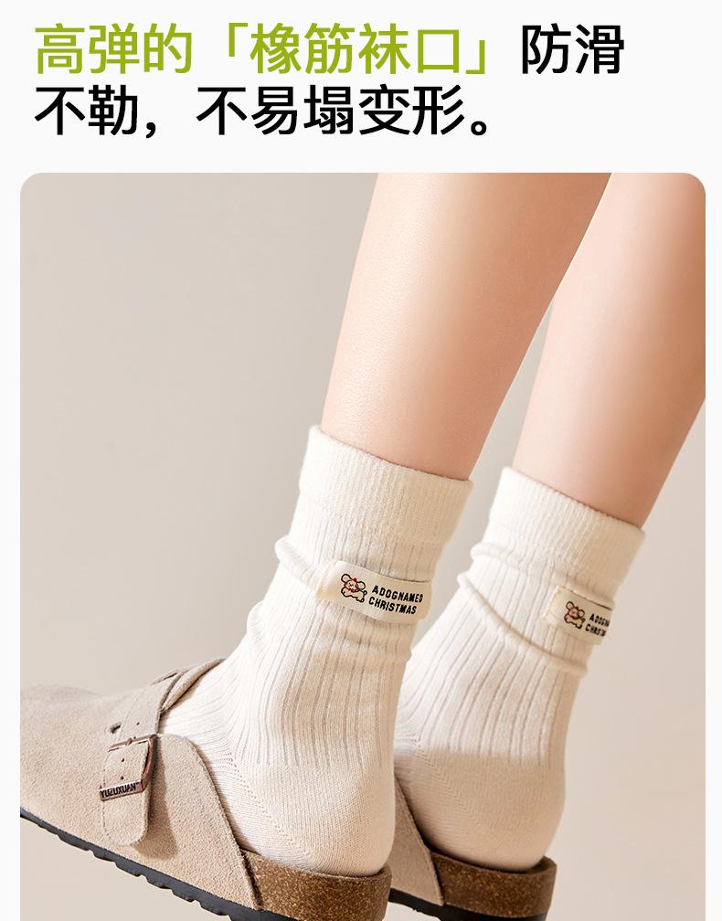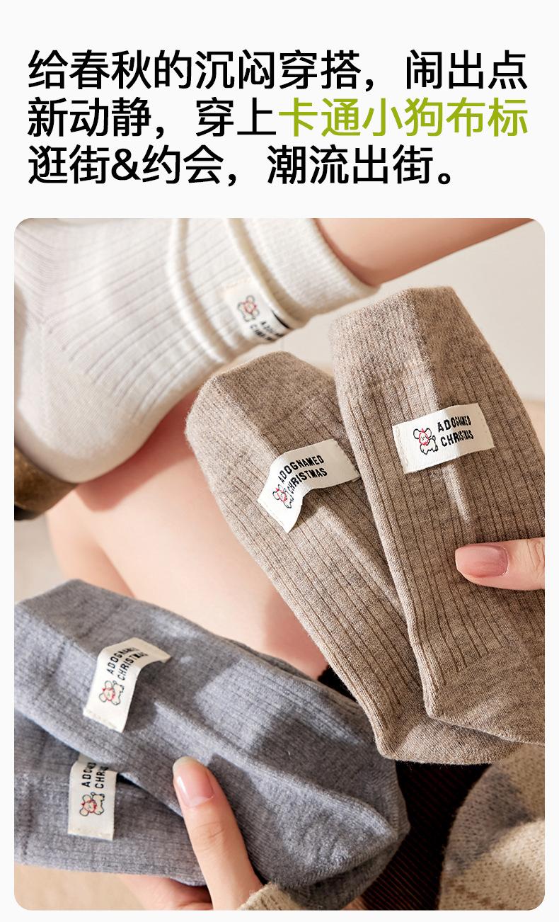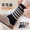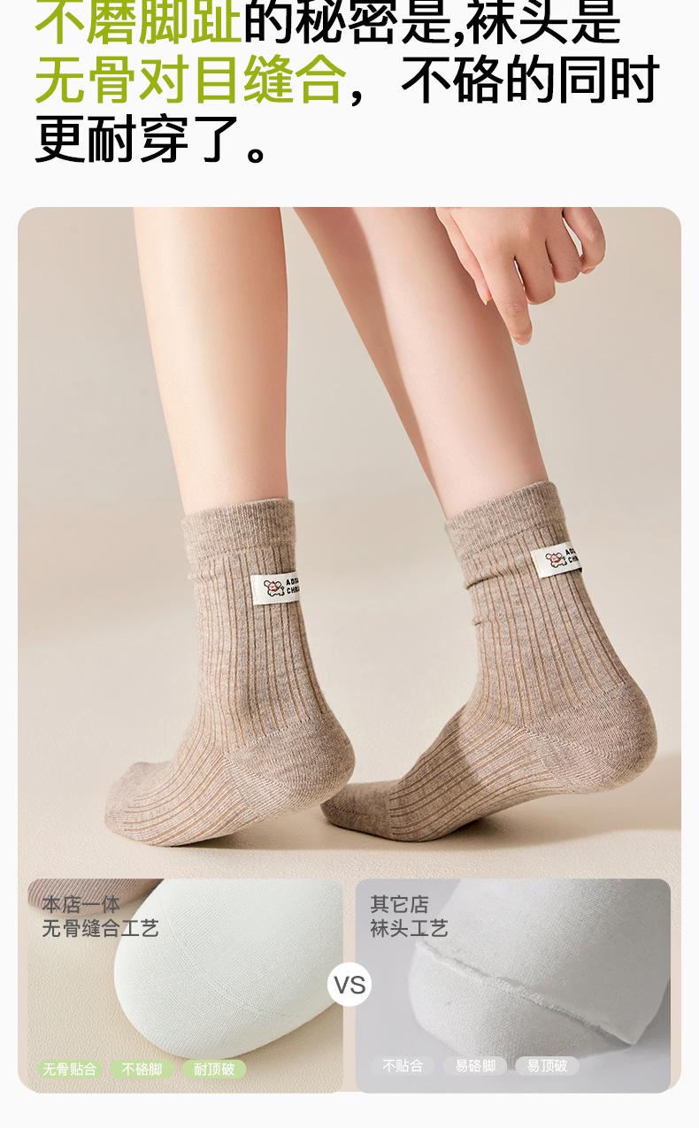 Calcetines de Mujer Estilo Otoño e Invierno Etiqueta de Tela Versátil Bloque de Color Cálidos Calcetines Medios Retro Cómodos Calcetines Gruesos de Felpa Venta al por Mayor