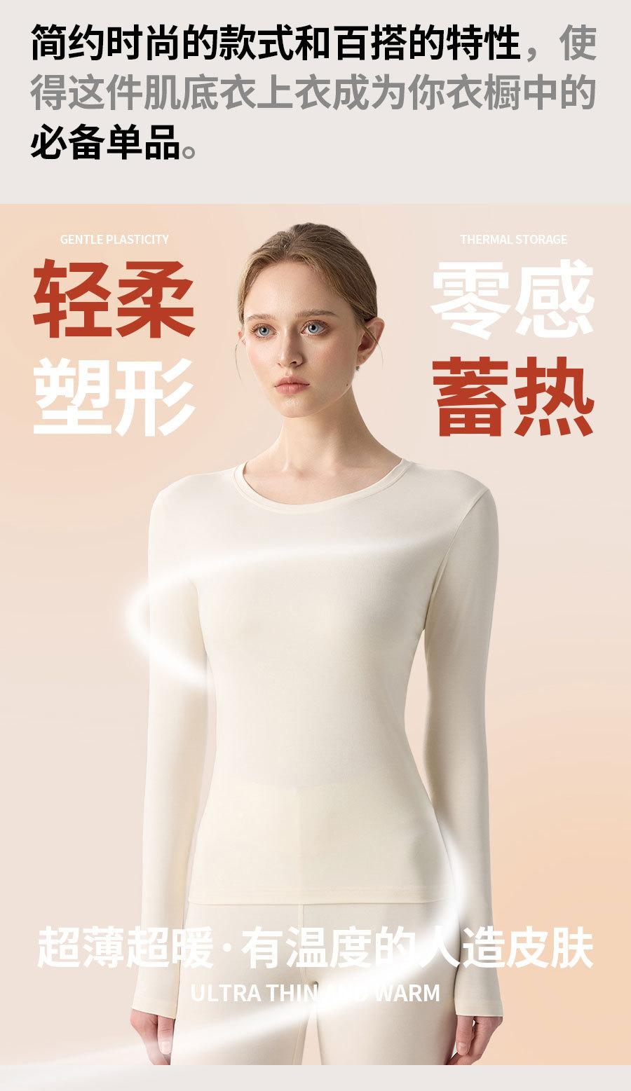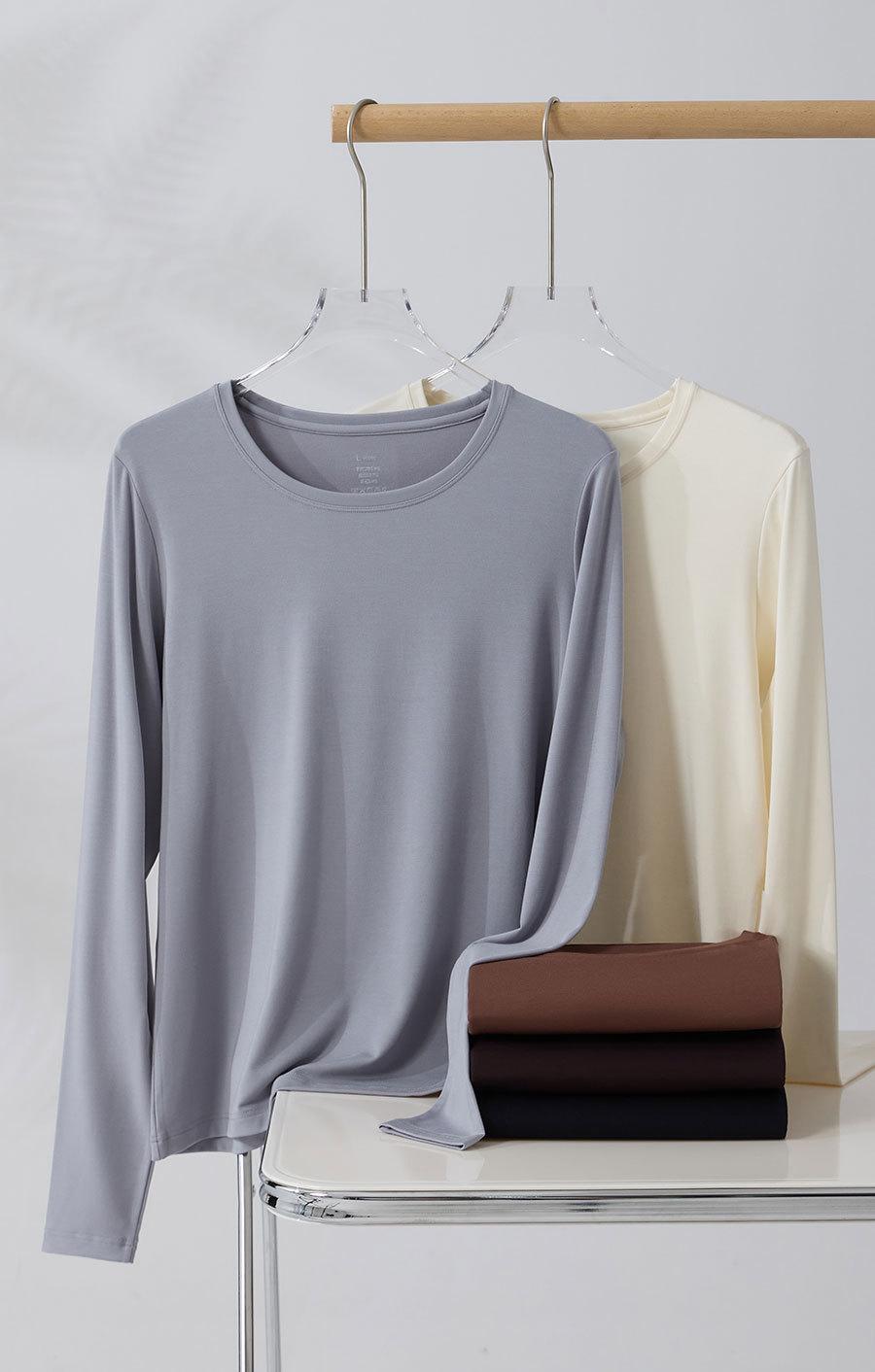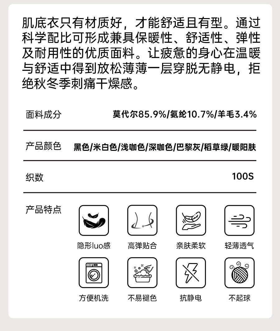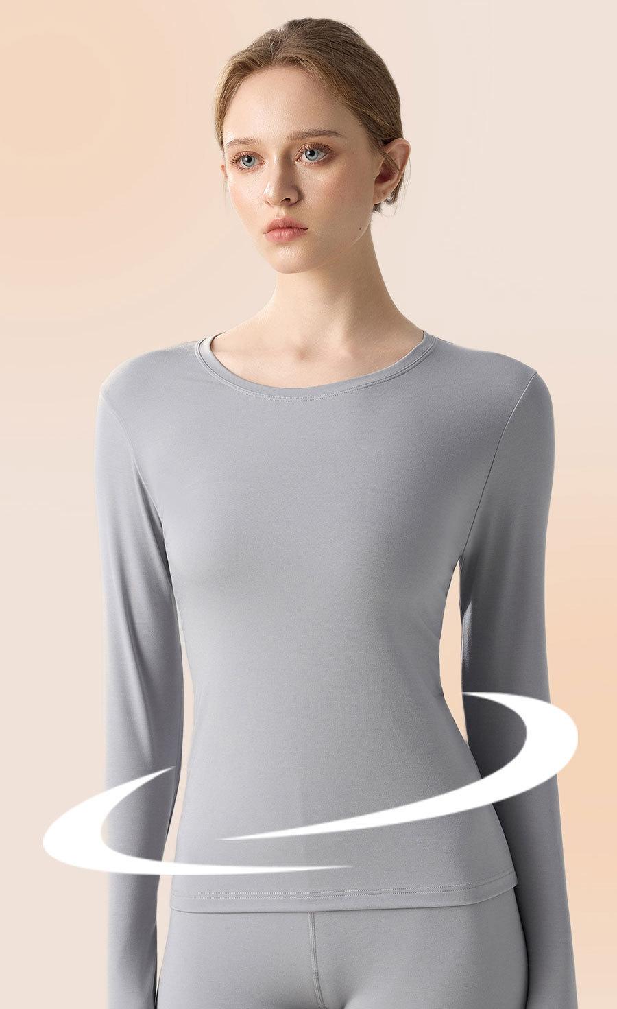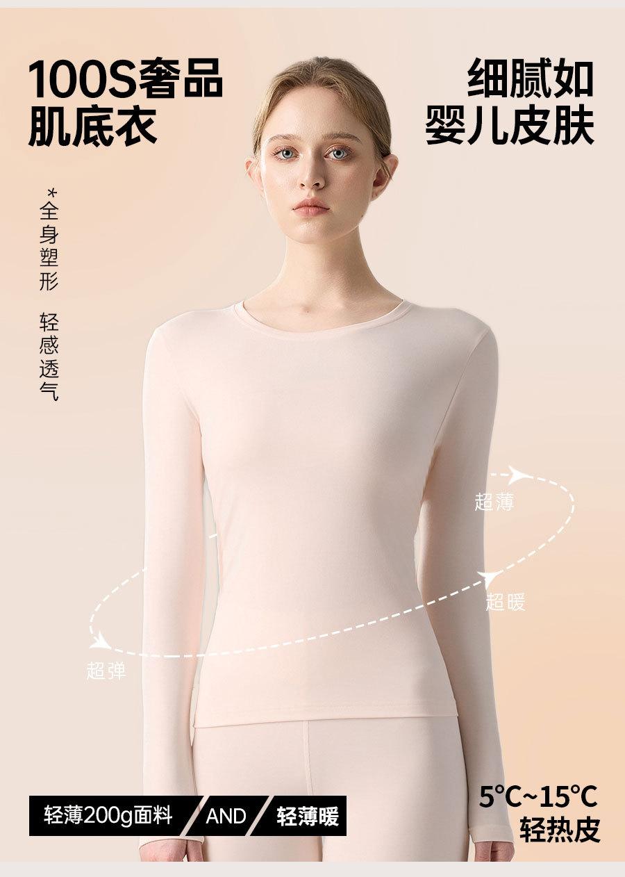Camiseta Interior Ligera de 200g Modal 100s Lana Acrílico Capa Base para Mujer Sin Costuras Adelgazante Cálida Ropa de Otoño