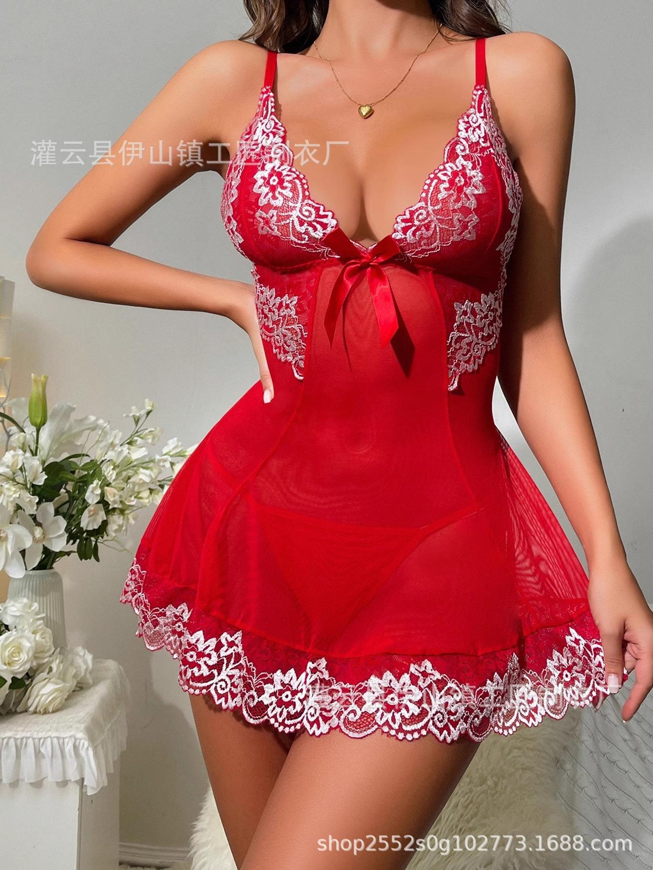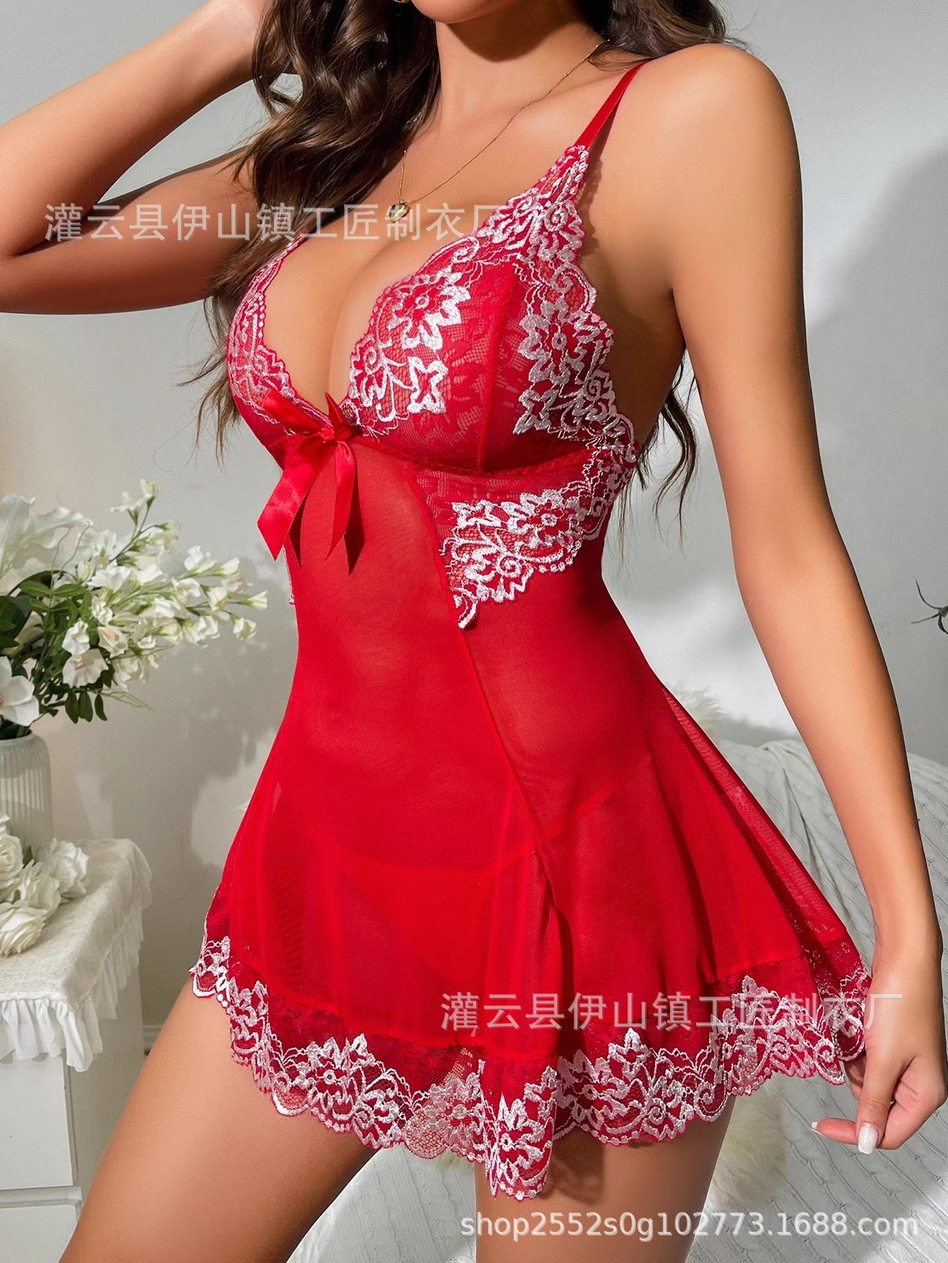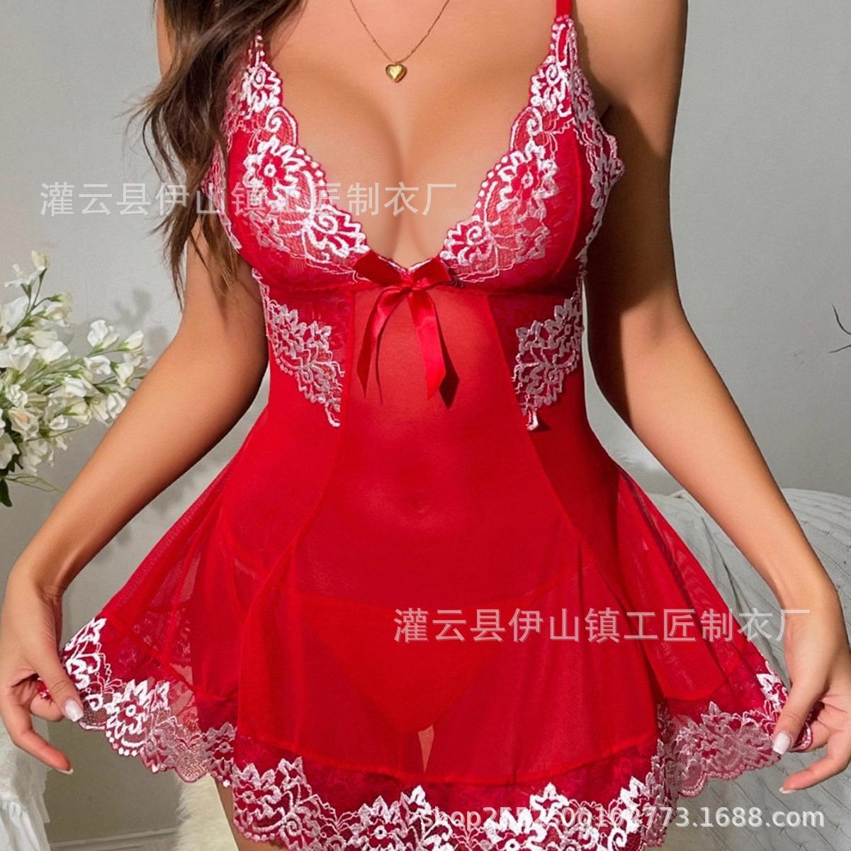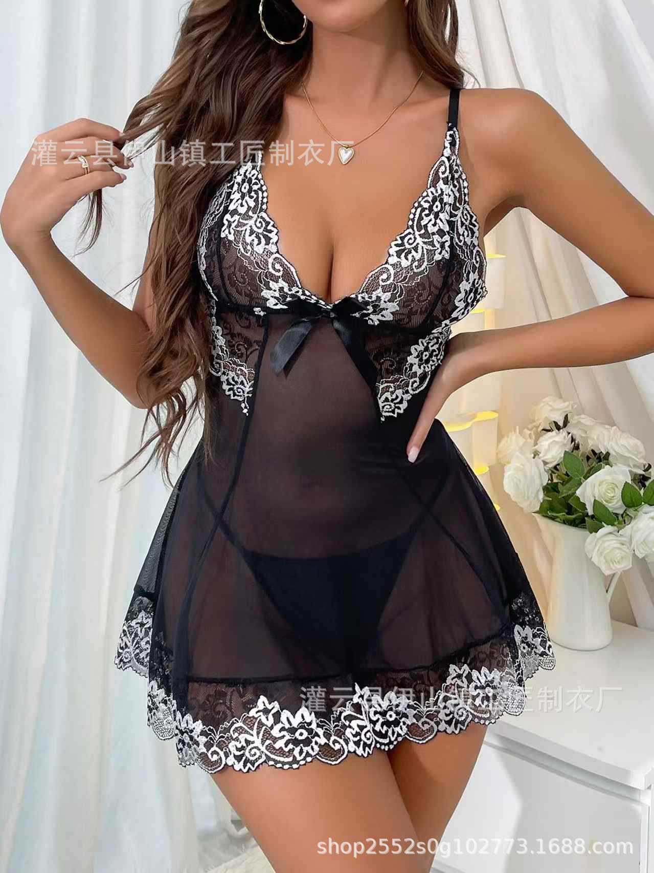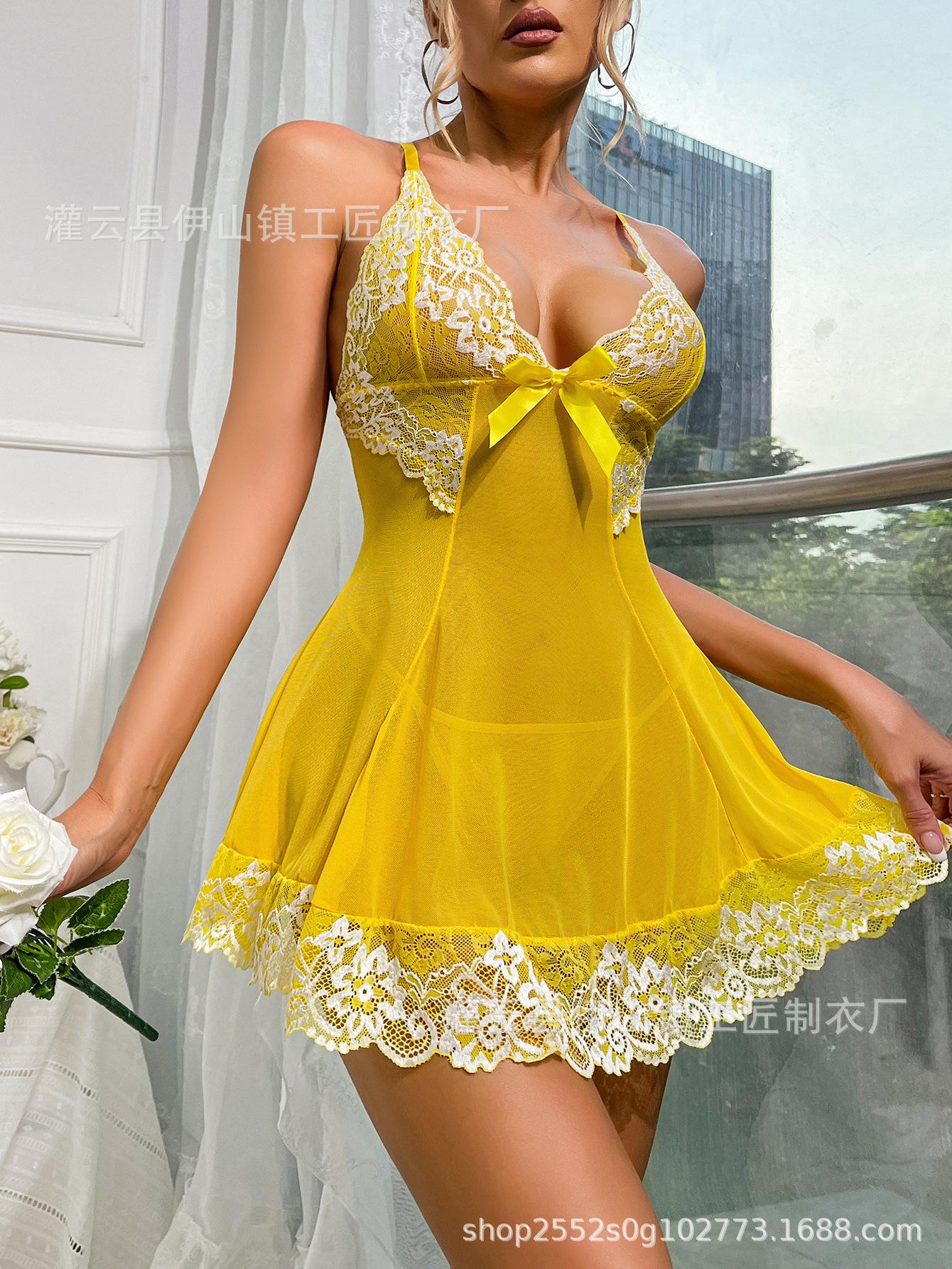 Nuevo Encaje Dobladillo Transfronterizo Amazon AliExpress Lencería Erótica Sexy Ropa de Dormir Camisola Vestido Camisón Mujeres