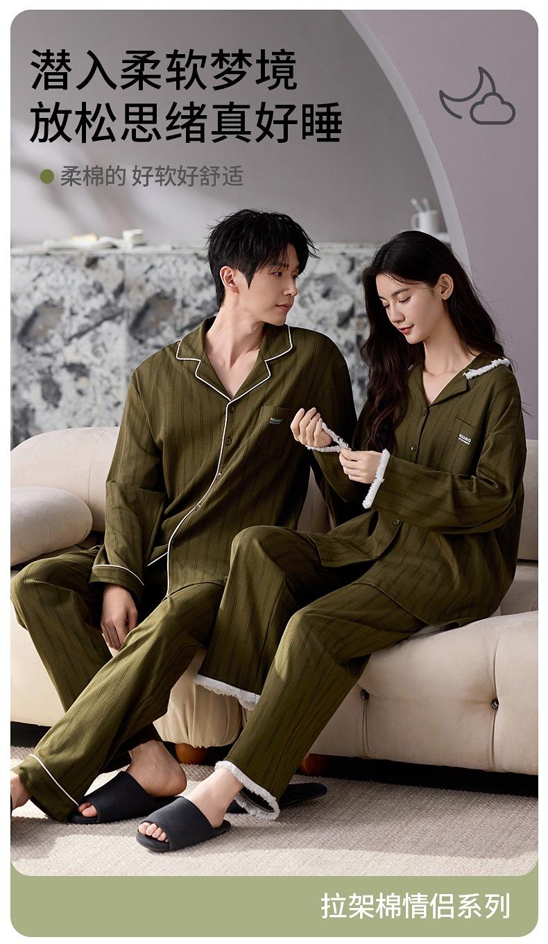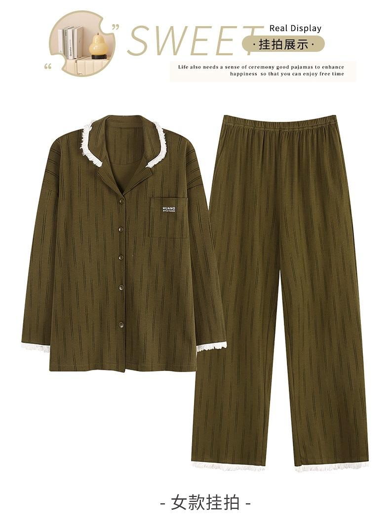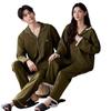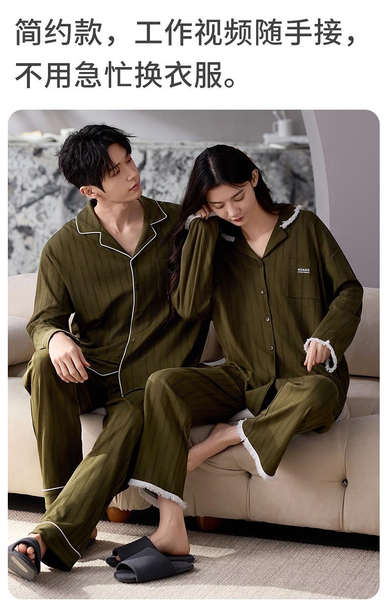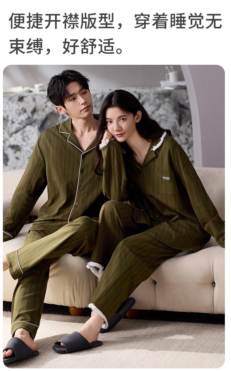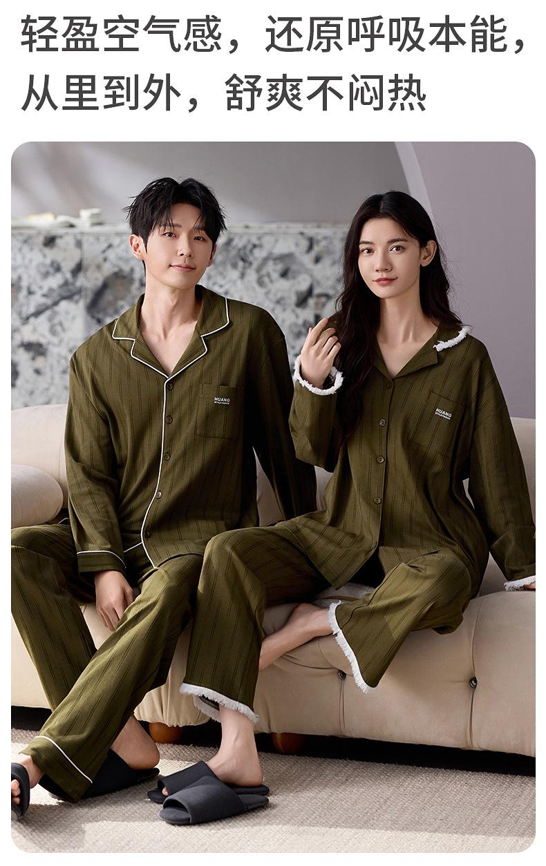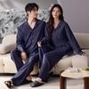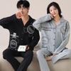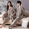 Pijamas de Algodón Puro para Pareja Otoño Manga Larga Pantalón Largo Rayado Moda Cárdigan Hombre y Mujer Ropa de Casa Conjunto de Dos Piezas