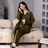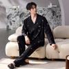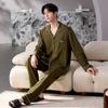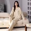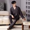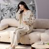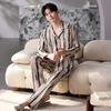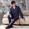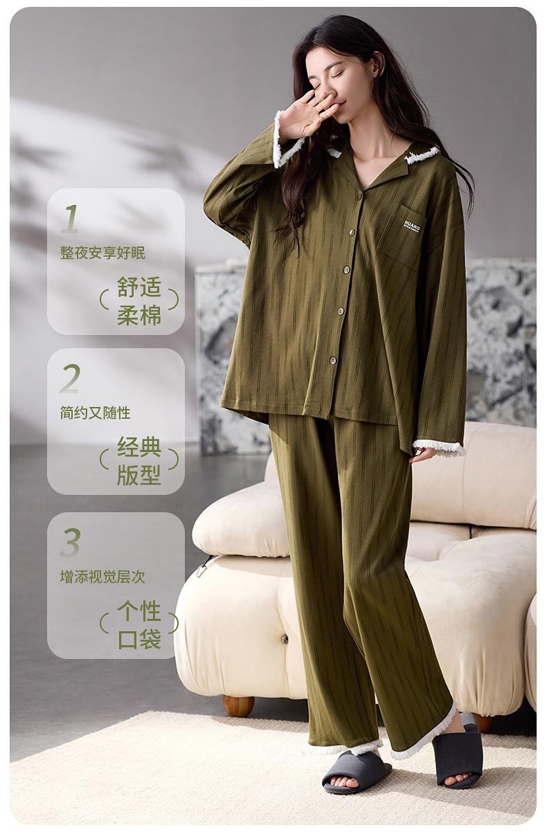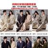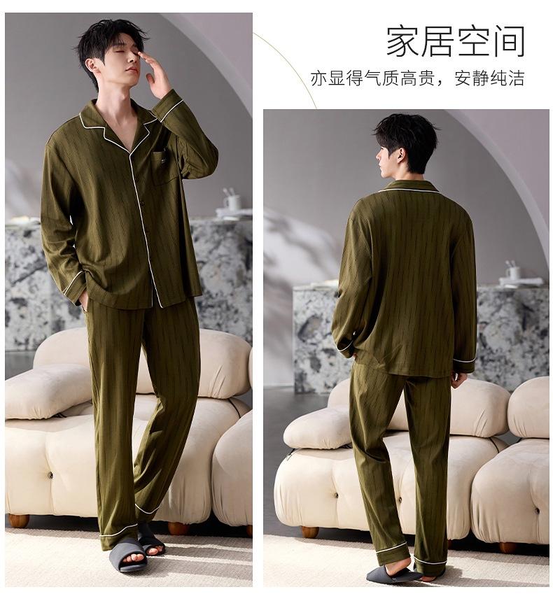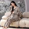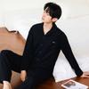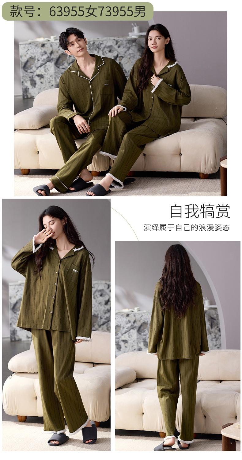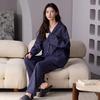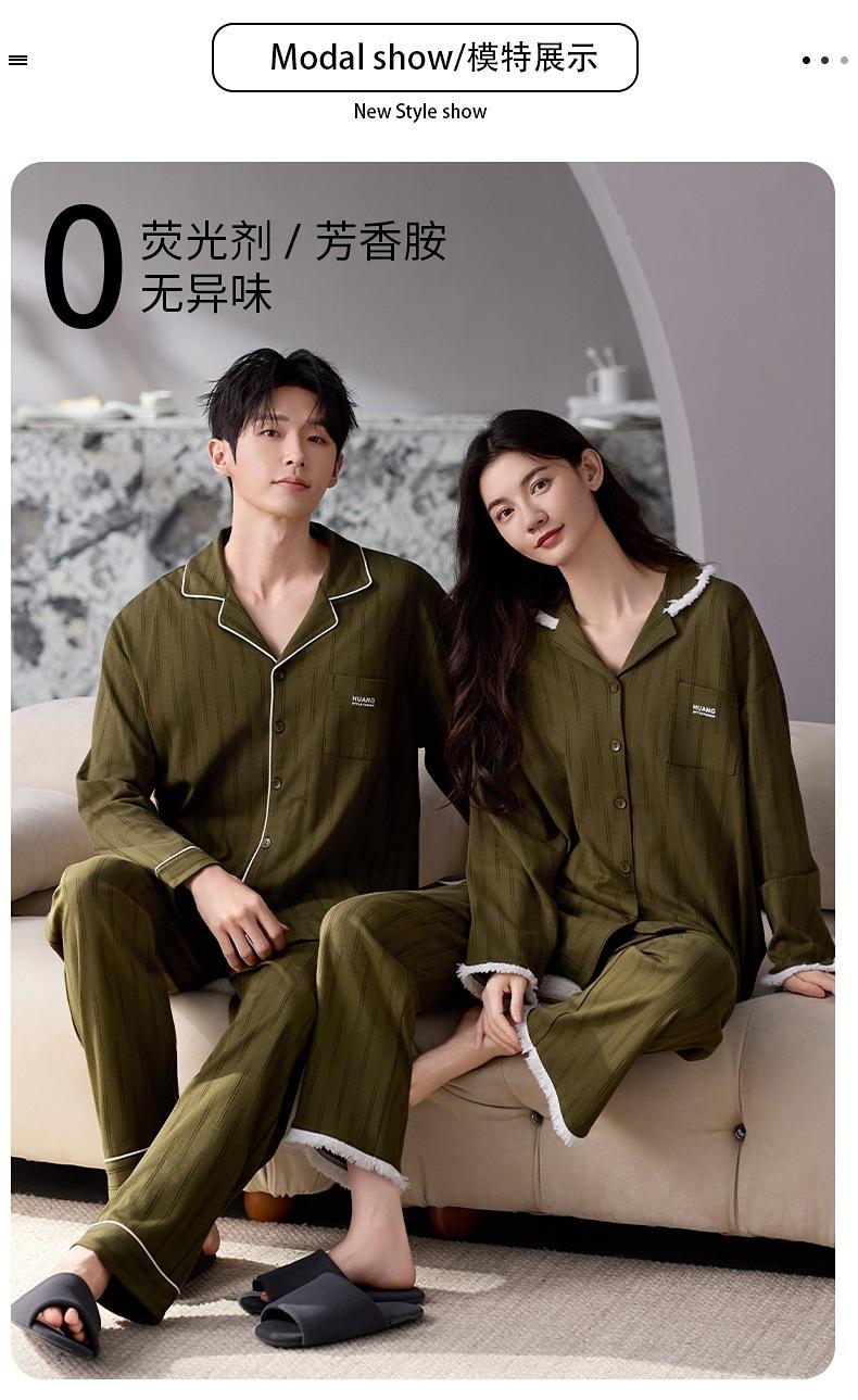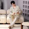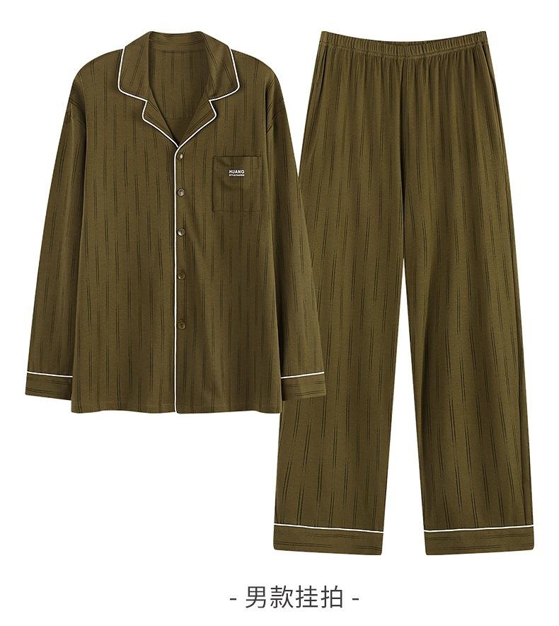 Pijamas de Algodón Puro para Pareja Otoño Manga Larga Pantalón Largo Rayado Moda Cárdigan Hombre y Mujer Ropa de Casa Conjunto de Dos Piezas