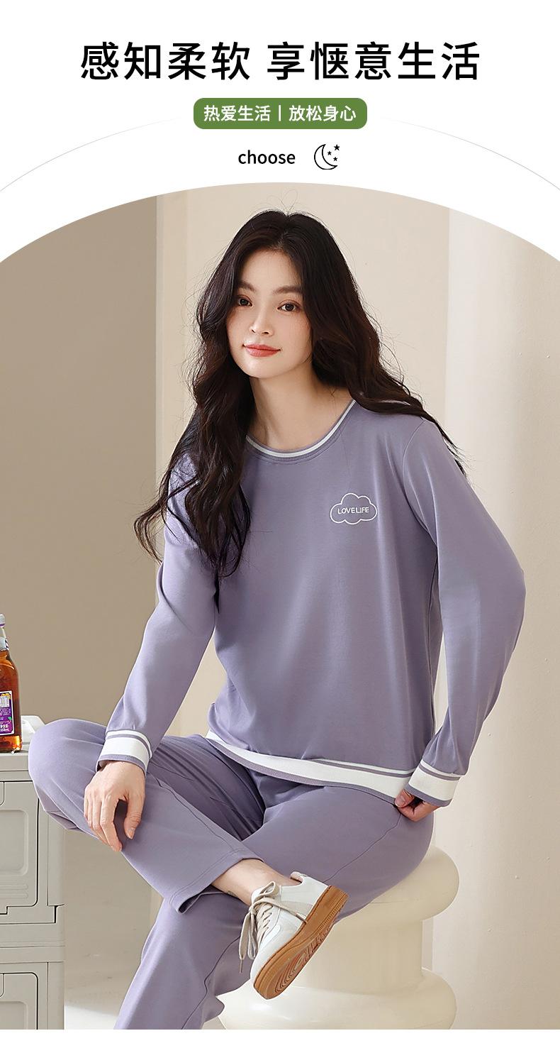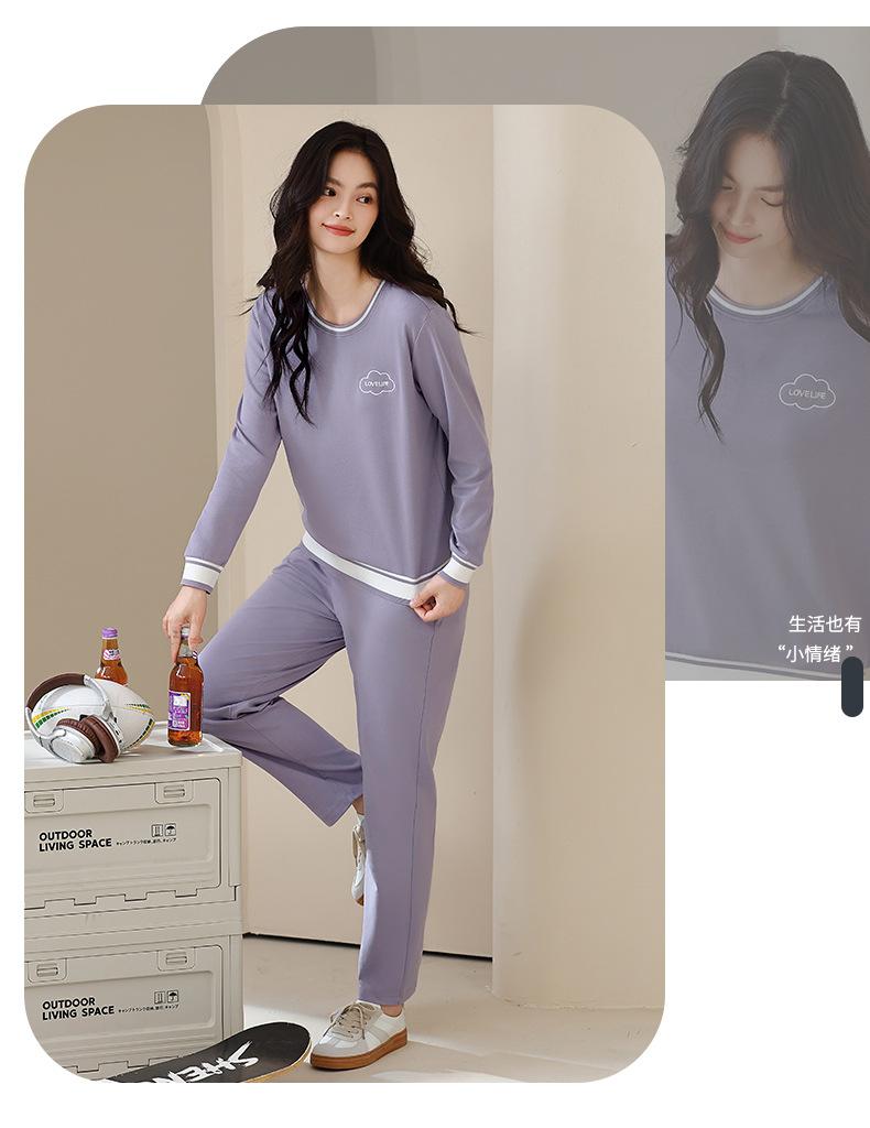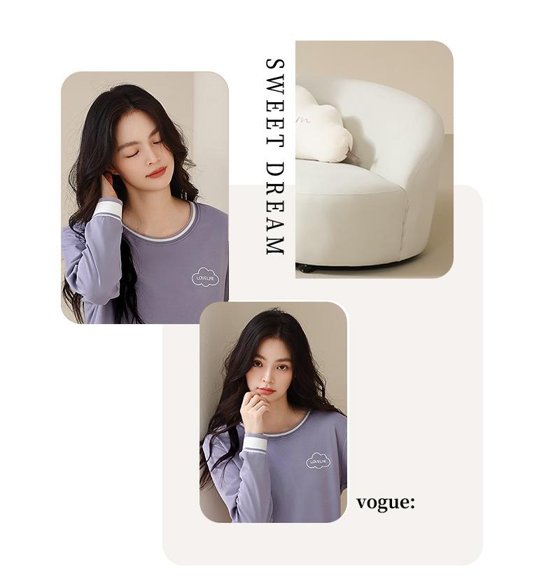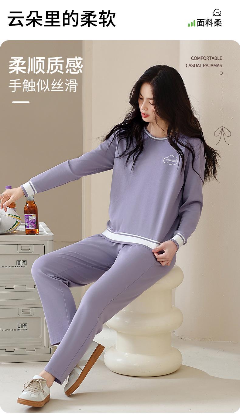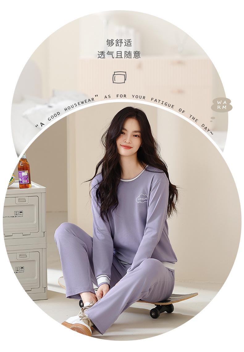 Pijamas de Algodón Puro para Mujer Estilo Otoño e Invierno Manga Larga Pulóver Ropa Casual Usable Ropa para el Hogar Pijamas de Algodón para Mujer Otoño