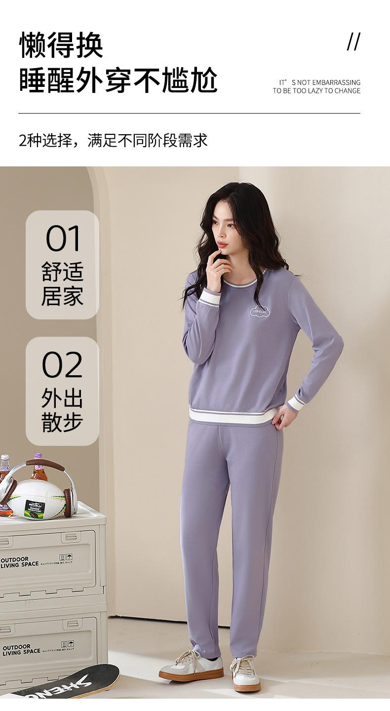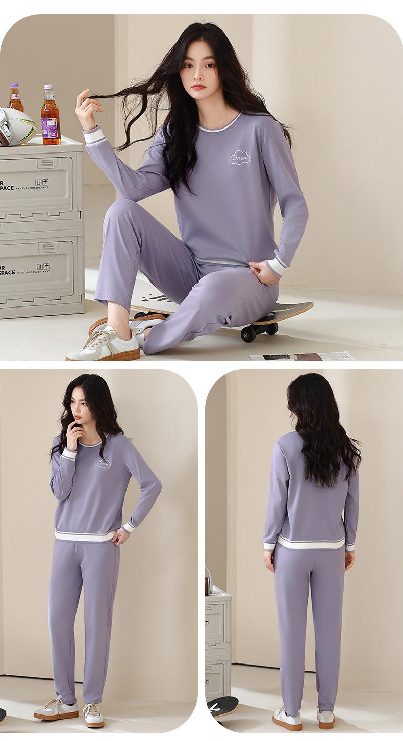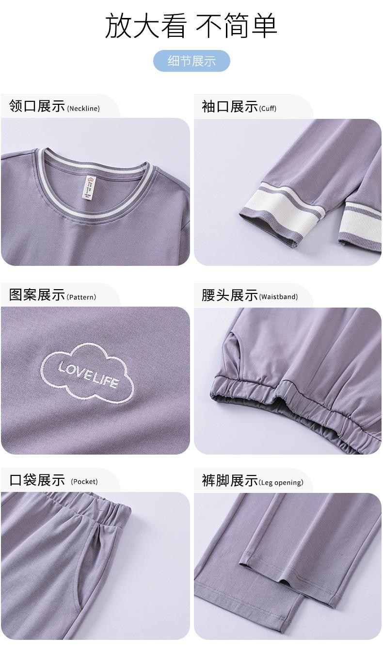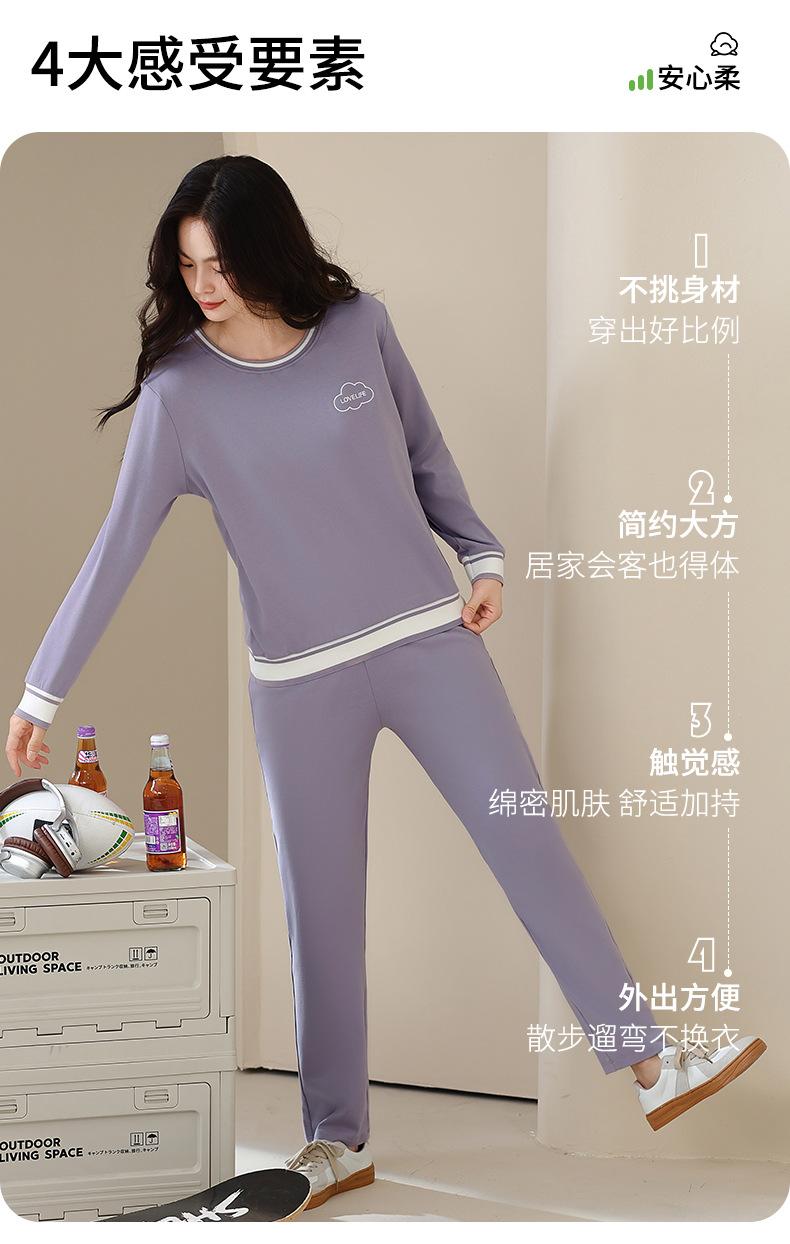 Pijamas de Algodón Puro para Mujer Estilo Otoño e Invierno Manga Larga Pulóver Ropa Casual Usable Ropa para el Hogar Pijamas de Algodón para Mujer Otoño