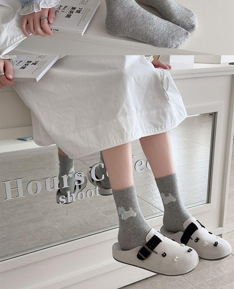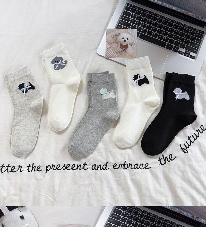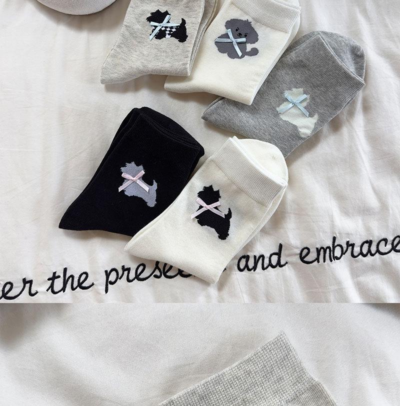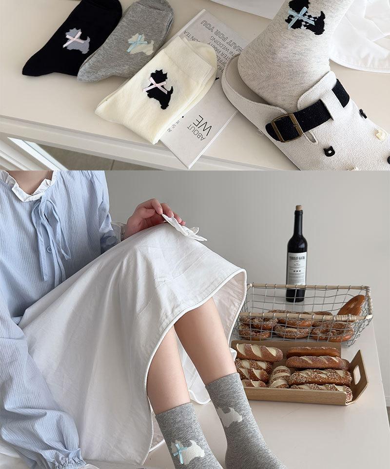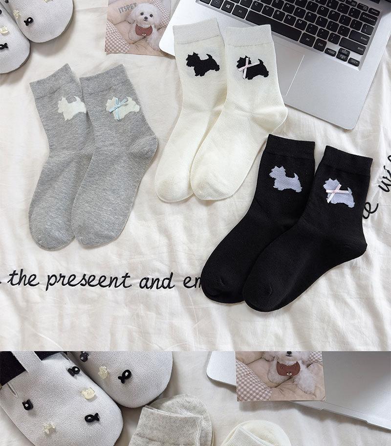 Calcetines de Dibujos Animados para Mujer West Highland Versátiles Simples de Media Caña Algodón Bloque de Color Lazo Dulces y Lindos Calcetines de Rizo Mujer
