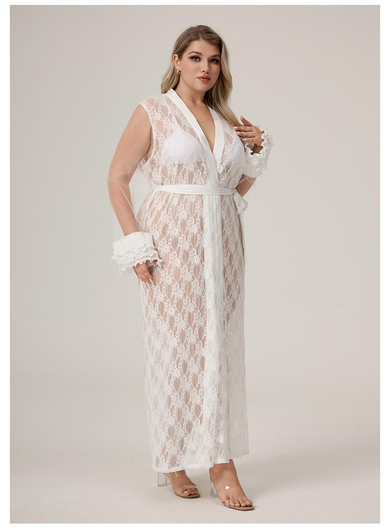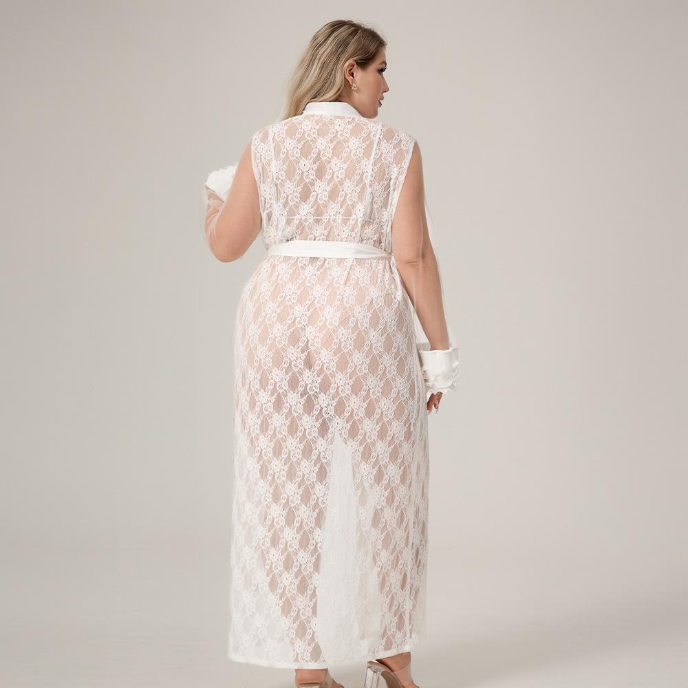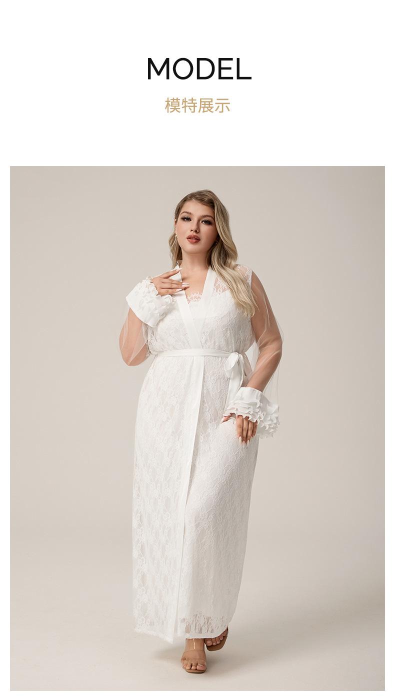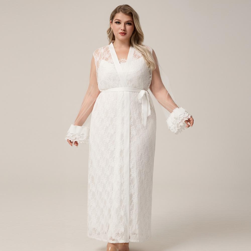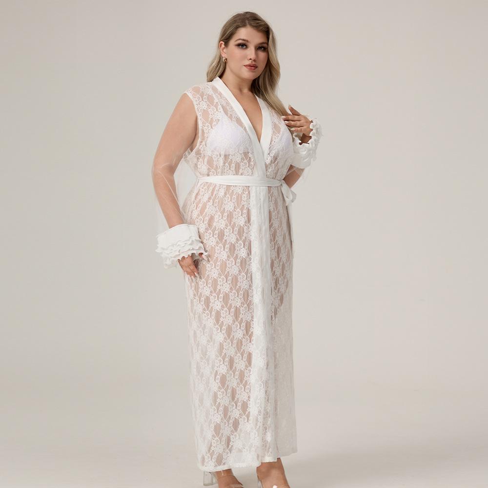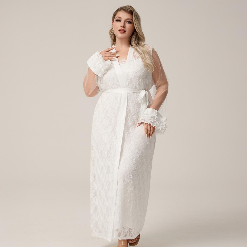 Yaoting Talla Grande Seda de Hielo Bata Larga para Mujer Suelta Encaje Bata Sencilla Camisón Largo Ropa de Casa WP5014