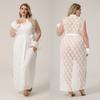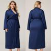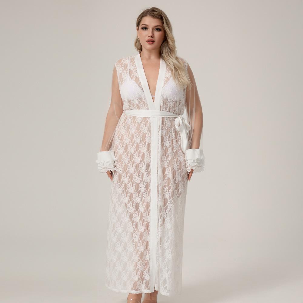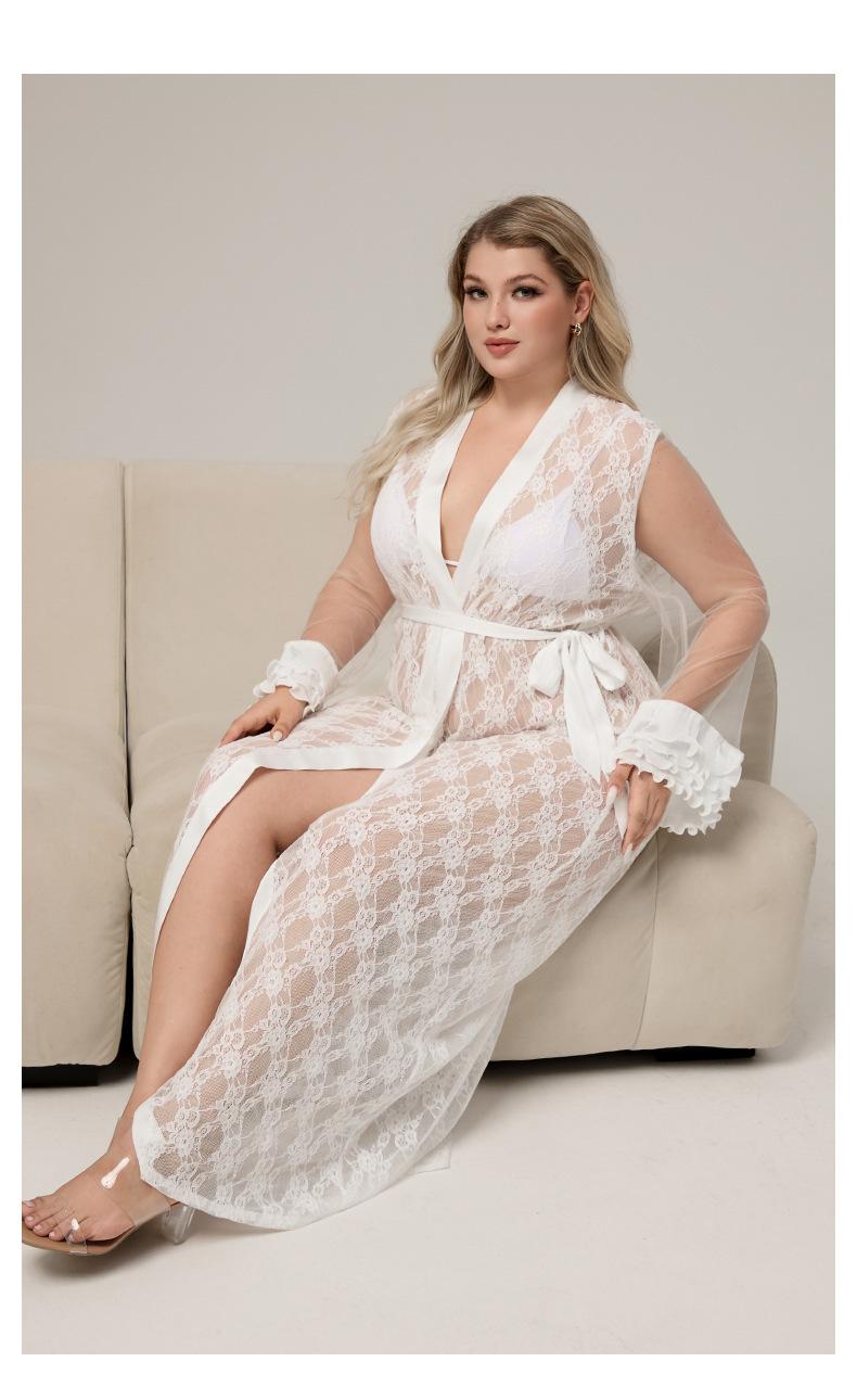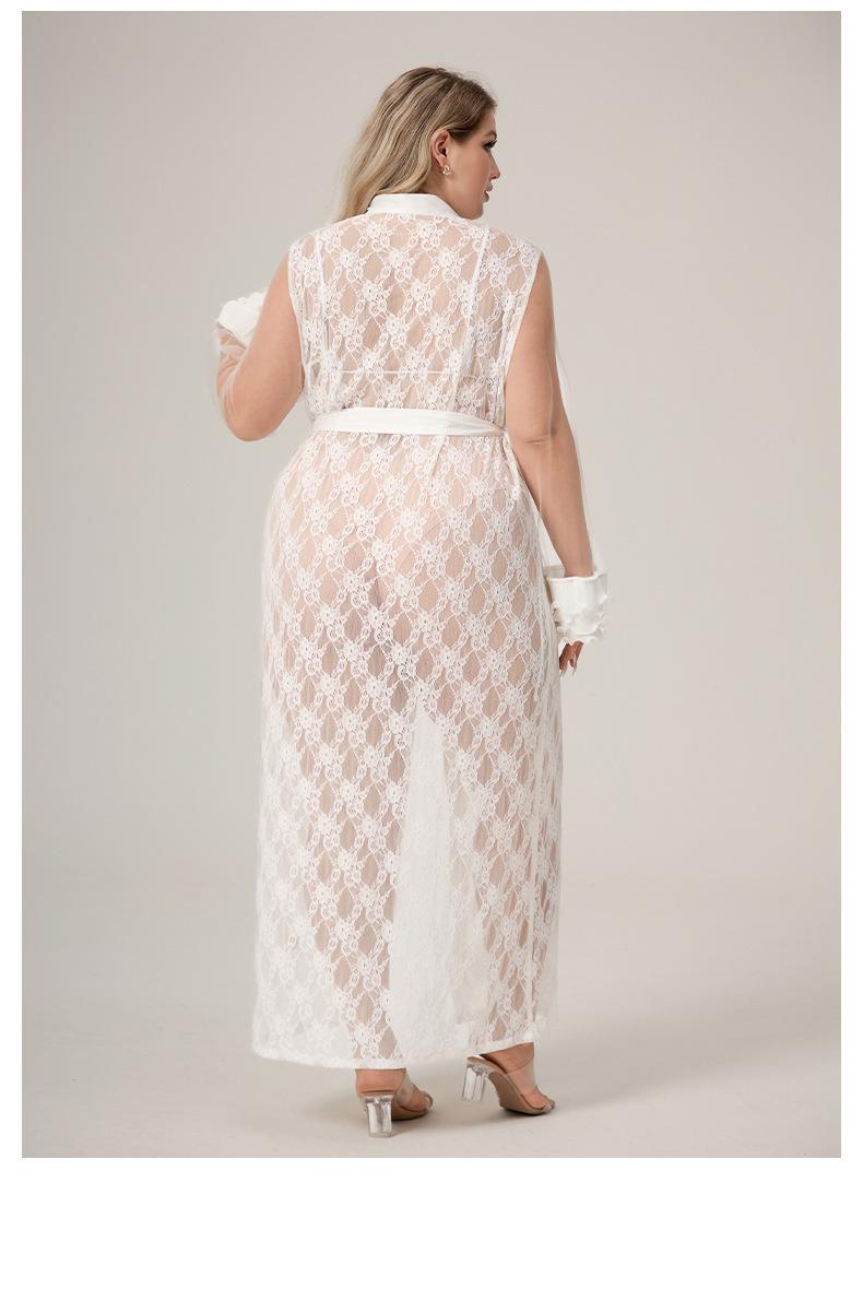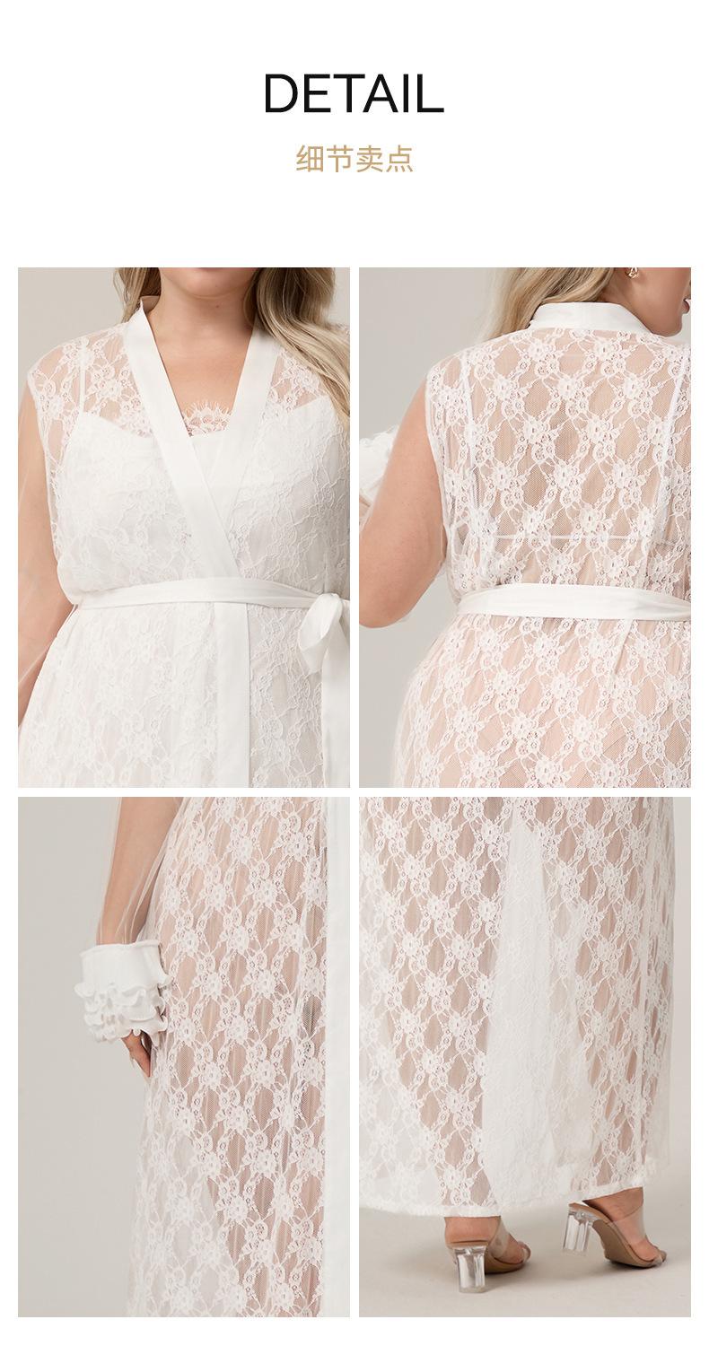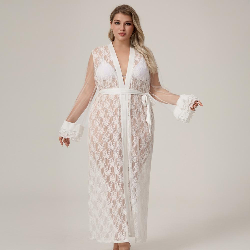 Yaoting Talla Grande Seda de Hielo Bata Larga para Mujer Suelta Encaje Bata Sencilla Camisón Largo Ropa de Casa WP5014