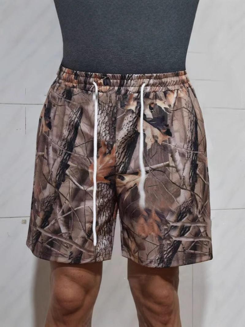 Primavera y Verano 2025 Amazon Transfronterizo Europeo y Americano para Mujer Holgados Casuales con Cordón Shorts Estampado de Ramas Camuflaje