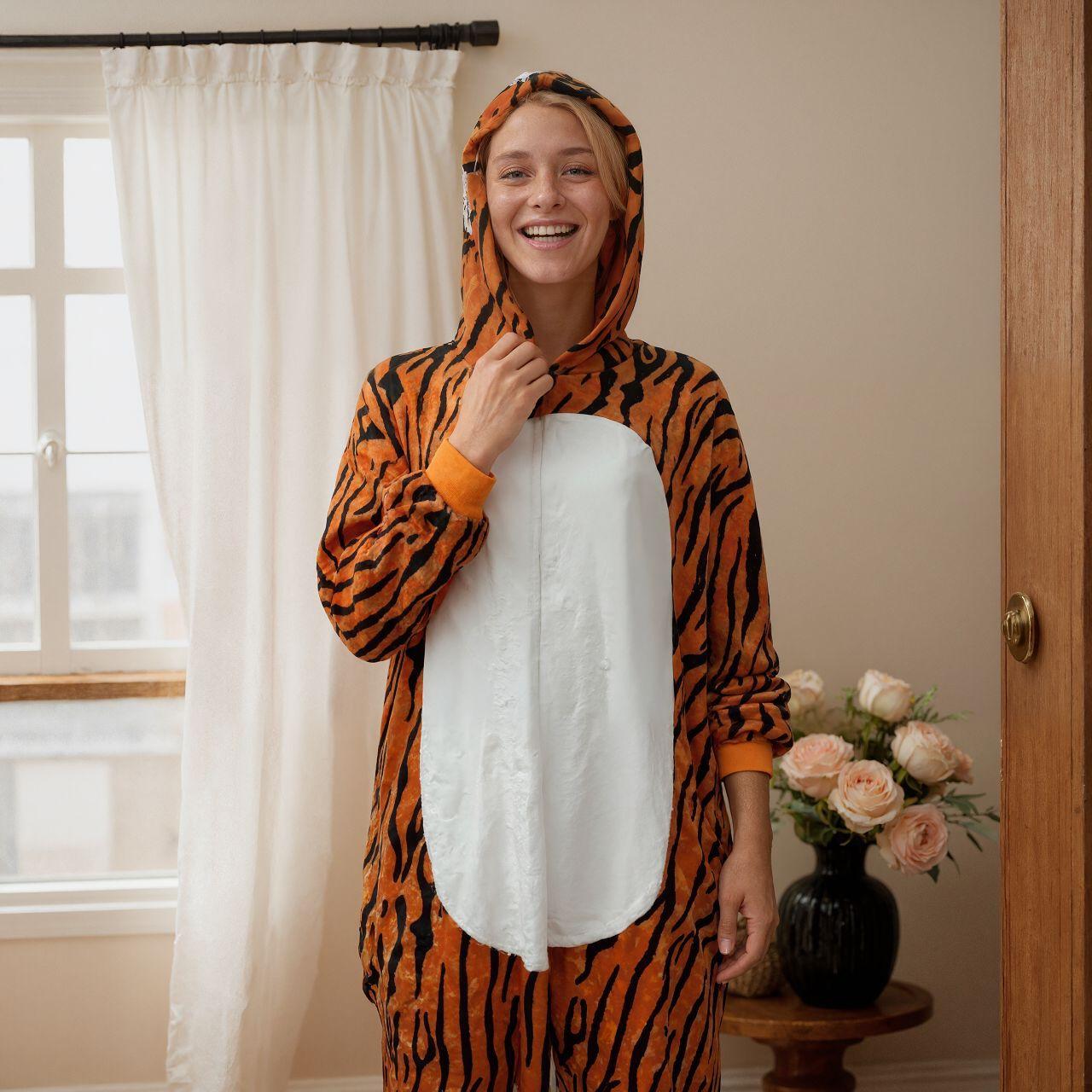 Pijama onesie de franela de dibujos animados de animales transfronterizo invierno hogar cálido con cola disfraz tema fiesta pijama