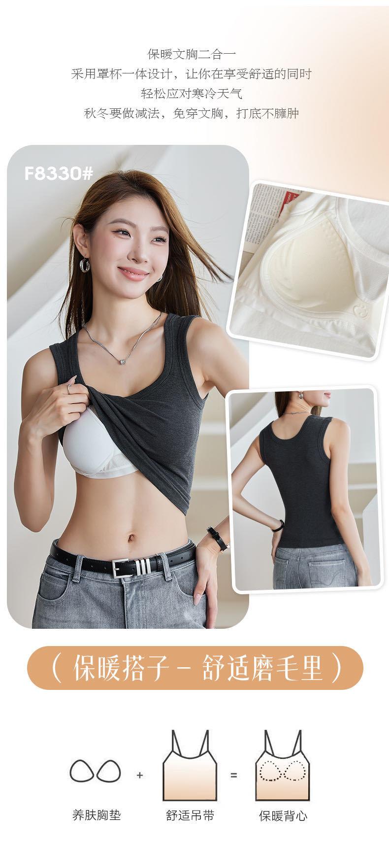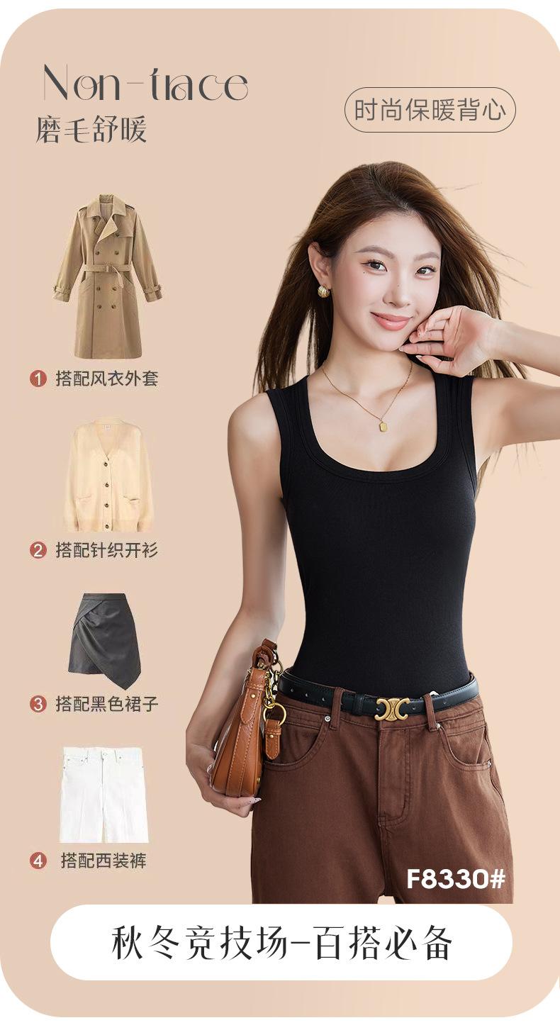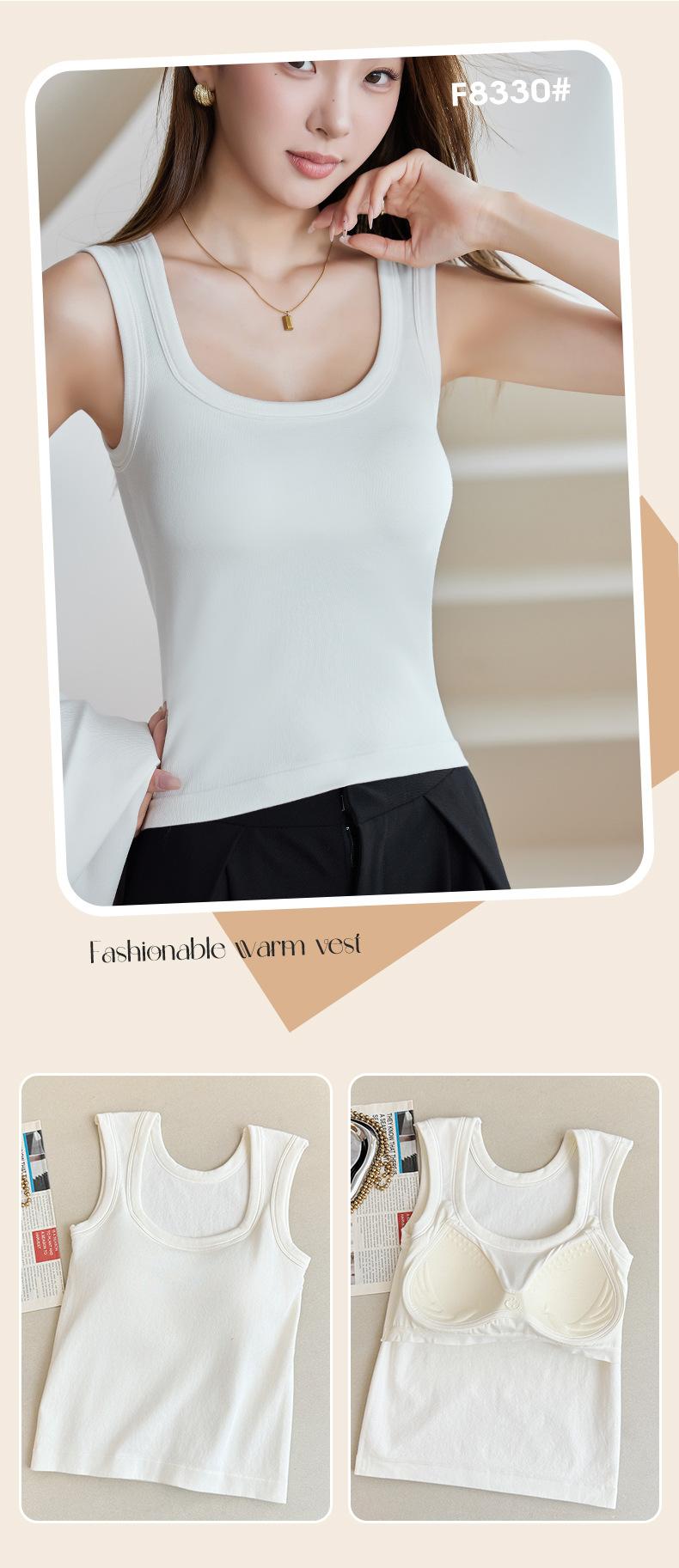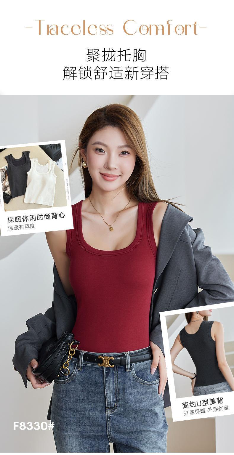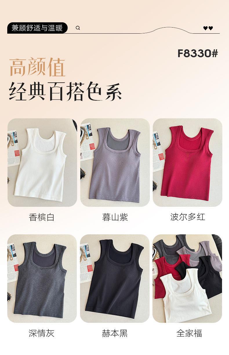 Chaleco cálido cepillado de otoño e invierno con almohadillas en el pecho, ropa interior de realce sin costuras, capa base versátil para exterior, top de color sólido de corte ajustado para mujer