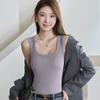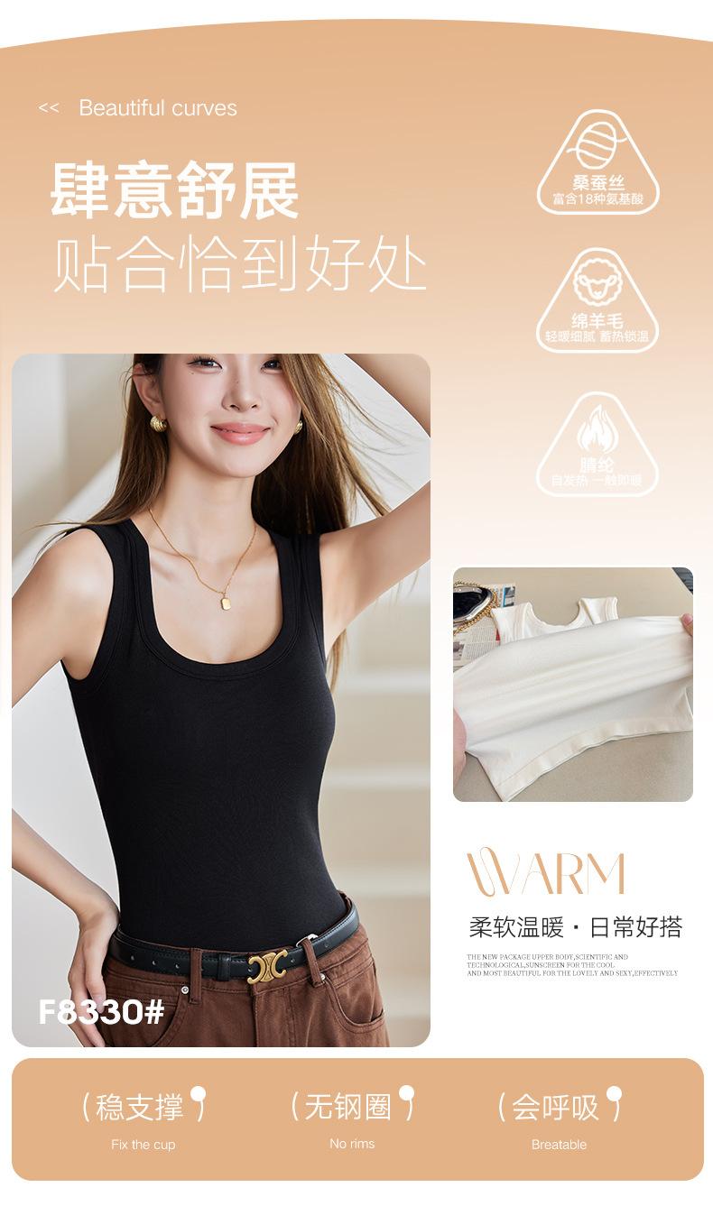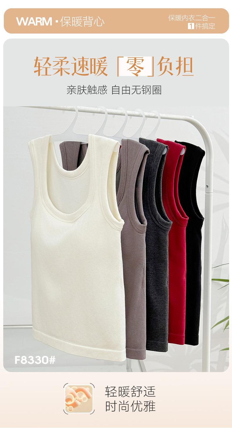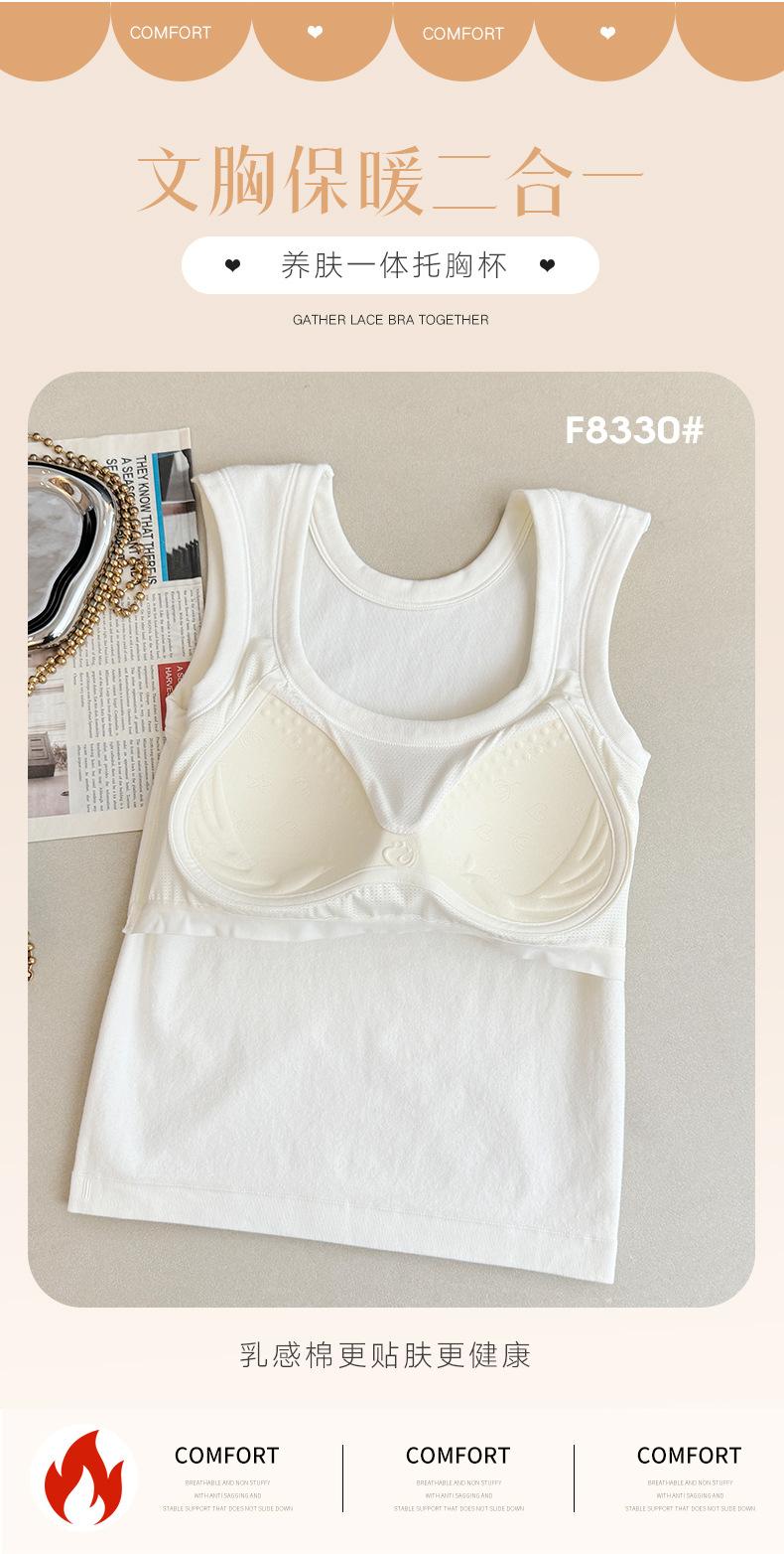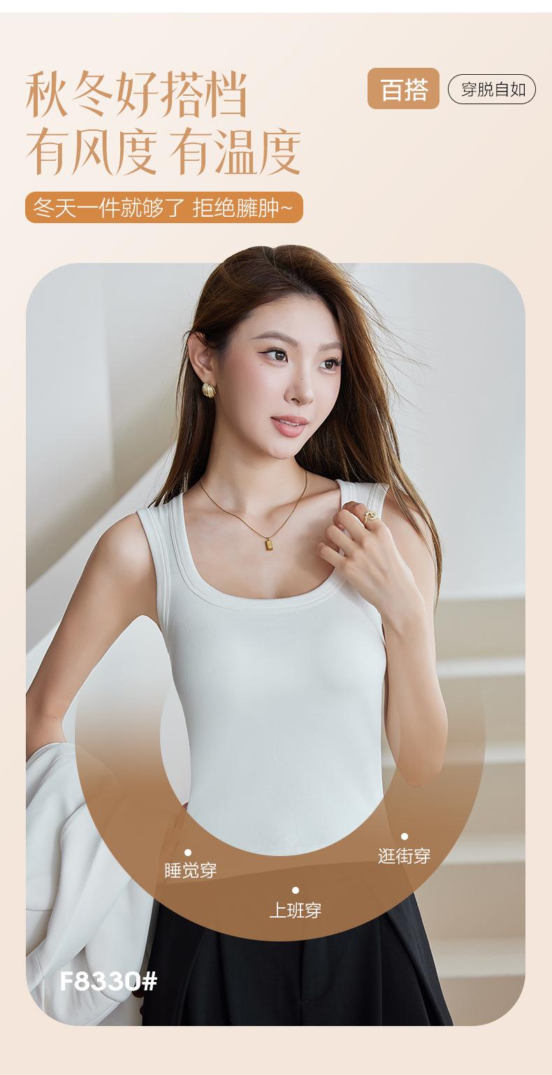 Chaleco cálido cepillado de otoño e invierno con almohadillas en el pecho, ropa interior de realce sin costuras, capa base versátil para exterior, top de color sólido de corte ajustado para mujer