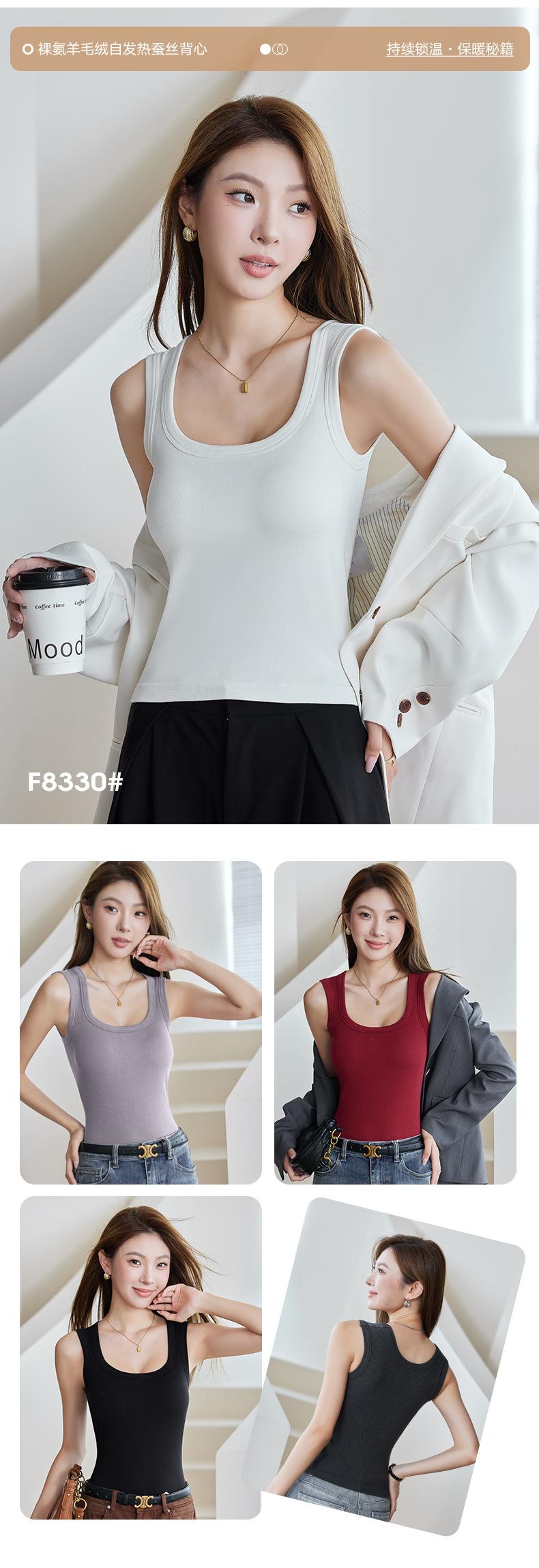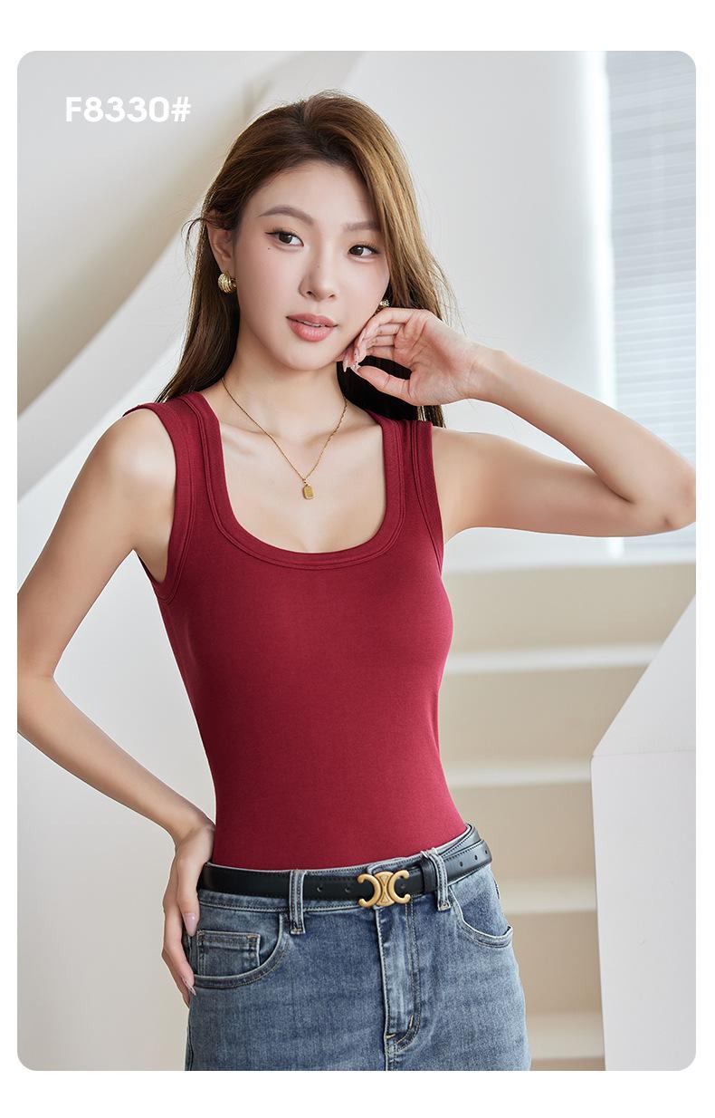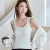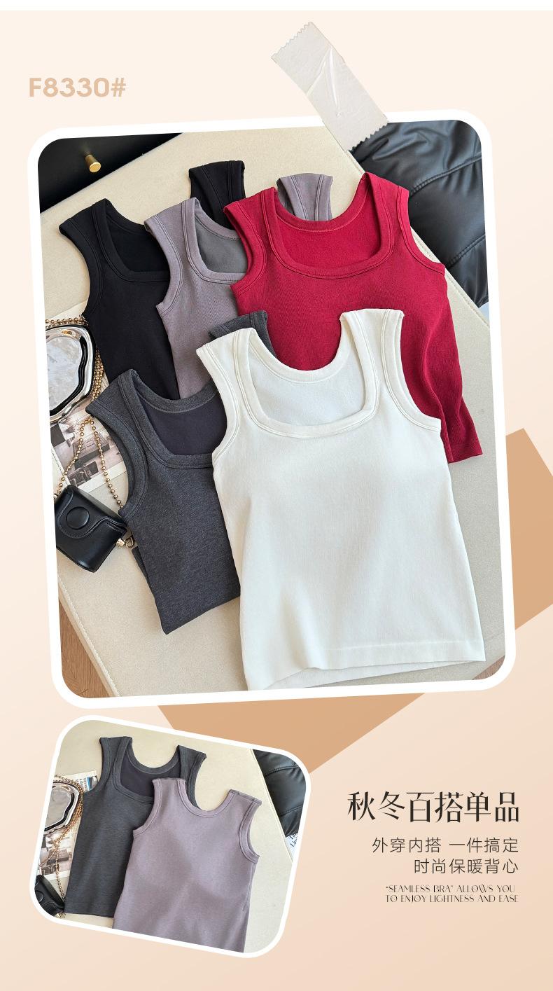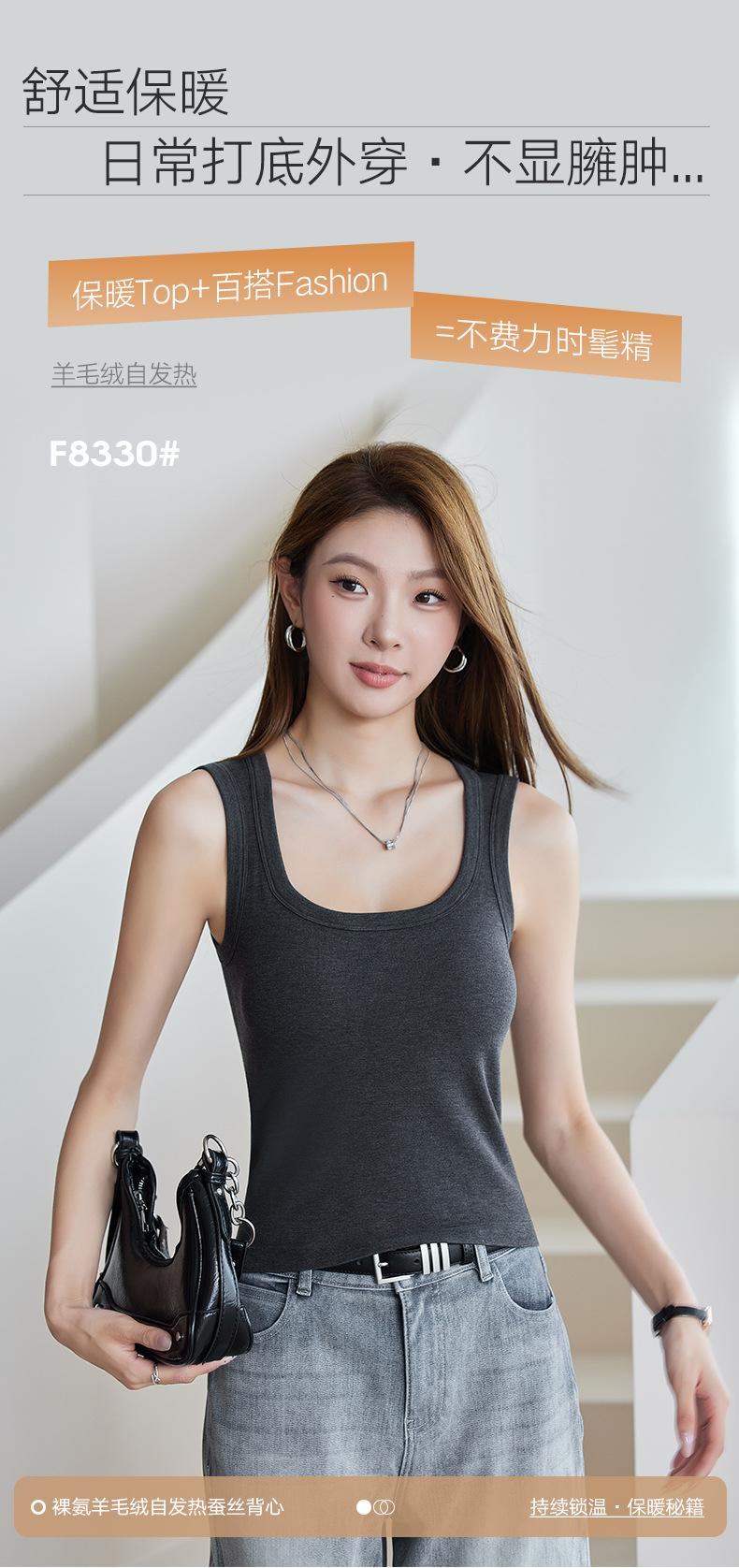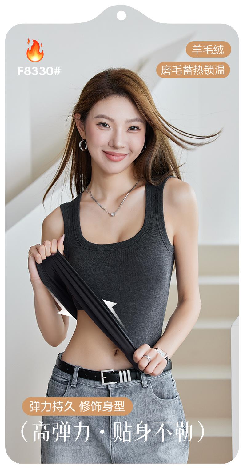 Chaleco cálido cepillado de otoño e invierno con almohadillas en el pecho, ropa interior de realce sin costuras, capa base versátil para exterior, top de color sólido de corte ajustado para mujer