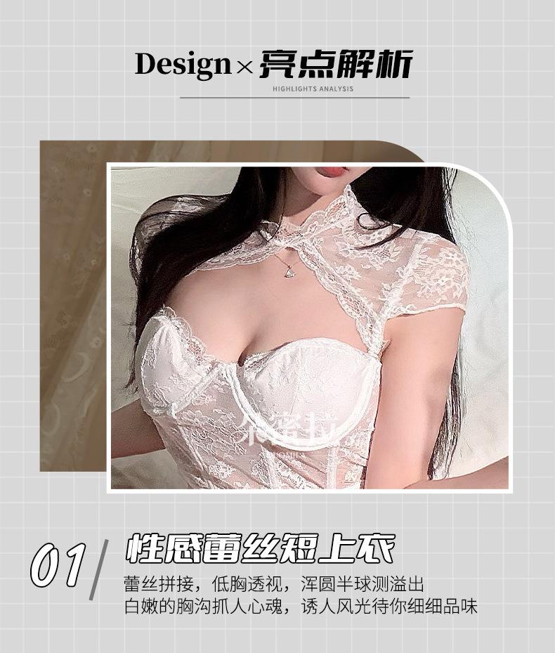 Lencería Sexy Cuello Redondo Encaje Diamante Sexy Calado con Varillas Ballena Adelgazante Crop Top Secretaria de Corte
