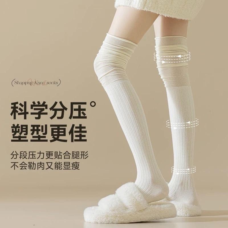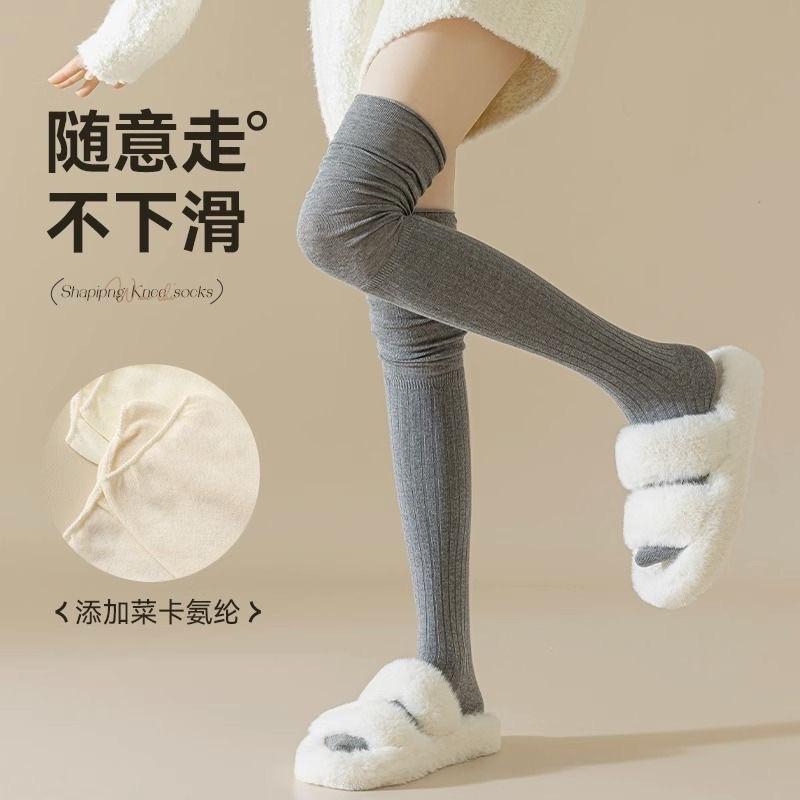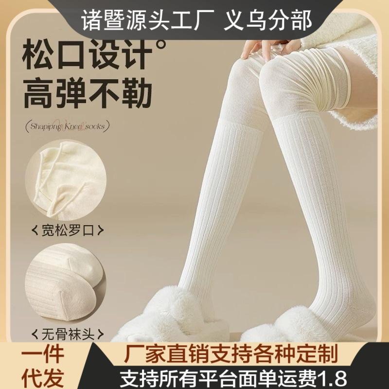 Calcetines largos hasta la rodilla para mujer otoño invierno blancos calcetines altos hasta el muslo calcetines holgados de montón calcetines largos de algodón de tubo alto calcetines largos hasta el muslo