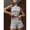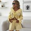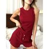 Conjunto de pijama europeo y americano transfronterizo 2025 de primavera y verano, color sólido, cómodo, chaleco, shorts, ropa casual para el hogar, conjunto de dos piezas