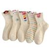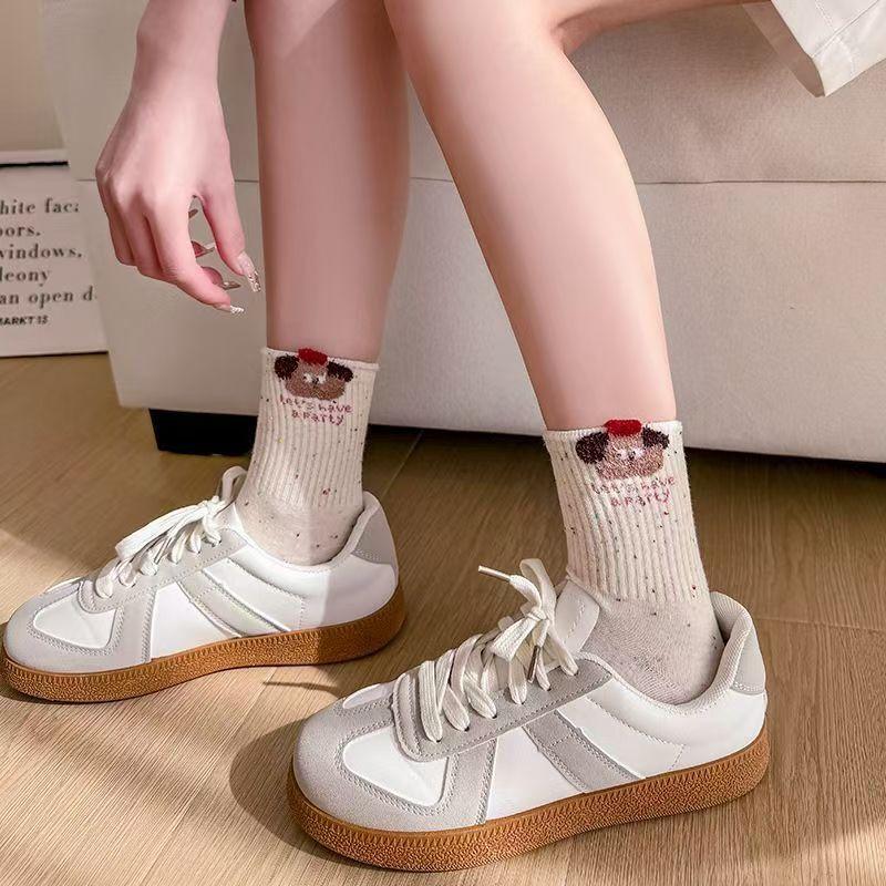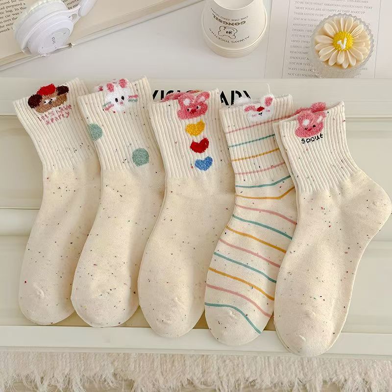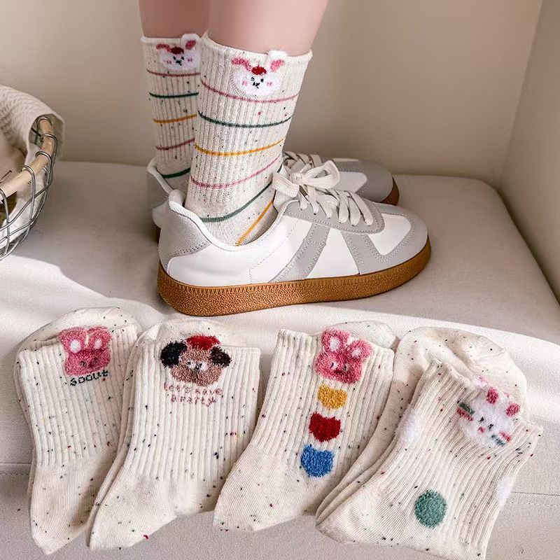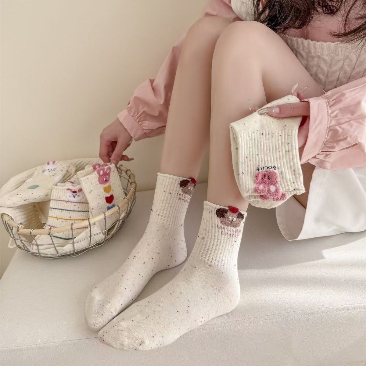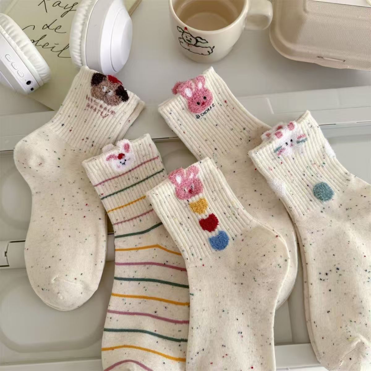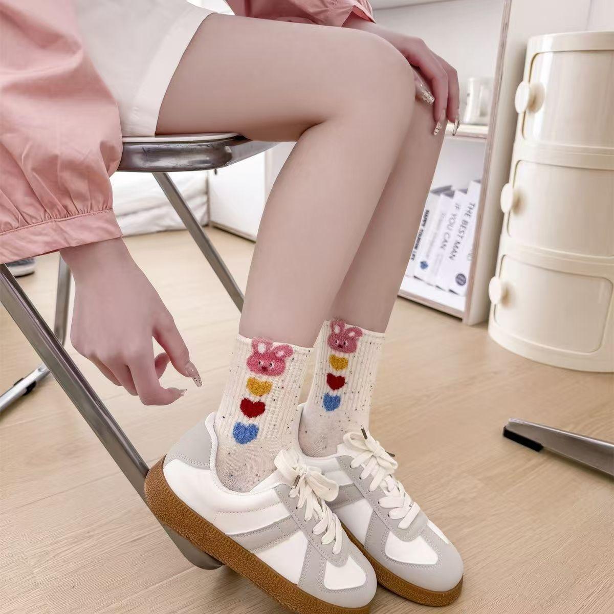 Calcetines de media caña para mujer otoño e invierno estilo coreano hilo de lunares dibujos animados ins calcetines largos versátiles modernos lindos conejitos estilo preppy calcetines de mujer