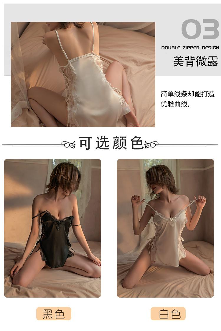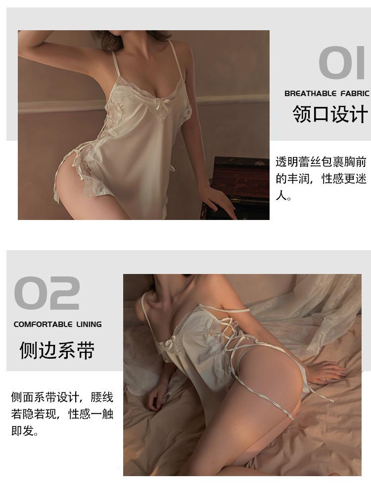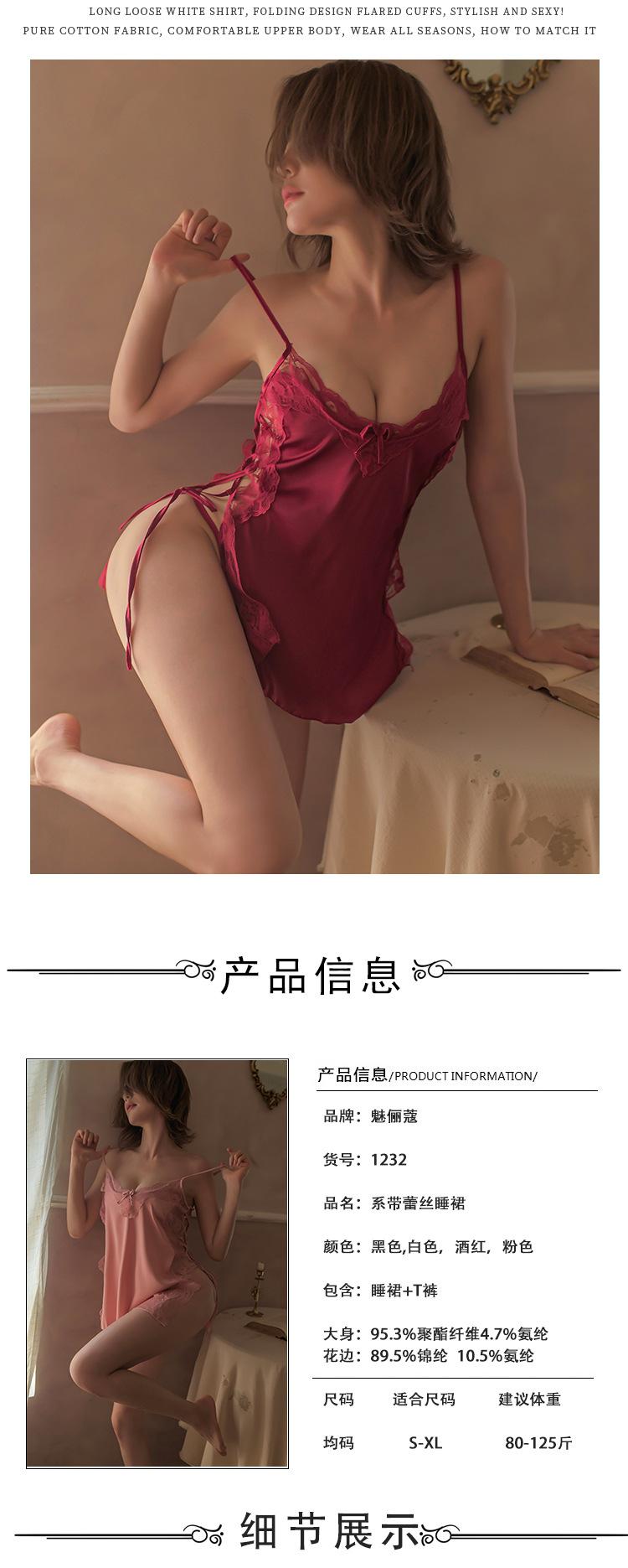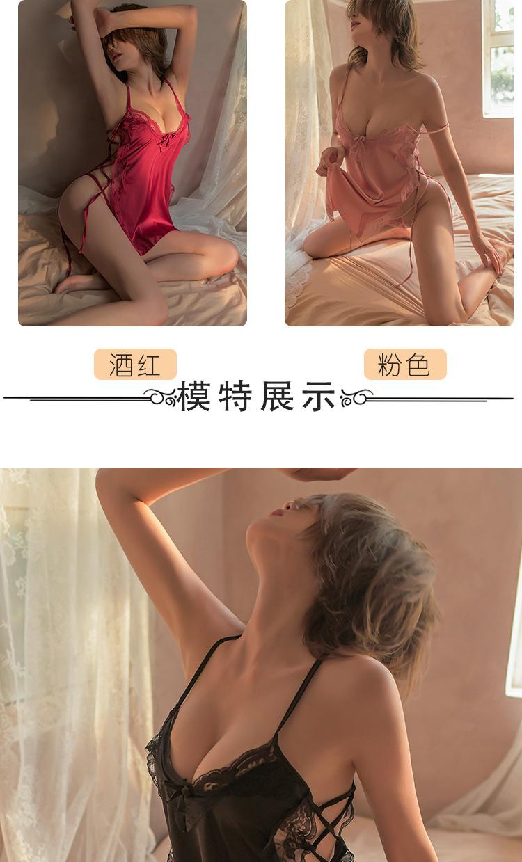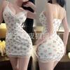 Lencería Sexy Encaje Seductor Camisón de Tirantes Espagueti Mujeres Caliente Cómodo Ropa de Dormir para Casa Conjunto Falda Corta 1232