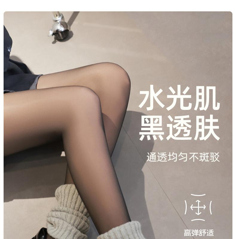 Negro Transparente Una Pieza Artefacto Pierna Descubierta para Mujer Otoño/Invierno Forrado de Lana Engrosado Cintura Alta Control de Abdomen Negro Seda Falso Transparente Capa Base Pantimedias