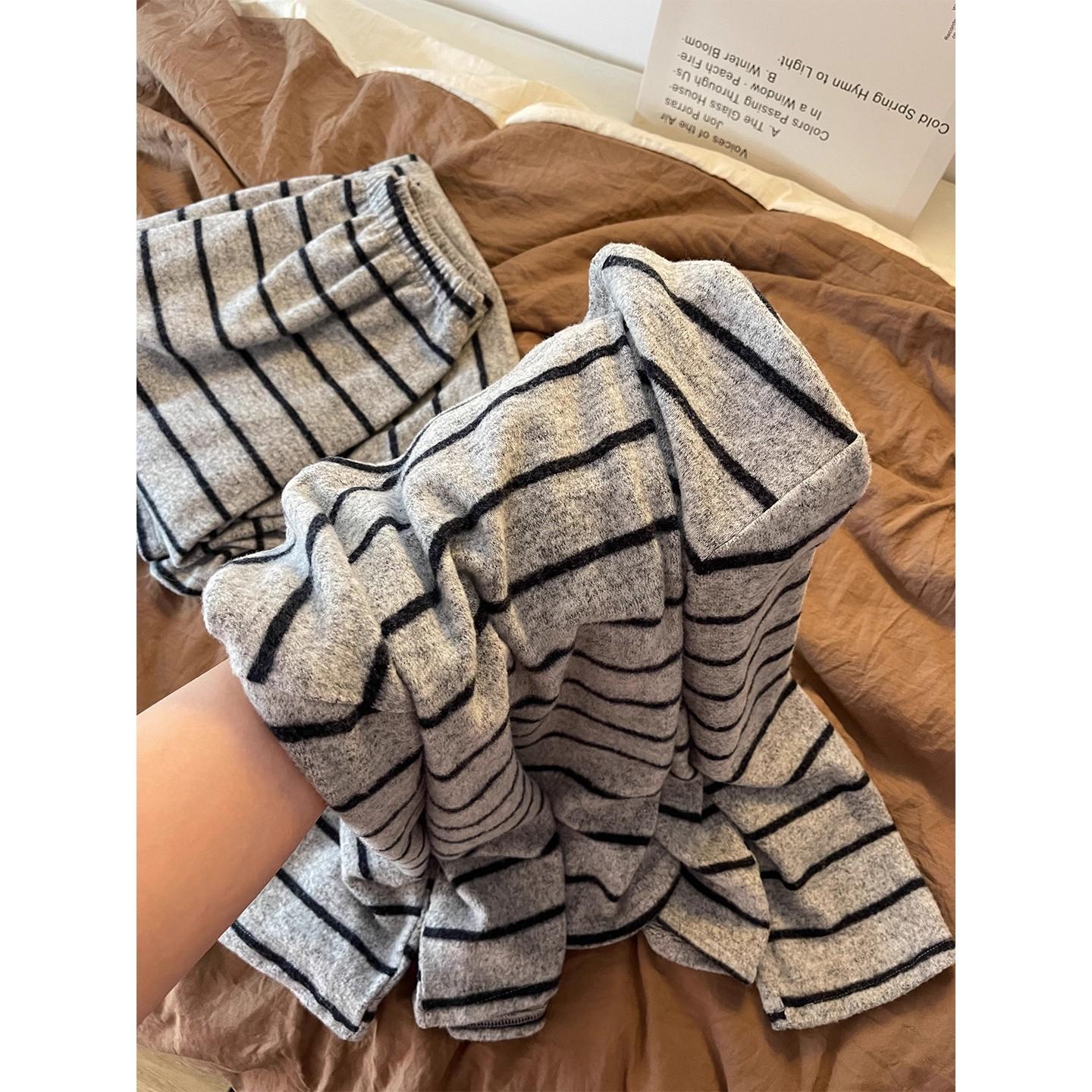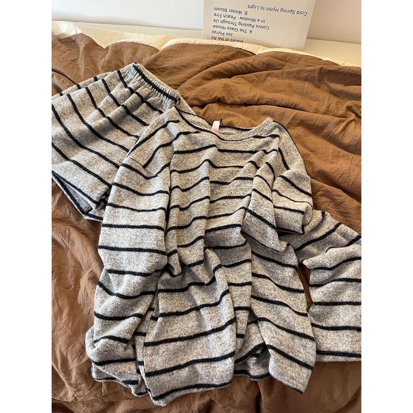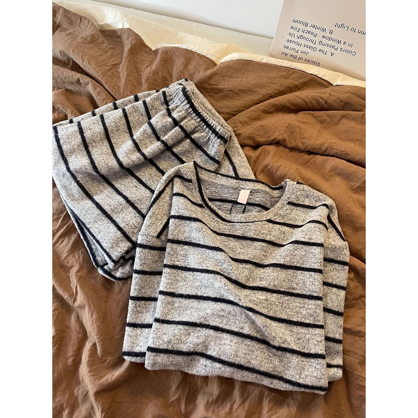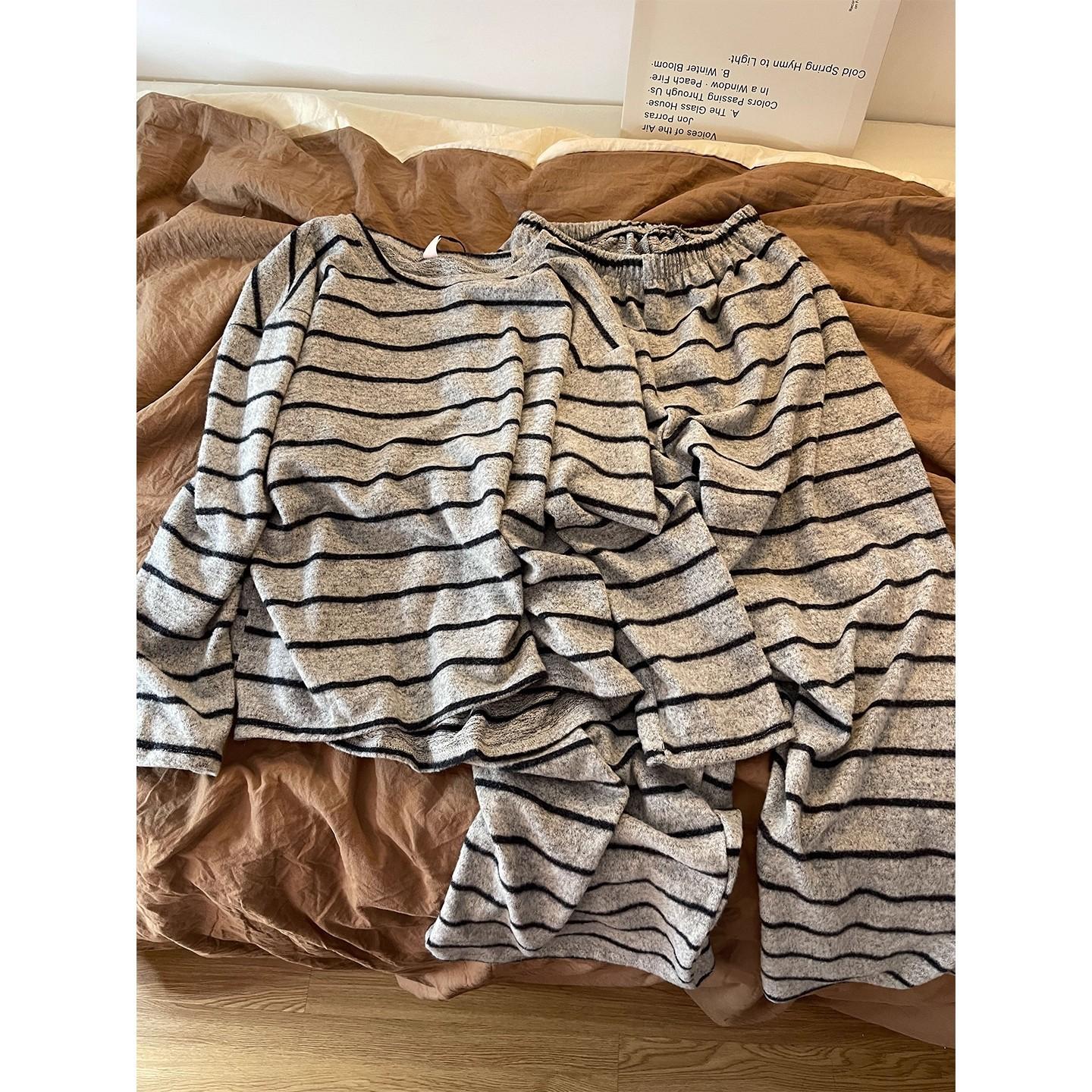 Pijama de Manga Larga con Estampado de Rayas Elegante de Otoño e Invierno para Mujer 2025 Nuevo Conjunto Suelto de Pantalón Largo Conjunto para Estar en Casa