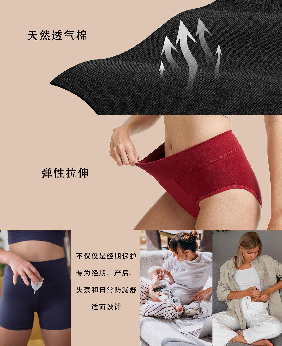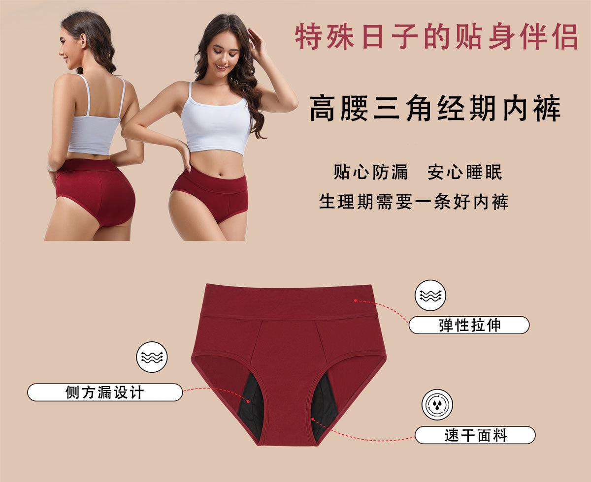 Braguitas menstruales de algodón puro de cintura alta transfronterizas de cuatro capas a prueba de fugas laterales, pantalones para el período, entrepierna interior antibacteriana, calzoncillos de talla grande personalizados