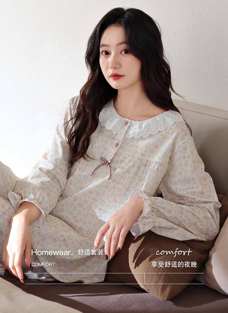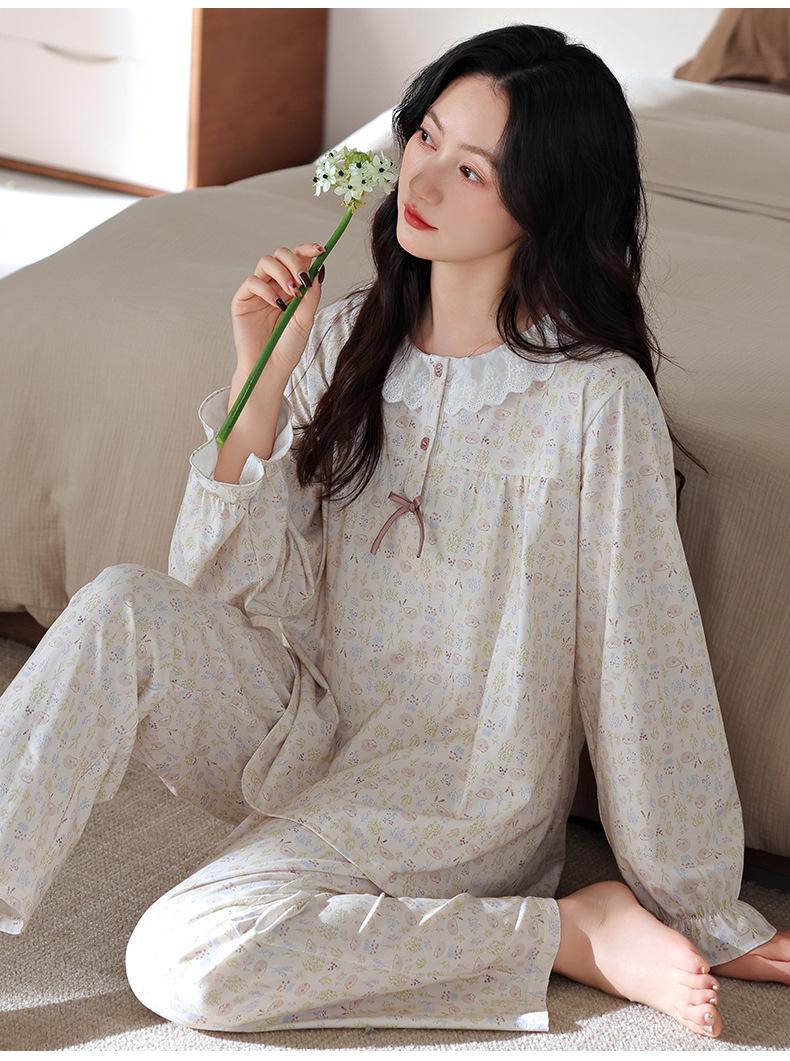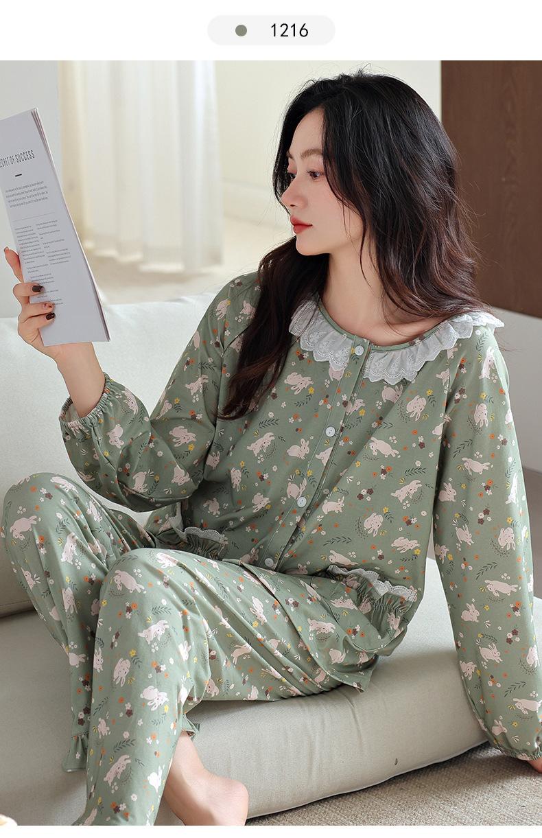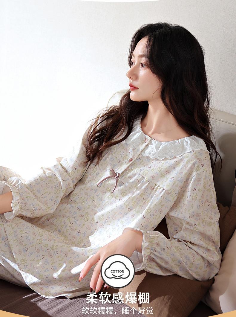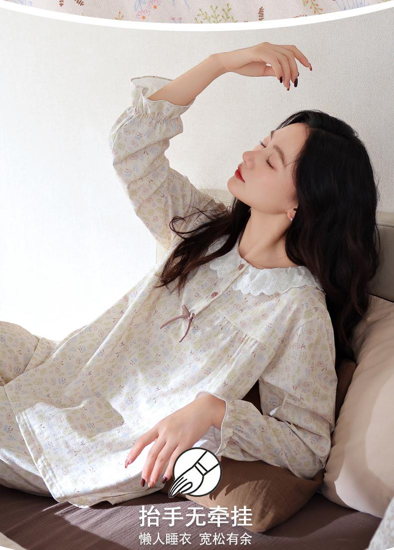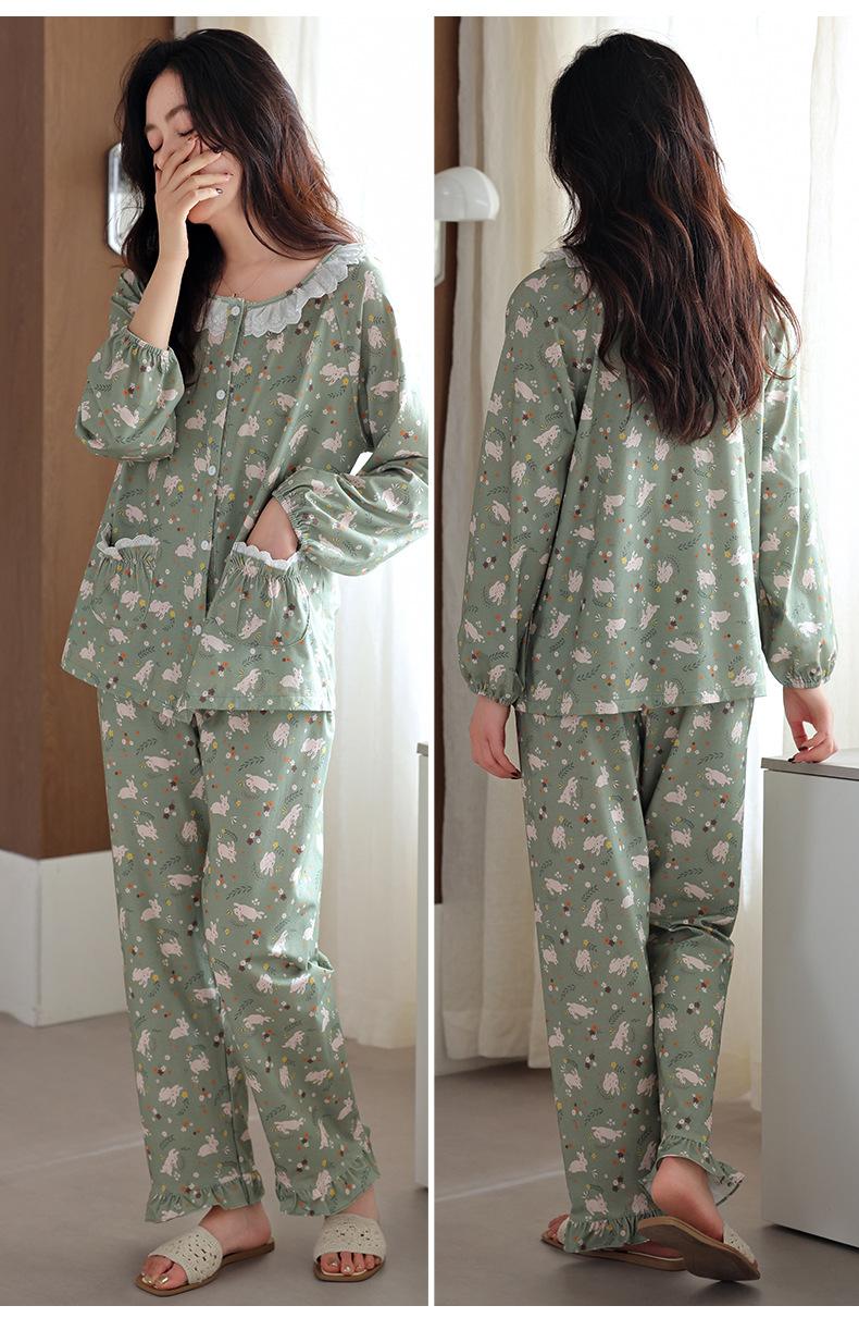 Pijama de Mujer Primavera y Otoño Algodón Puro Manga Larga para Mujer Otoño Algodón Puro Delgado Talla Grande Casual para Usar Afuera Traje de Ropa para el Hogar