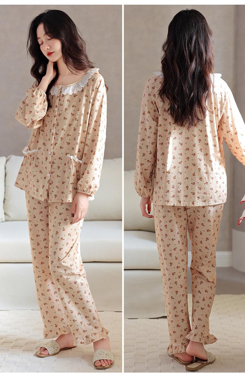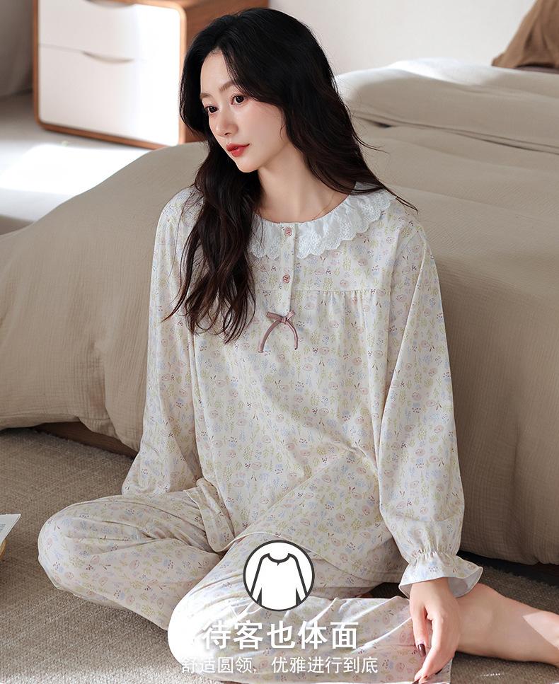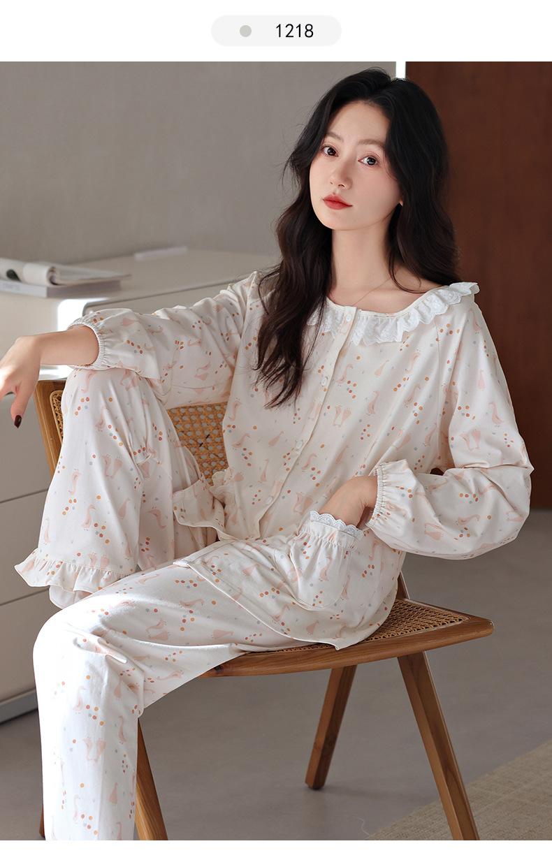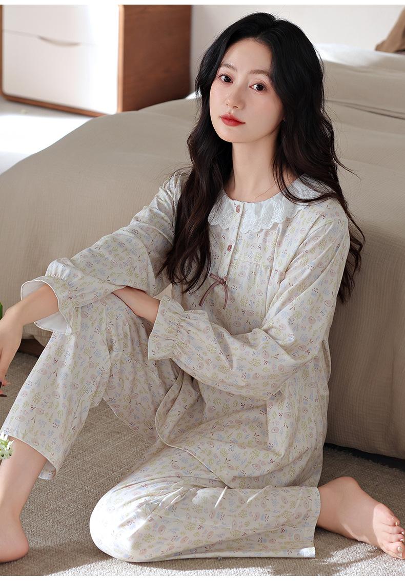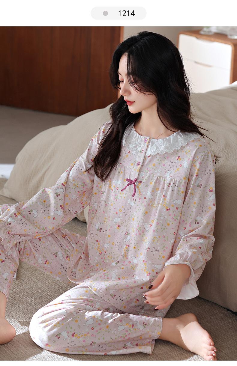 Pijama de Mujer Primavera y Otoño Algodón Puro Manga Larga para Mujer Otoño Algodón Puro Delgado Talla Grande Casual para Usar Afuera Traje de Ropa para el Hogar
