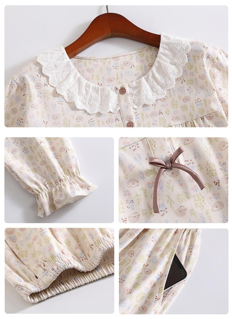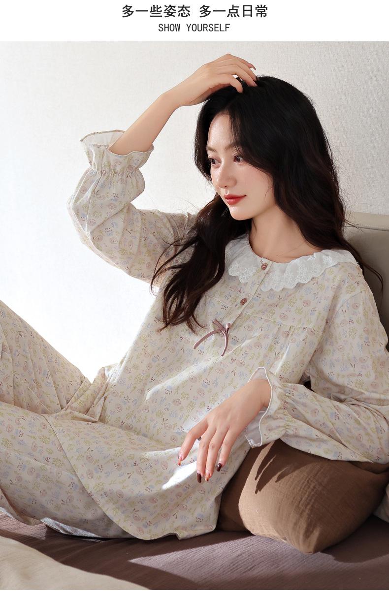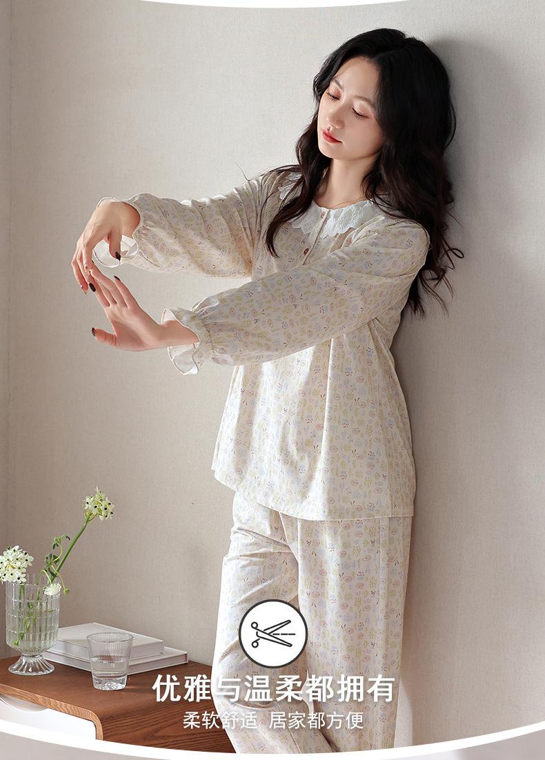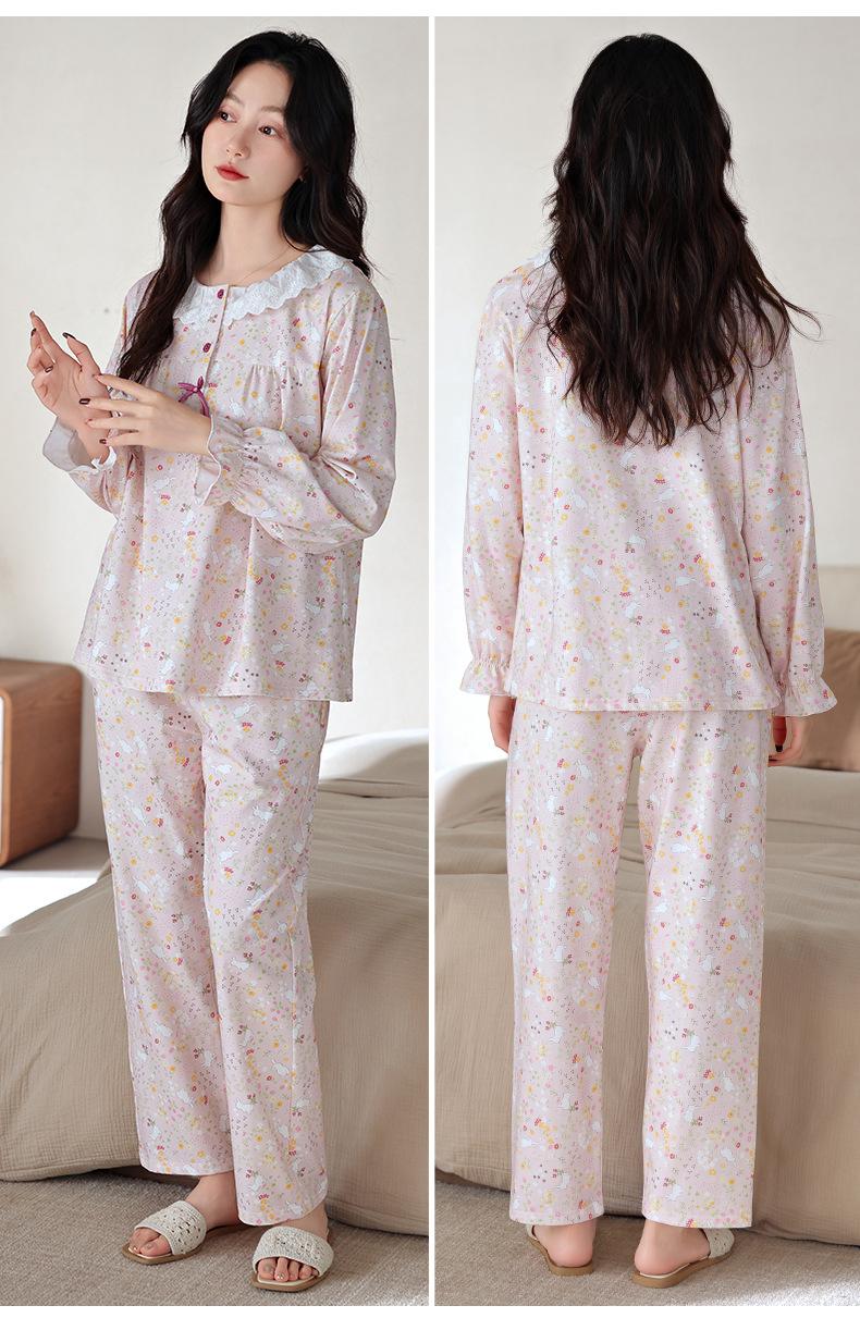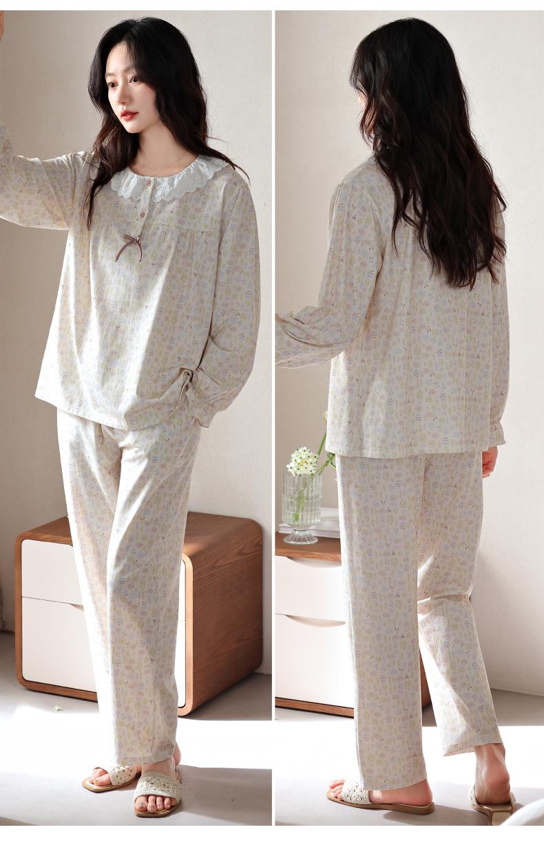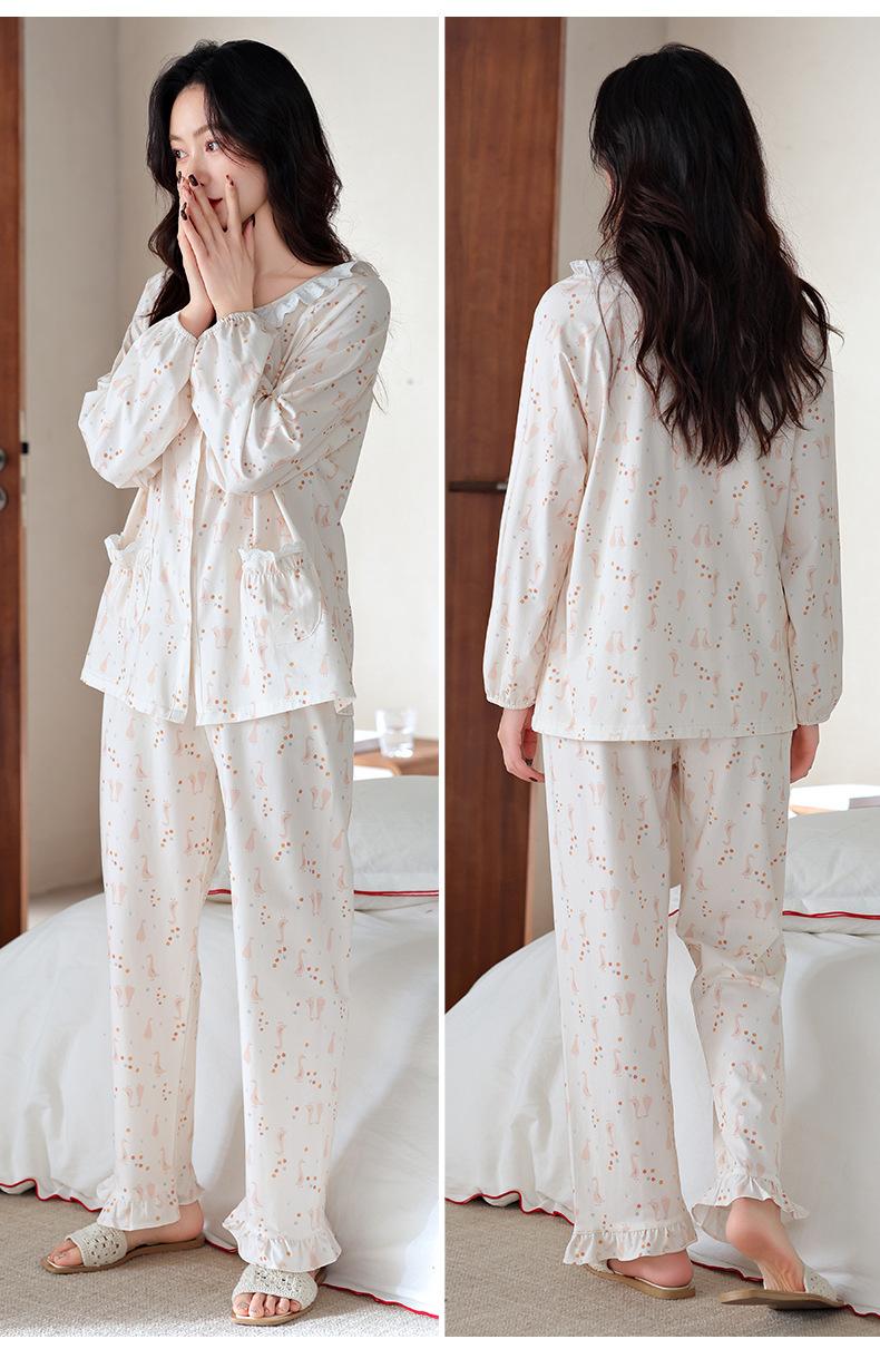 Pijama de Mujer Primavera y Otoño Algodón Puro Manga Larga para Mujer Otoño Algodón Puro Delgado Talla Grande Casual para Usar Afuera Traje de Ropa para el Hogar