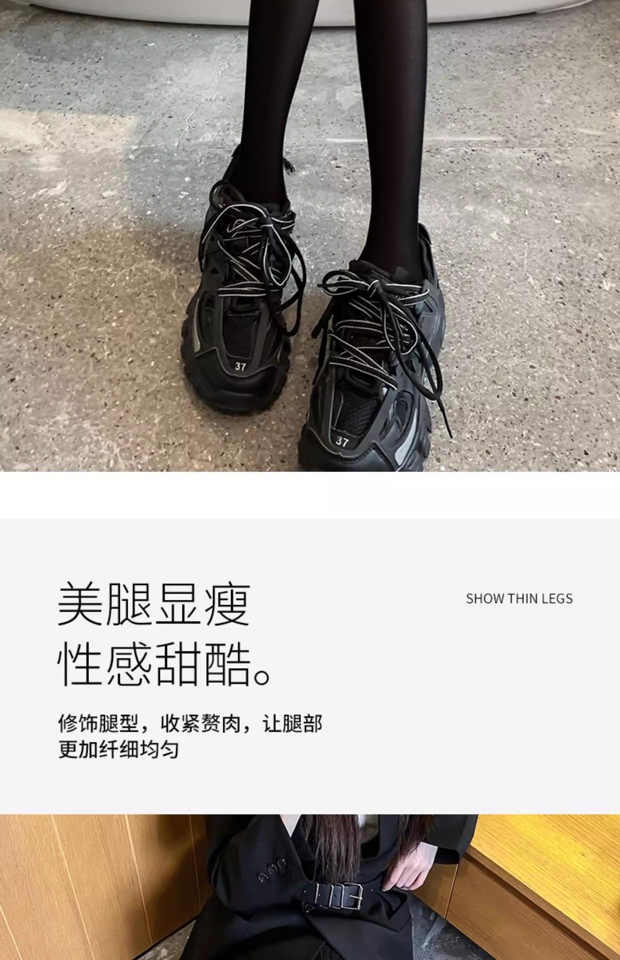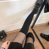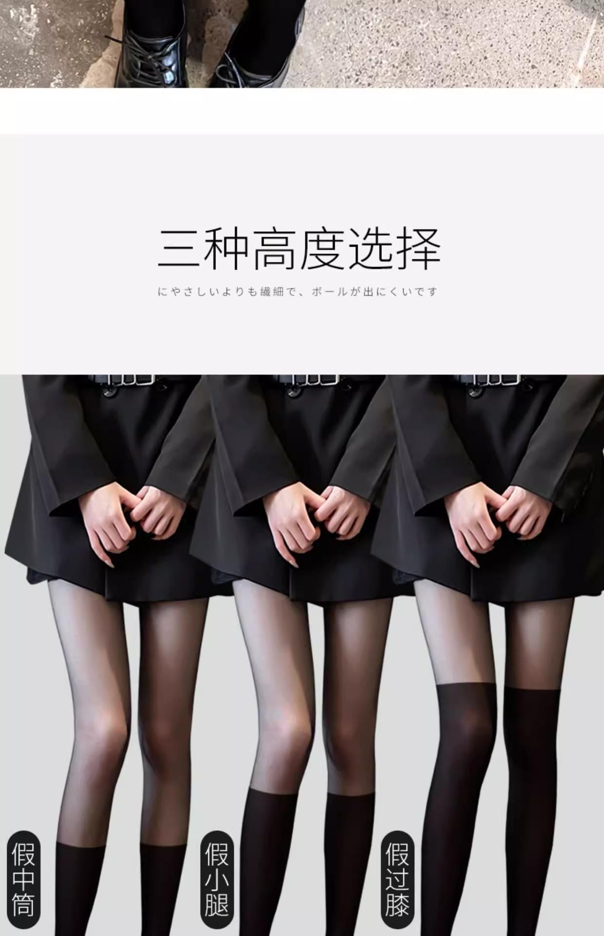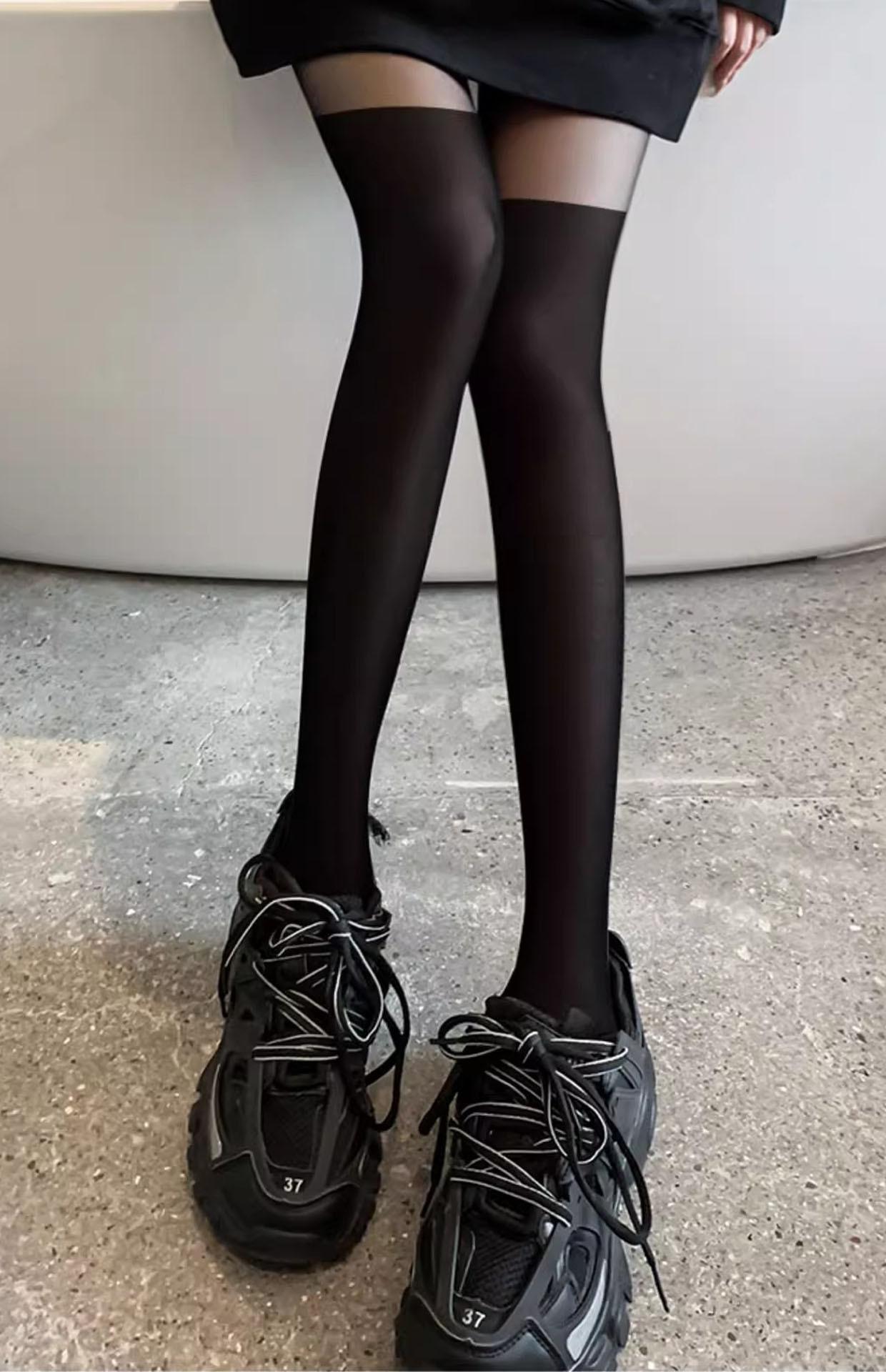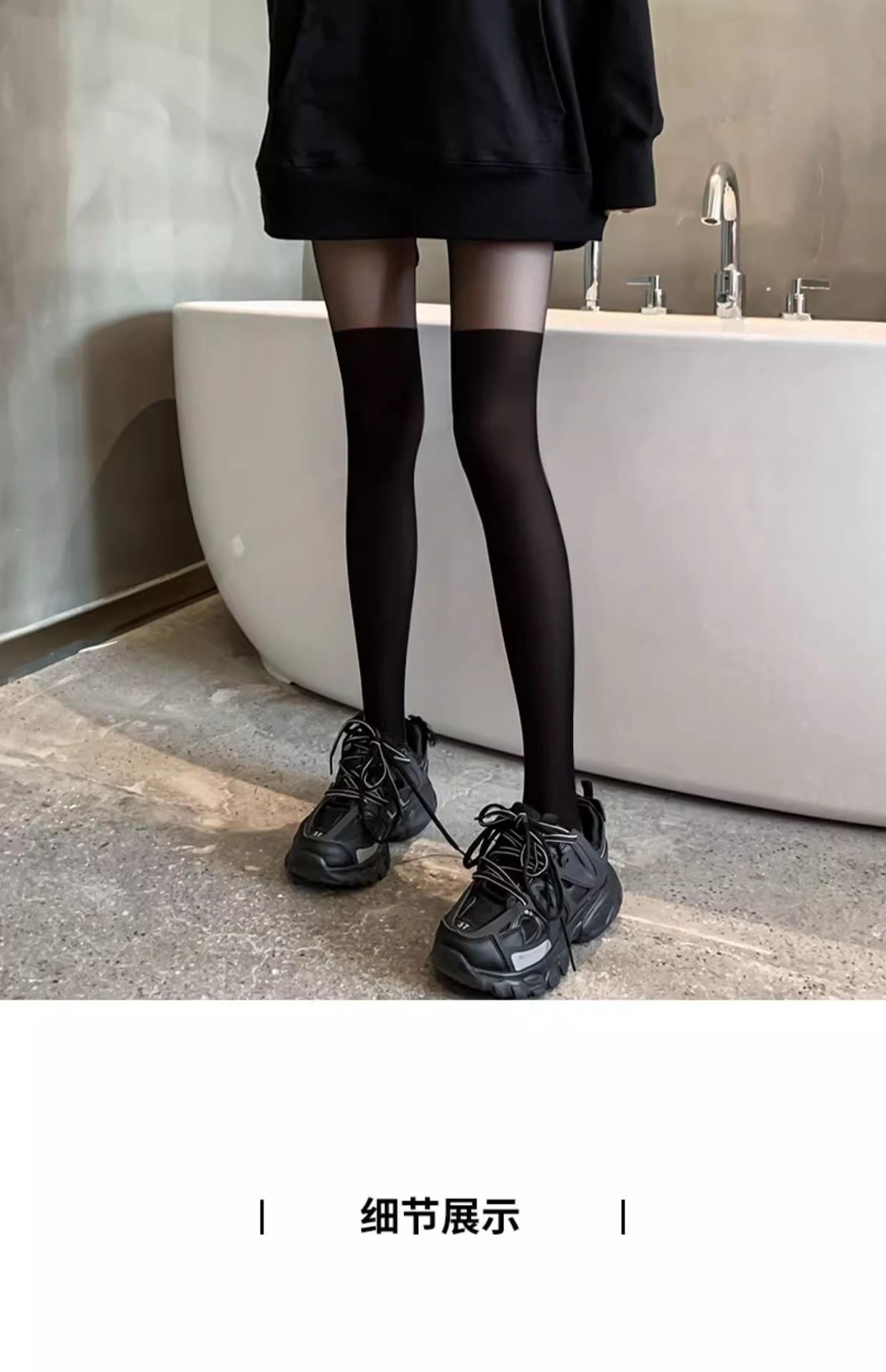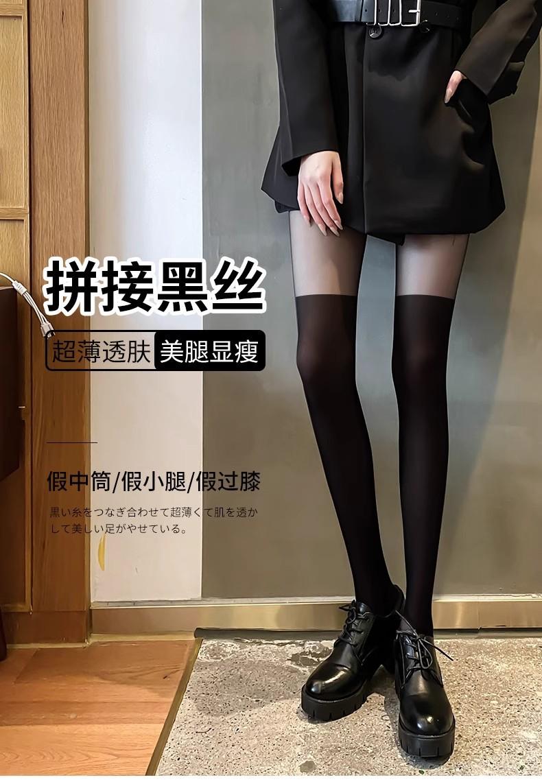 Mid-calf patchwork black stockings, Calf spliced black silk pantyhose, Over-the-knee spliced black stockings, ...